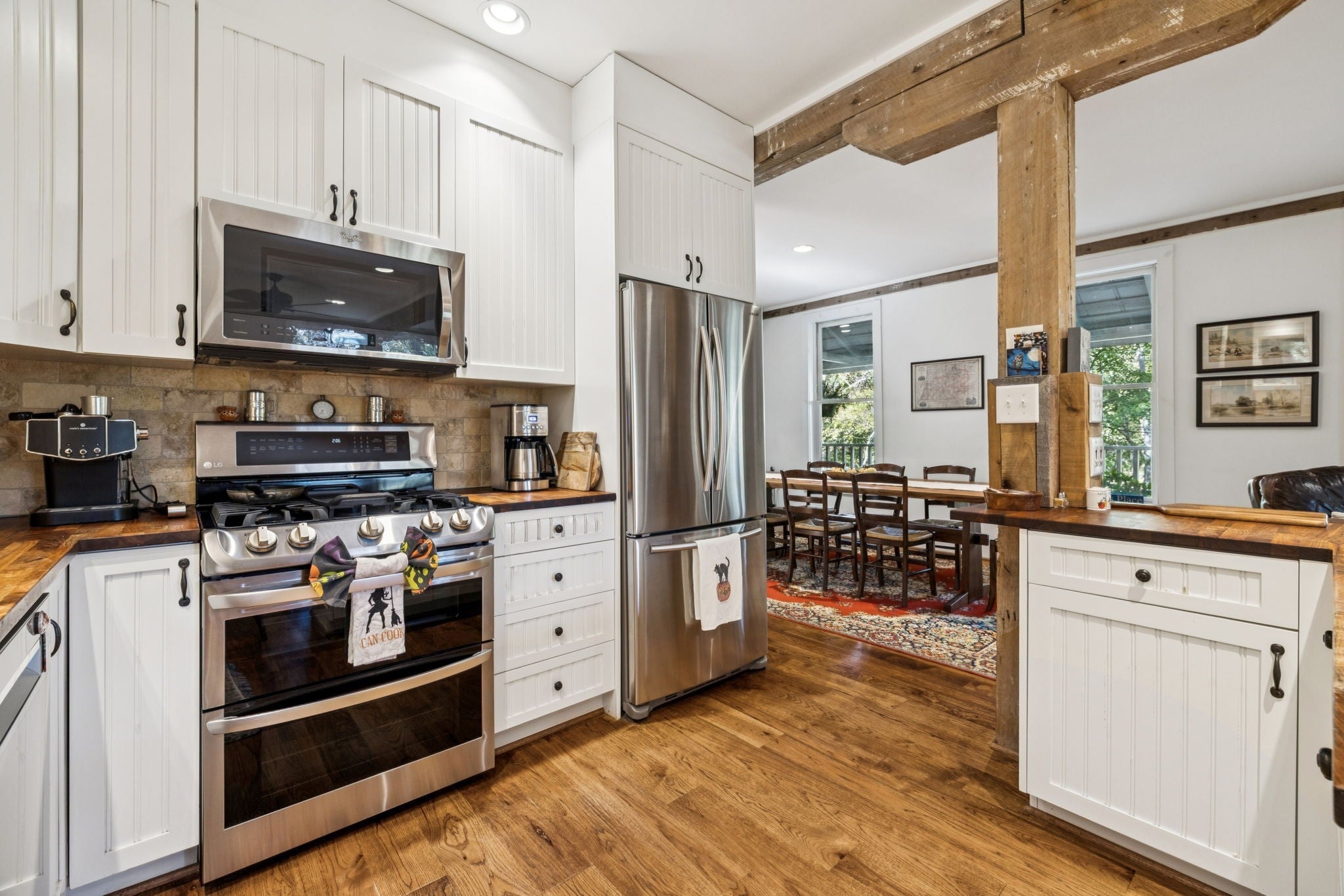 - Double Oven, Gas Range, Dishwasher, Microwave, Refrigerator, Stainless Steel Appliance(s)