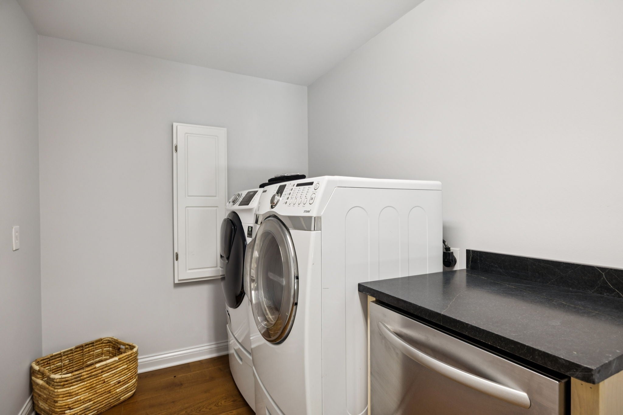 - Built-In Electric Oven, Electric Oven, Cooktop, Electric Range, Dishwasher, Disposal, Dryer, Ice Maker, Microwave, Refrigerator, Stainless Steel Appliance(s), Washer