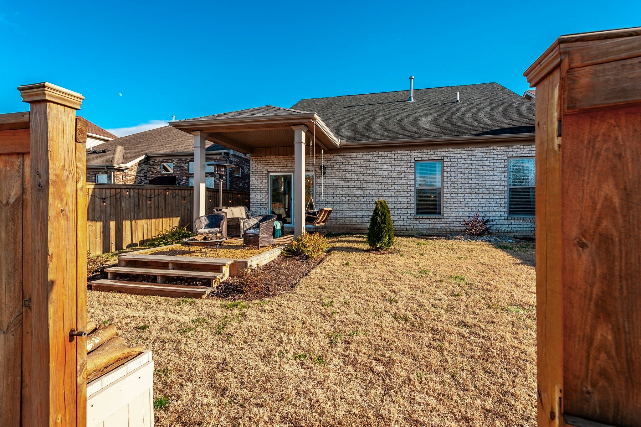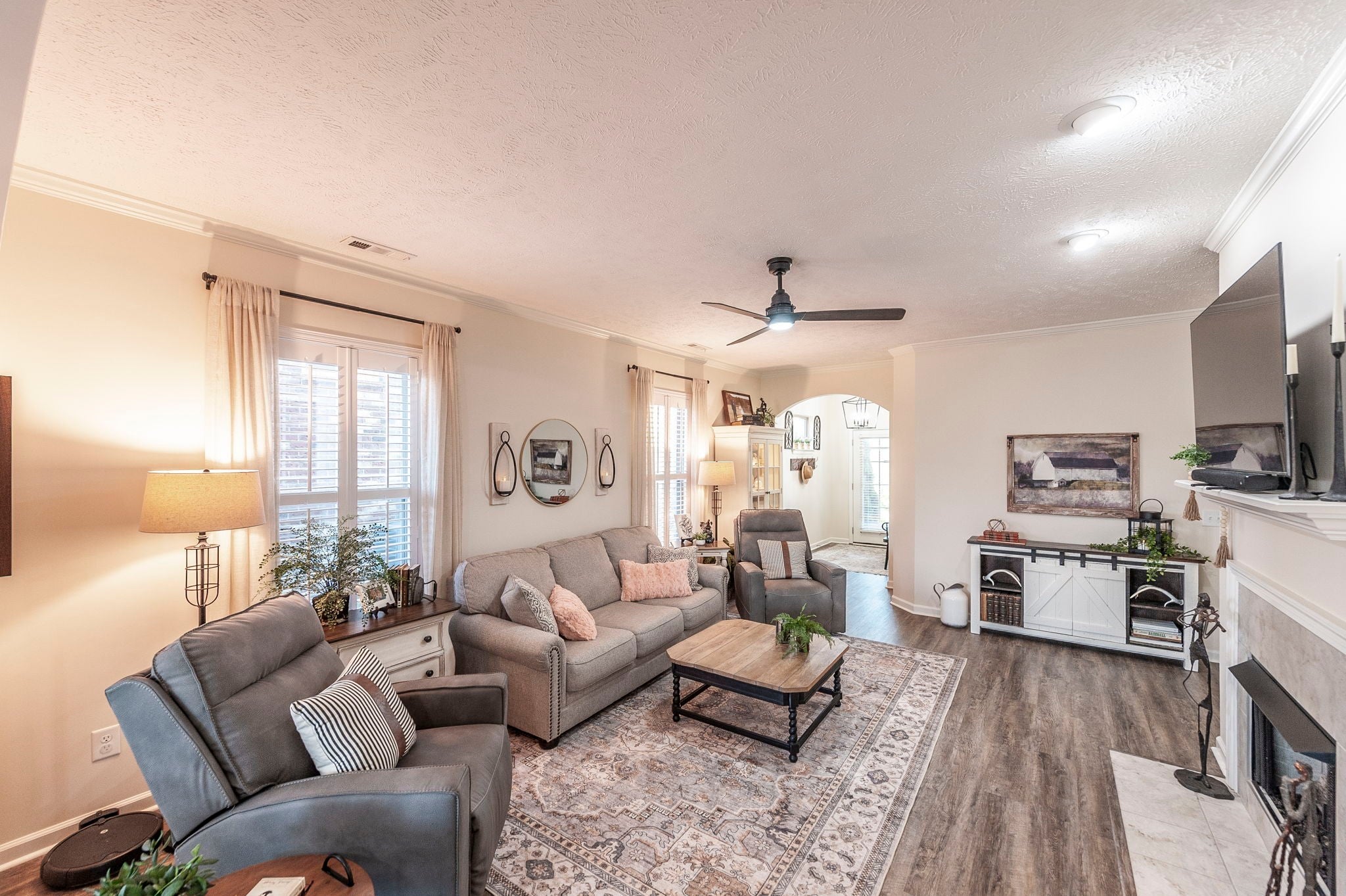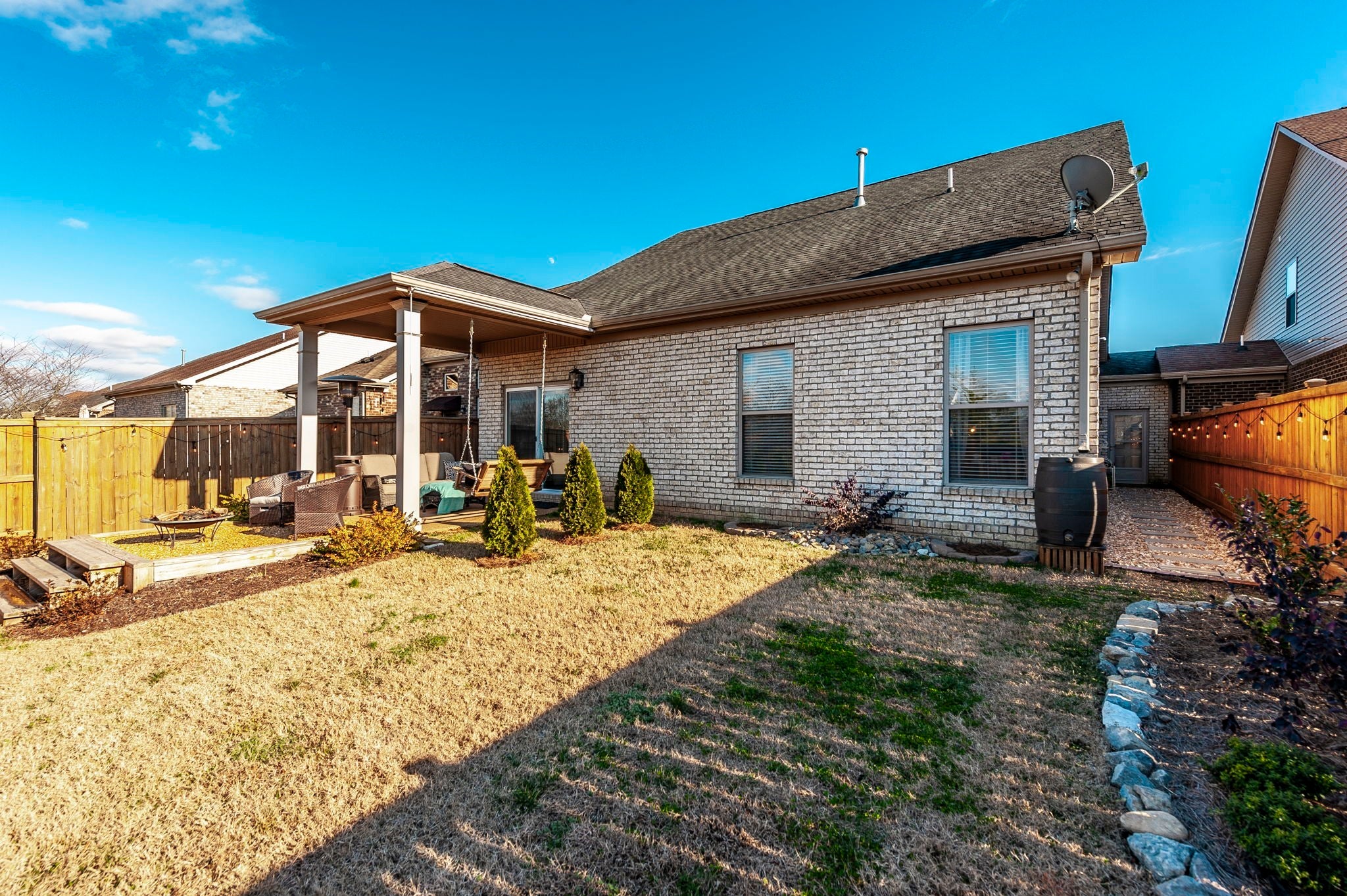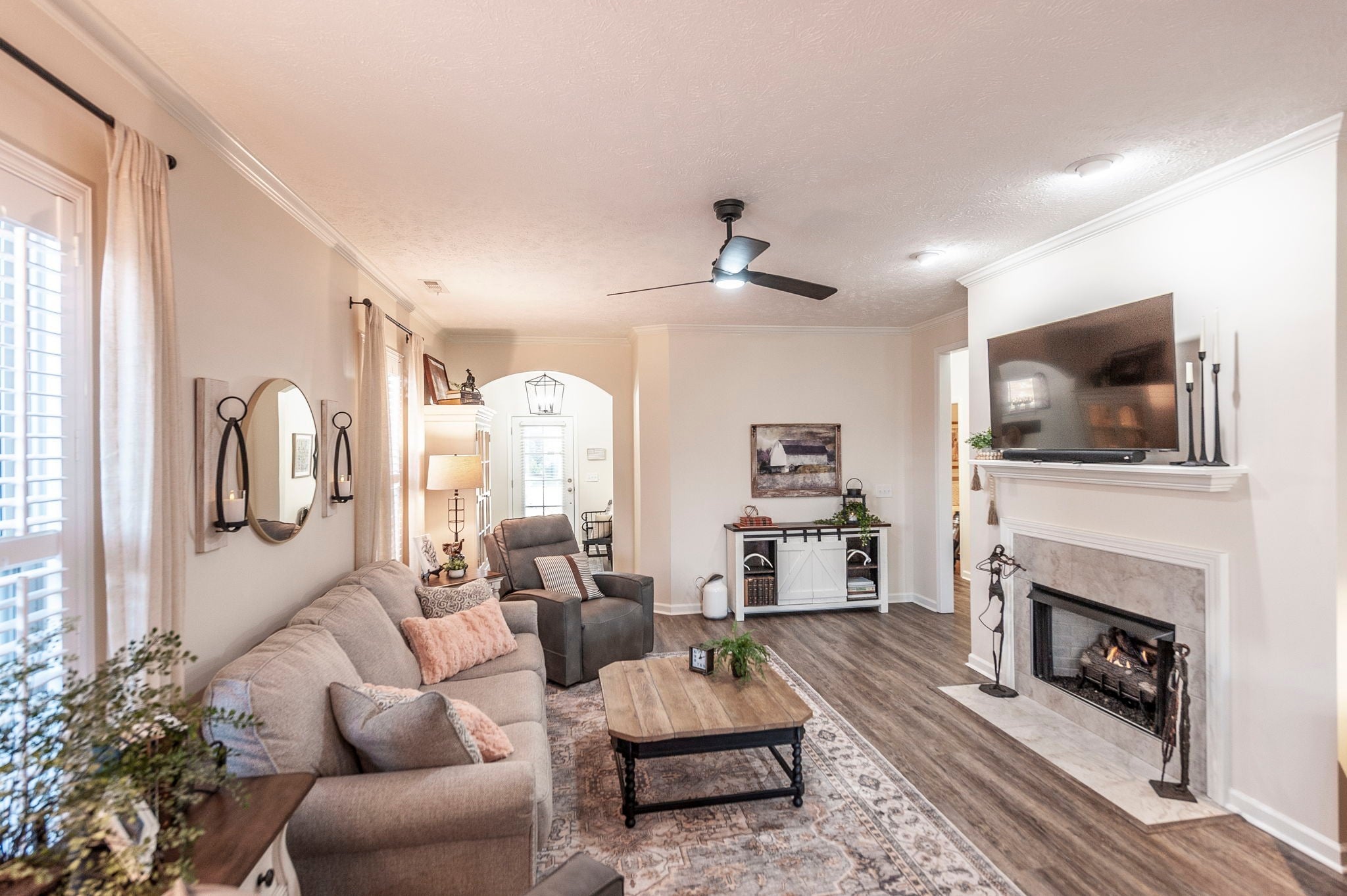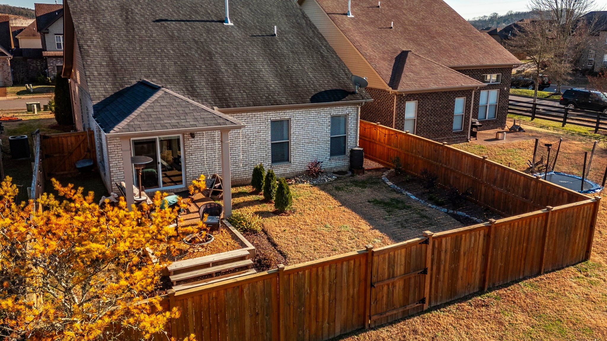 Welcome to this beautifully designer decorated, one-level home nestled in the heart of Hendersonville, just minutes from Station Camp Schools & Union University. Located in a gated community, this home offers a lifestyle of comfort and convenience with access to two commnity pools, a clubhouse, and a scenic greenway trail leading directly to the schools and university. Everyday essentials like Publix and Kroger are just around the corner. This thoughtfully updated 3-bedroom, 2-bath home spans 1,602 square feet and has been impeccably cared for. You’ll love the new luxury vinyl plank flooring throughout, custom faux wood interior shutters, updated designer lighting, fresh neutral paint, custom built-in nook bookcase, and extra storage in both the garage and attic. The primary suite is a true retreat, featuring double vanities and a stunning new walk-in shower, while the open-concept living and dining areas flow effortlessly—perfect for both entertaining and relaxed everyday living. Step outside to your own private backyard escape with a covered patio, lush landscaping, cozy fire pit area, and a 6-foot privacy fence. With HOA-owned green space behind the home, you’ll enjoy added privacy, extra play area and a peaceful setting, plus a quick walk out the back gate and over to the pool! If you’re looking for low-maintenance living in a prime location with upscale touches throughout, this home is a must-see. 220 plug in garage for charging your vehicle if needed! Dishwasher 2025, Garbage disposal 2024, Toilets 2023, Refrig 2023, Fence 2023.