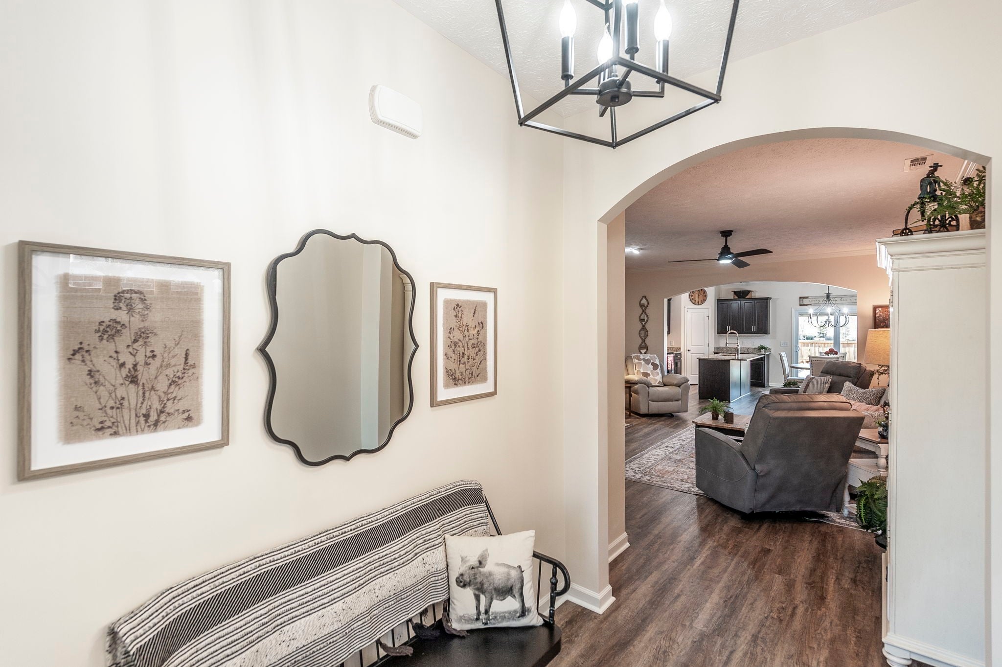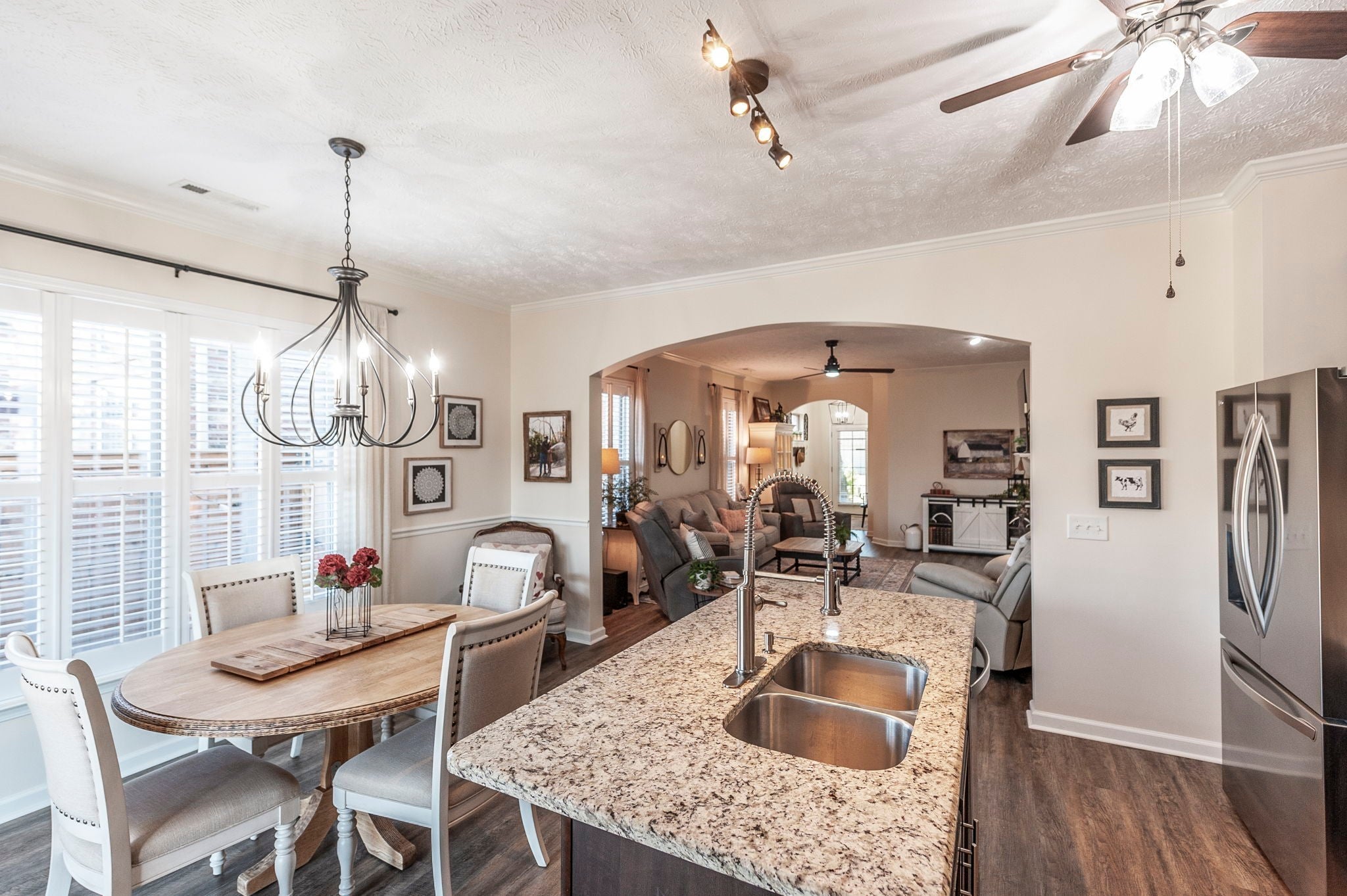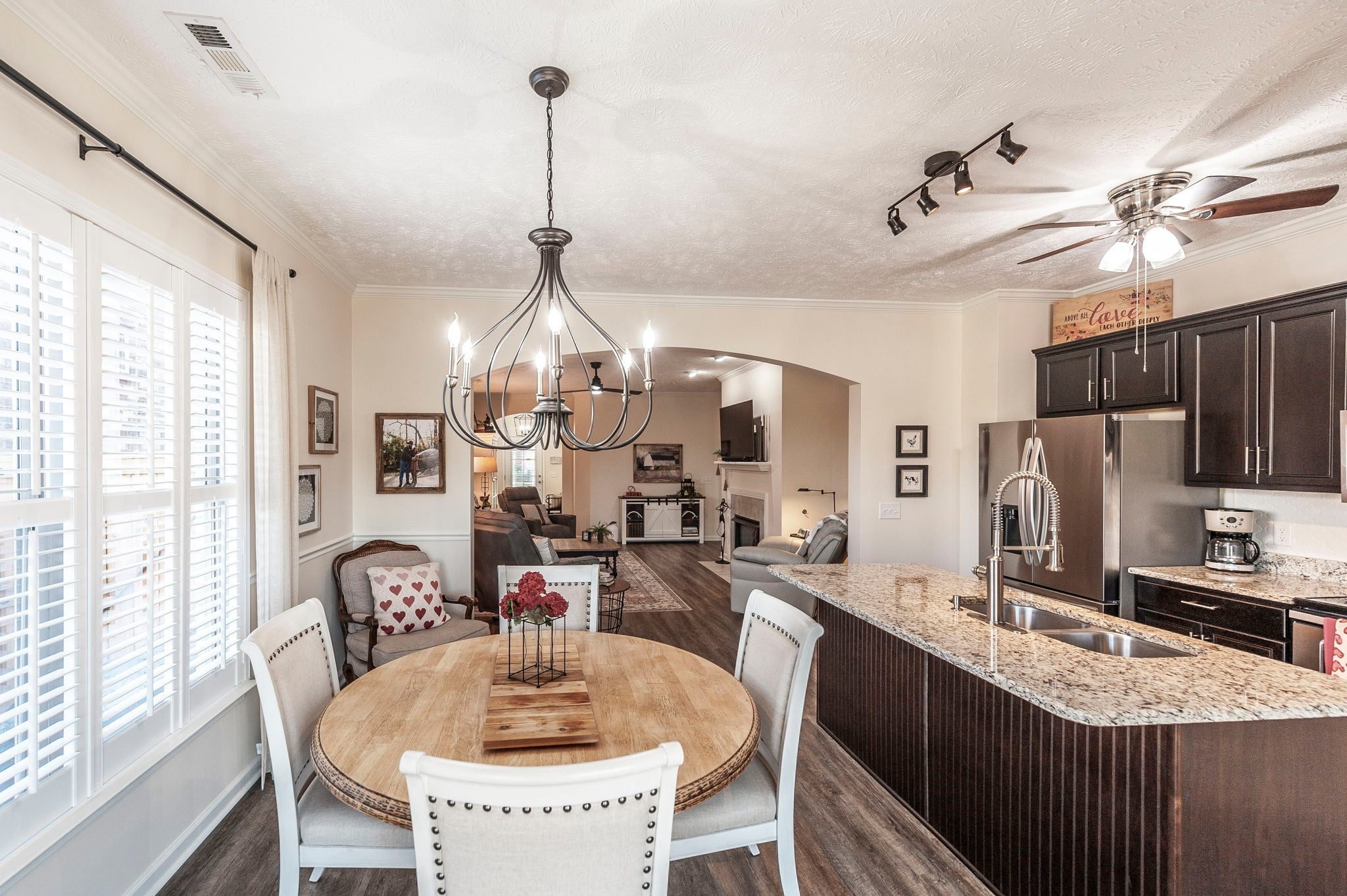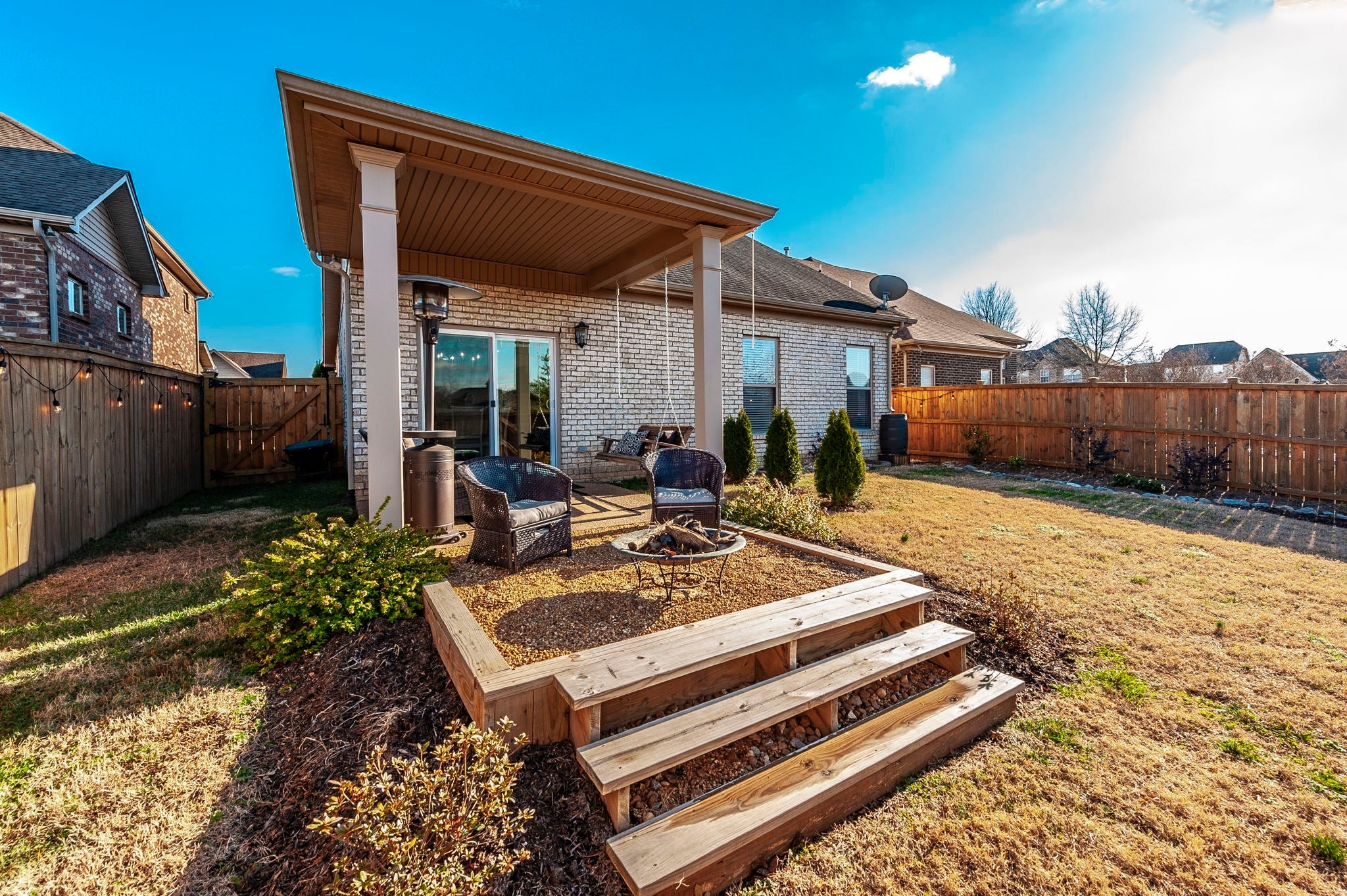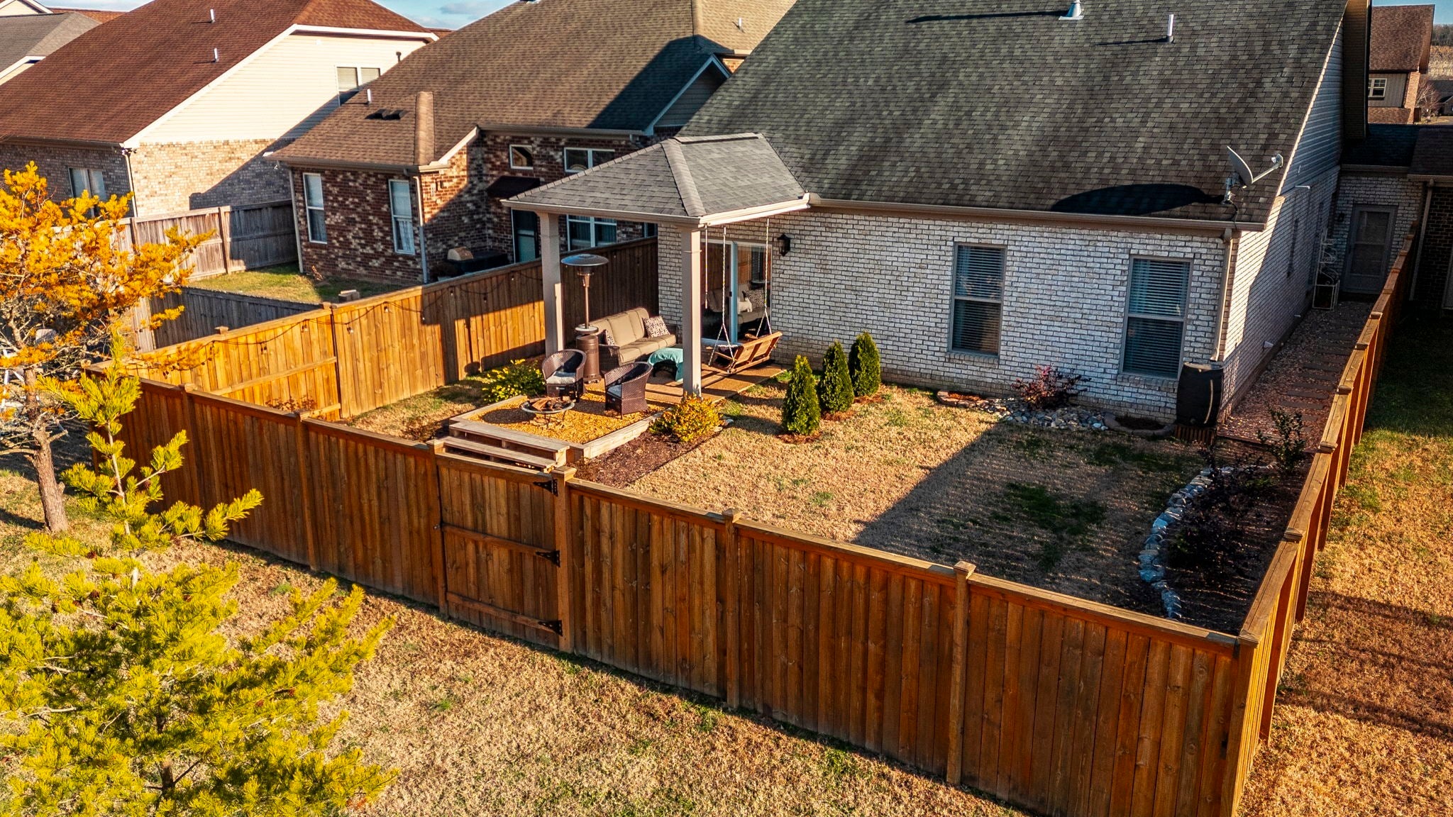 Welcome to this beautifully designer decorated, one-level home nestled in the heart of Hendersonville, just minutes from Station Camp Schools & Union University. Located in a gated community, this home offers a lifestyle of comfort and convenience with access to two commnity pools, a clubhouse, and a scenic greenway trail leading directly to the schools and university. Everyday essentials like Publix and Kroger are just around the corner. This thoughtfully updated 3-bedroom, 2-bath home spans 1,602 square feet and has been impeccably cared for. You’ll love the new luxury vinyl plank flooring throughout, custom faux wood interior shutters, updated designer lighting, fresh neutral paint, custom built-in nook bookcase, and extra storage in both the garage and attic. The primary suite is a true retreat, featuring double vanities and a stunning new walk-in shower, while the open-concept living and dining areas flow effortlessly—perfect for both entertaining and relaxed everyday living. Step outside to your own private backyard escape with a covered patio, lush landscaping, cozy fire pit area, and a 6-foot privacy fence. With HOA-owned green space behind the home, you’ll enjoy added privacy, extra play area and a peaceful setting, plus a quick walk out the back gate and over to the pool! If you’re looking for low-maintenance living in a prime location with upscale touches throughout, this home is a must-see. 220 plug in garage for charging your vehicle if needed! Dishwasher 2025, Garbage disposal 2024, Toilets 2023, Refrig 2023, Fence 2023.