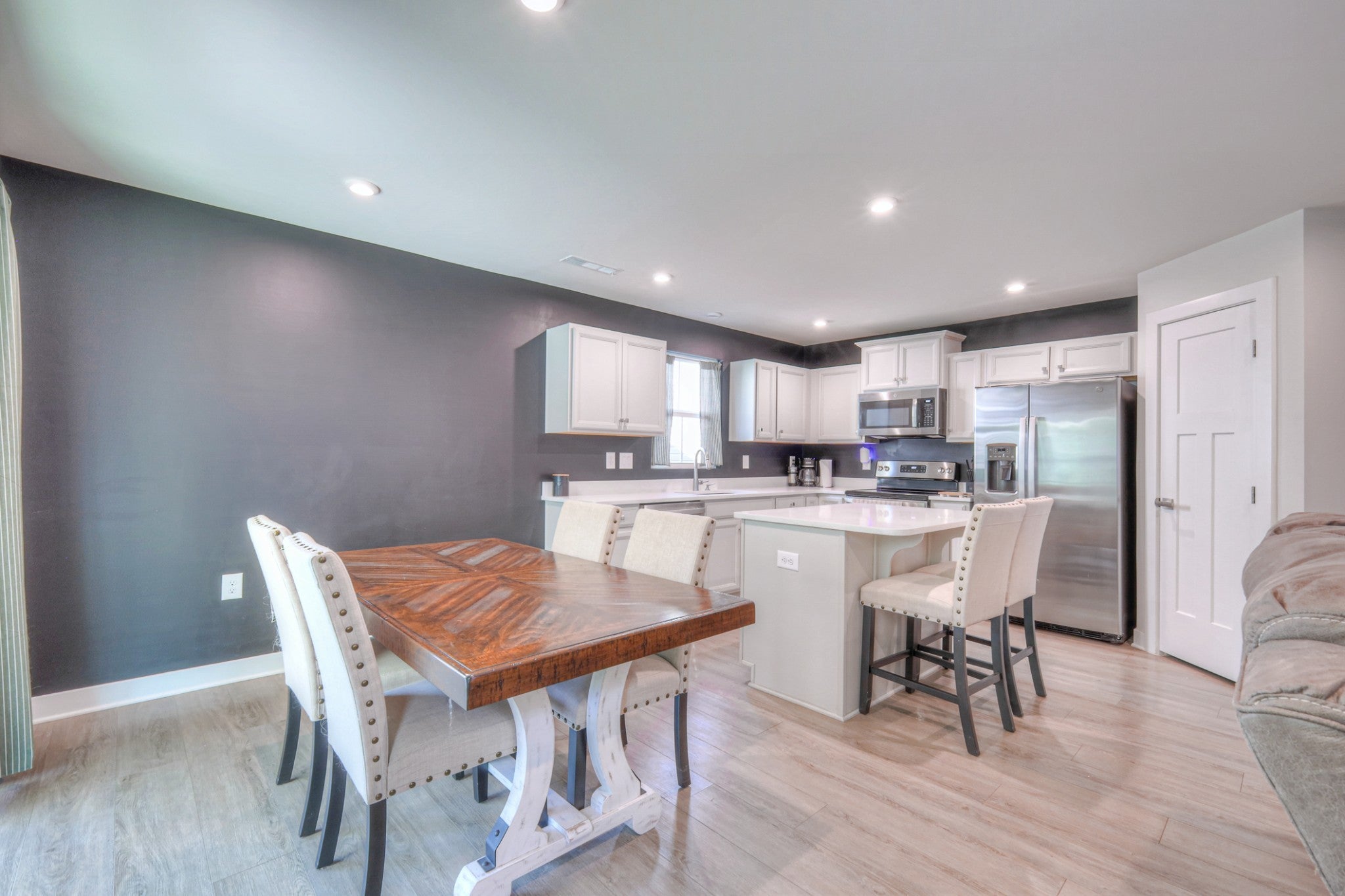 - Range, Dishwasher, Disposal, Microwave, Refrigerator