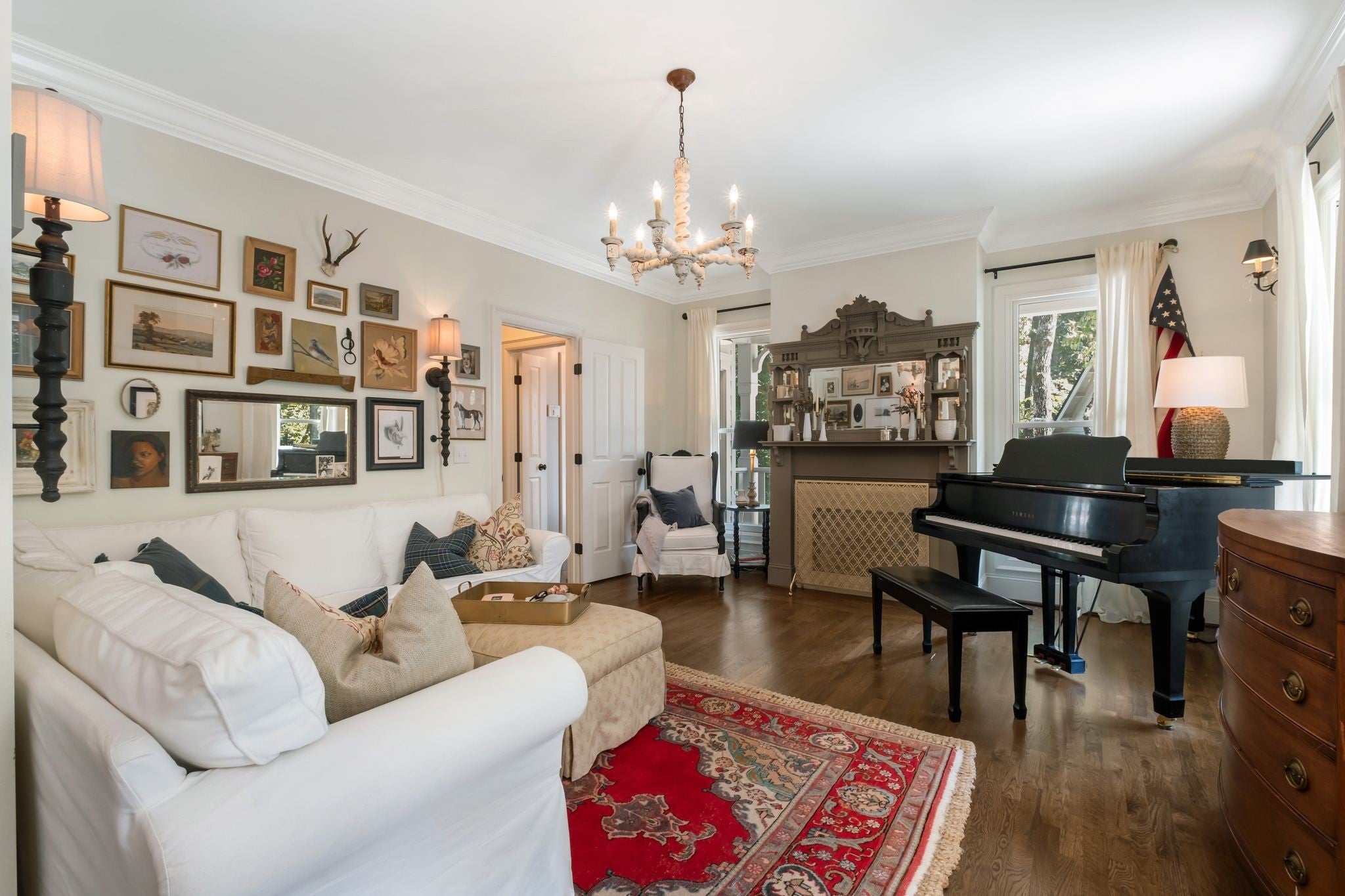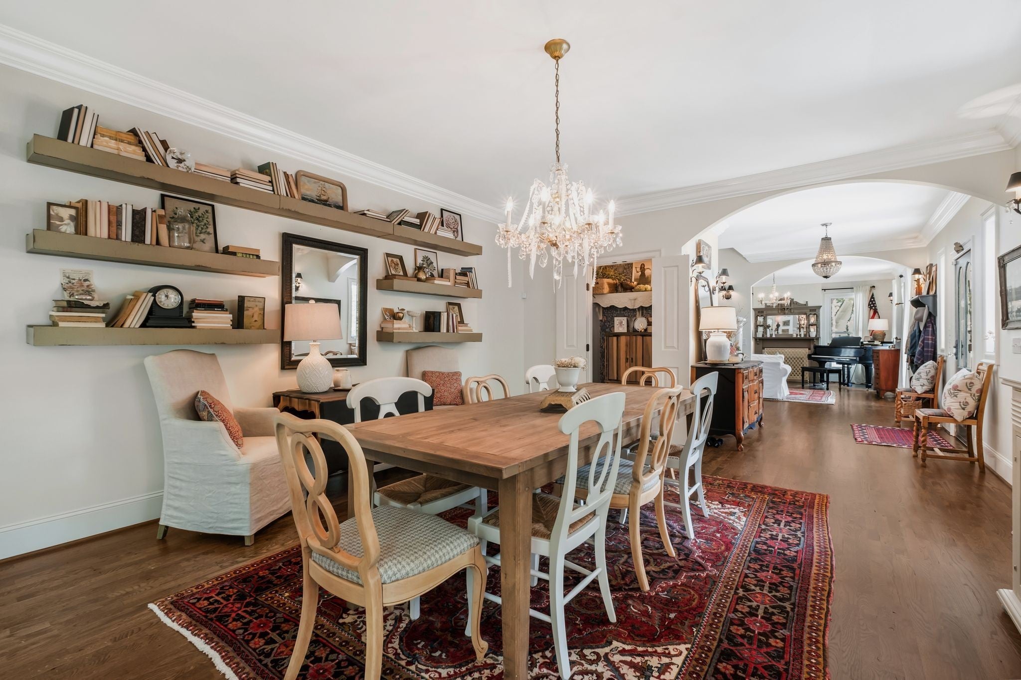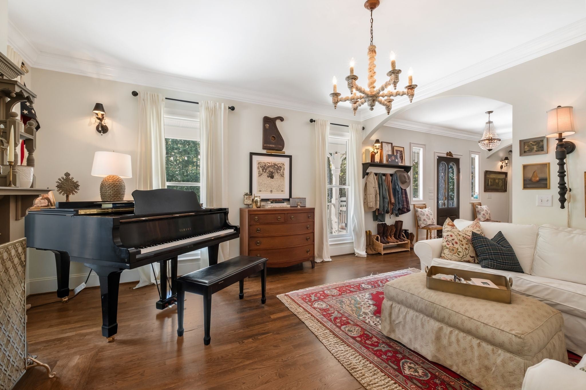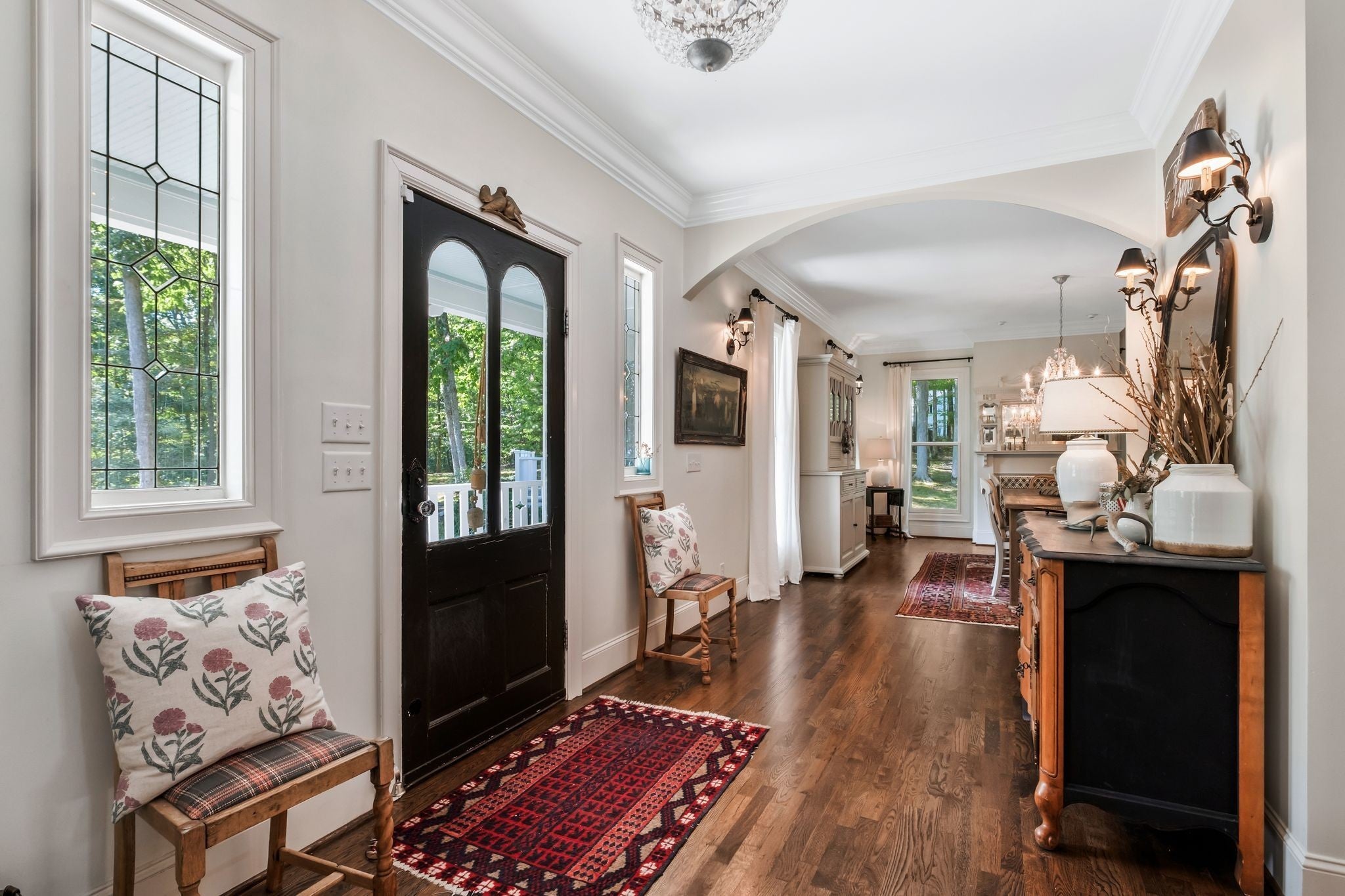Welcome home to Keepers Branch. A quintessential Leipers Fork treasure. Tucked down a private winding road with trees lined on each side, sits a Victorian Farmhouse, the kind books are written about. The home features 3 floors with multiple living spaces and nooks for reading and dreaming. High ceilings and abundant natural light. Multi level decking, wrap around covered porches for early morning lovers. A swim spa. European Stain glass windows, an imported front door, and 4 fireplace mantles - each carefully curated and over 100 yrs old. The detailed molding, antique hardware, striking chandeliers, and solid hardwood floors draw you in. A Large Primary suite greets you on the main floor featuring dual walk-in closets and a large ensuite bathroom. Perked for 4 bedrooms but has been used as a 7. Double laundry rooms (main floor and basement level) for convenience. A Kitchen that is warm, inviting and made for gathering and entertaining. A sitting room, a lounge, formal dining, family room, living room - in this home there is space for everyone. Two additional Heated and Cooled buildings not included in square footage total. The Chapel (251 sq ft) which is the perfect office or art studio, and a 3 car garage (835 sq ft) which has been converted into a first class recording studio (and can easily be re-converted back to a garage or left as a dwelling space). Immensely private. Yet conveniently close to all amenities. 7 min to the Village of Leipers Fork, and close to shopping and restaurants in Historic Downtown Franklin, 40 min to Nashville and the airport. This property offers a sense of peace and tranquility, tucked on over 11 acres in one of the countries most sought after locations, where gentle nods still take place as you pass each other on quiet country roads. Request to see the video and floorplan.