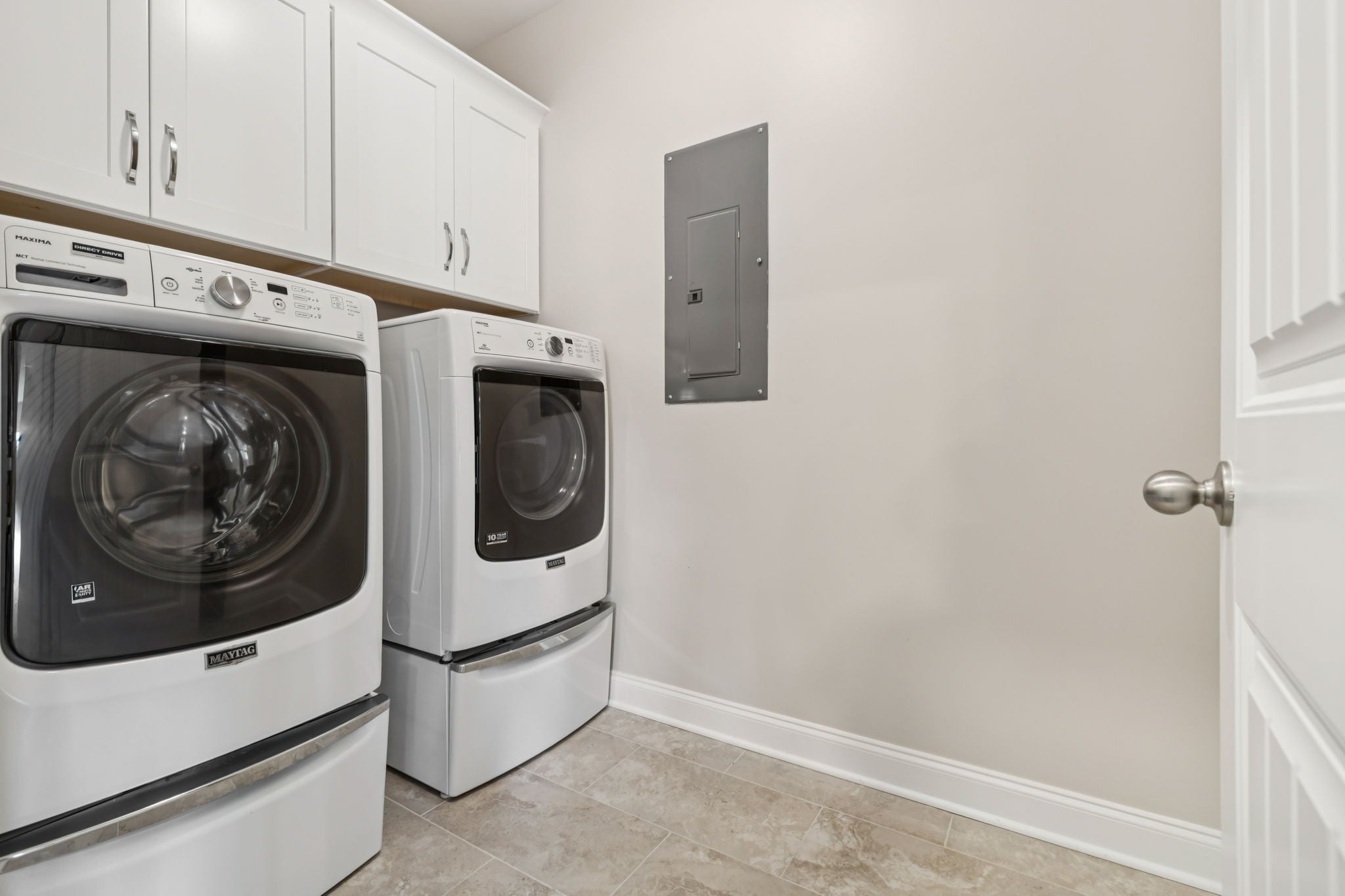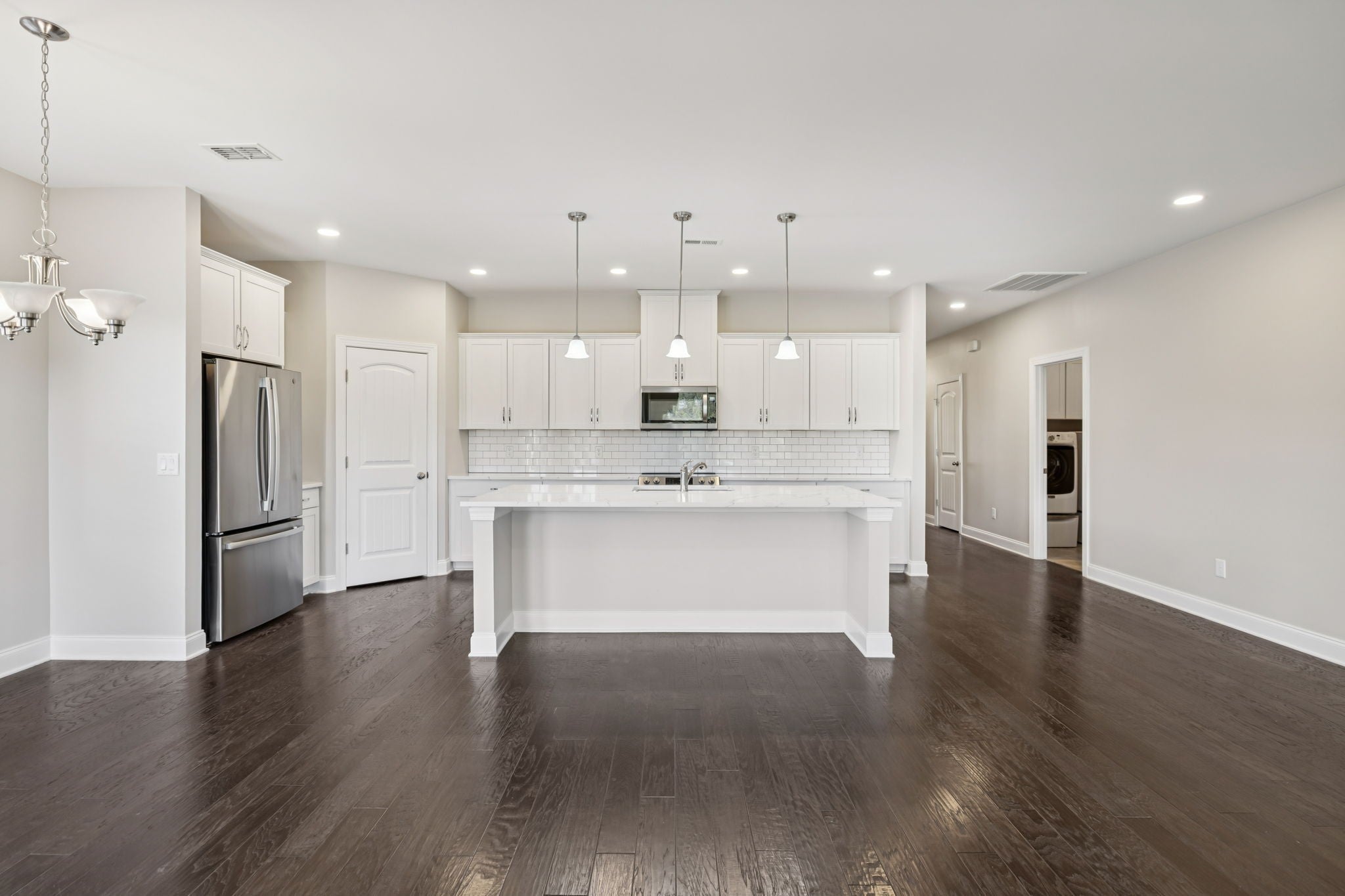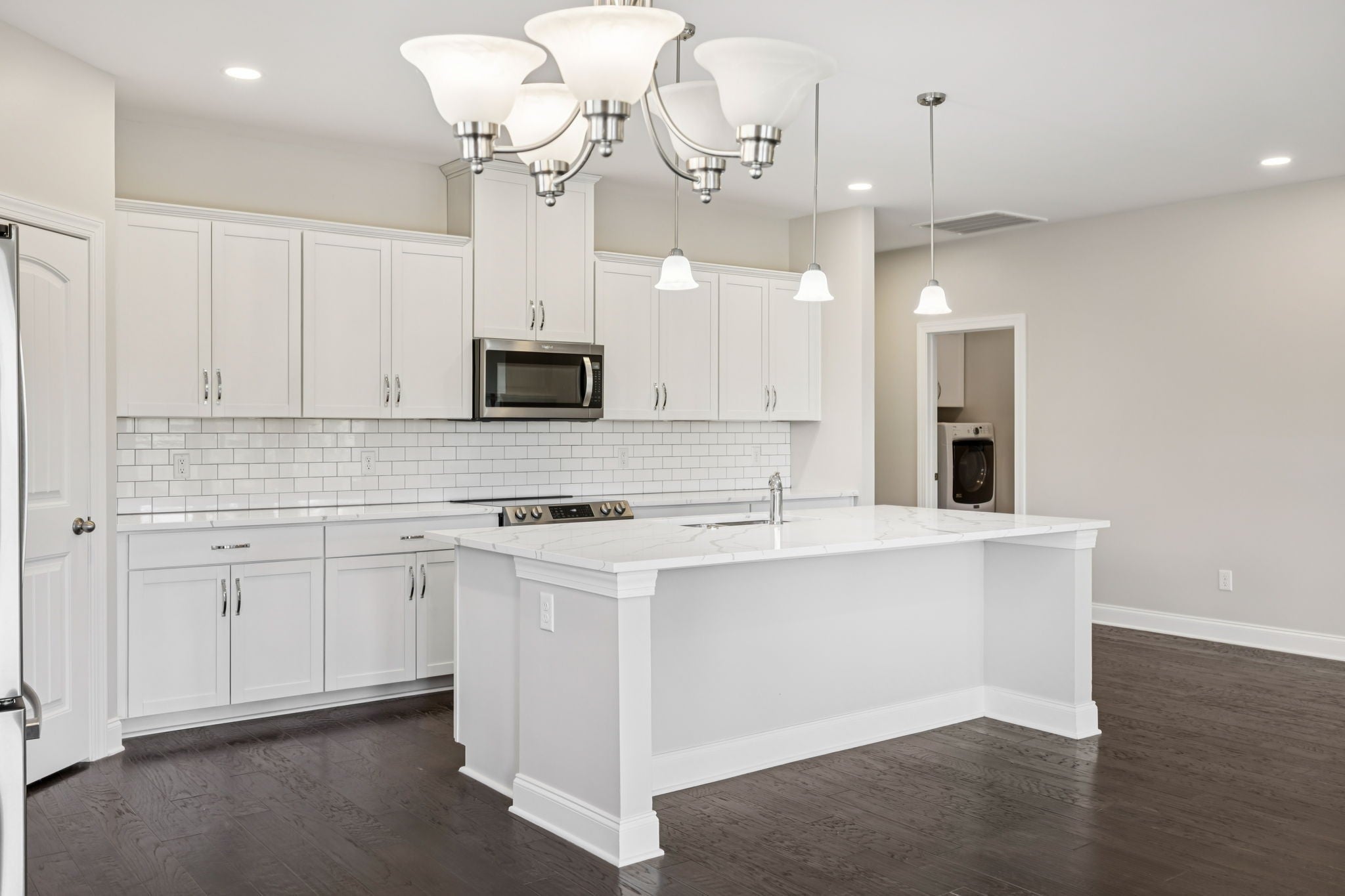 - Electric Range, Dishwasher, Disposal, Dryer, Microwave, Refrigerator, Stainless Steel Appliance(s), Washer