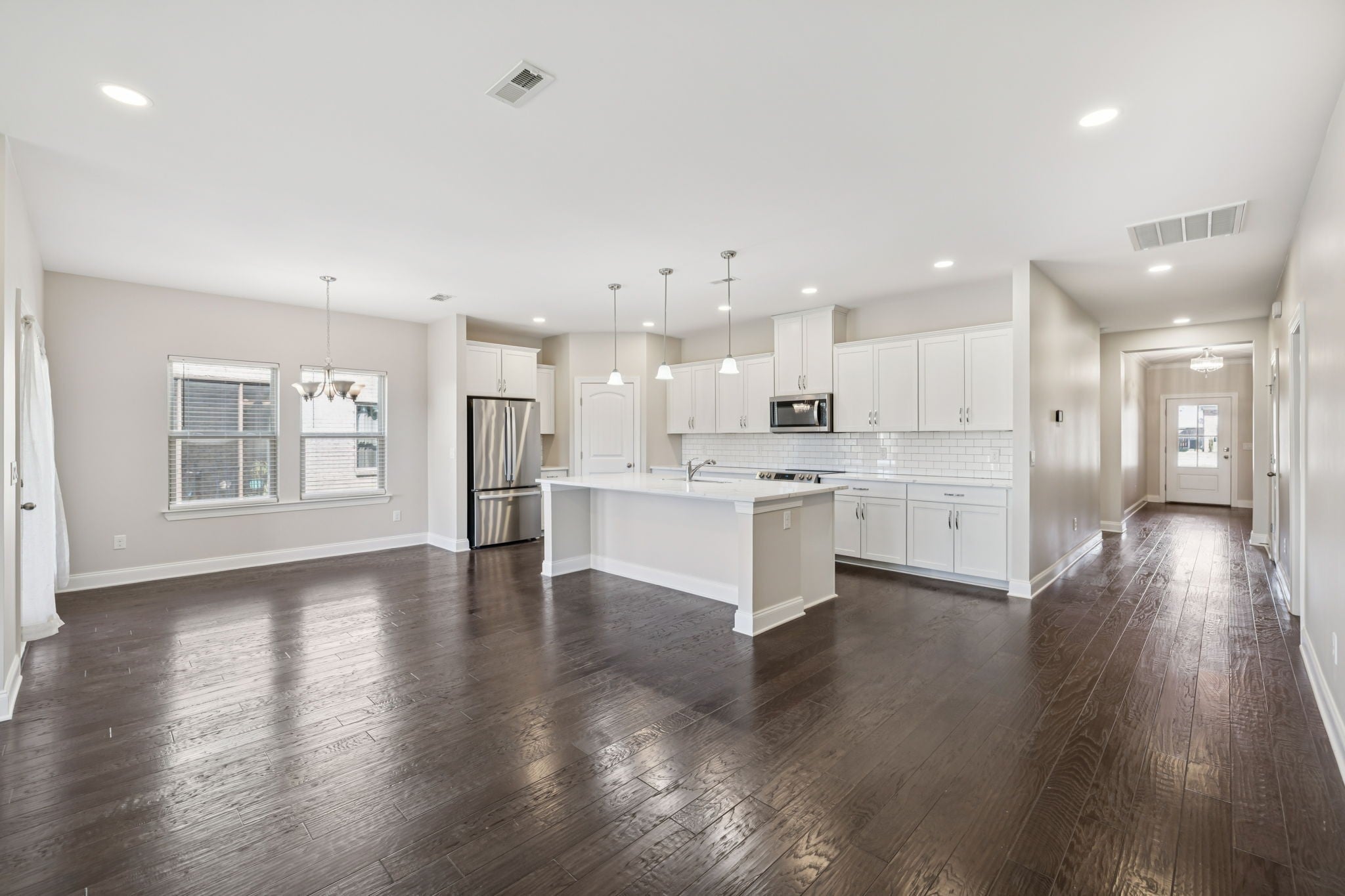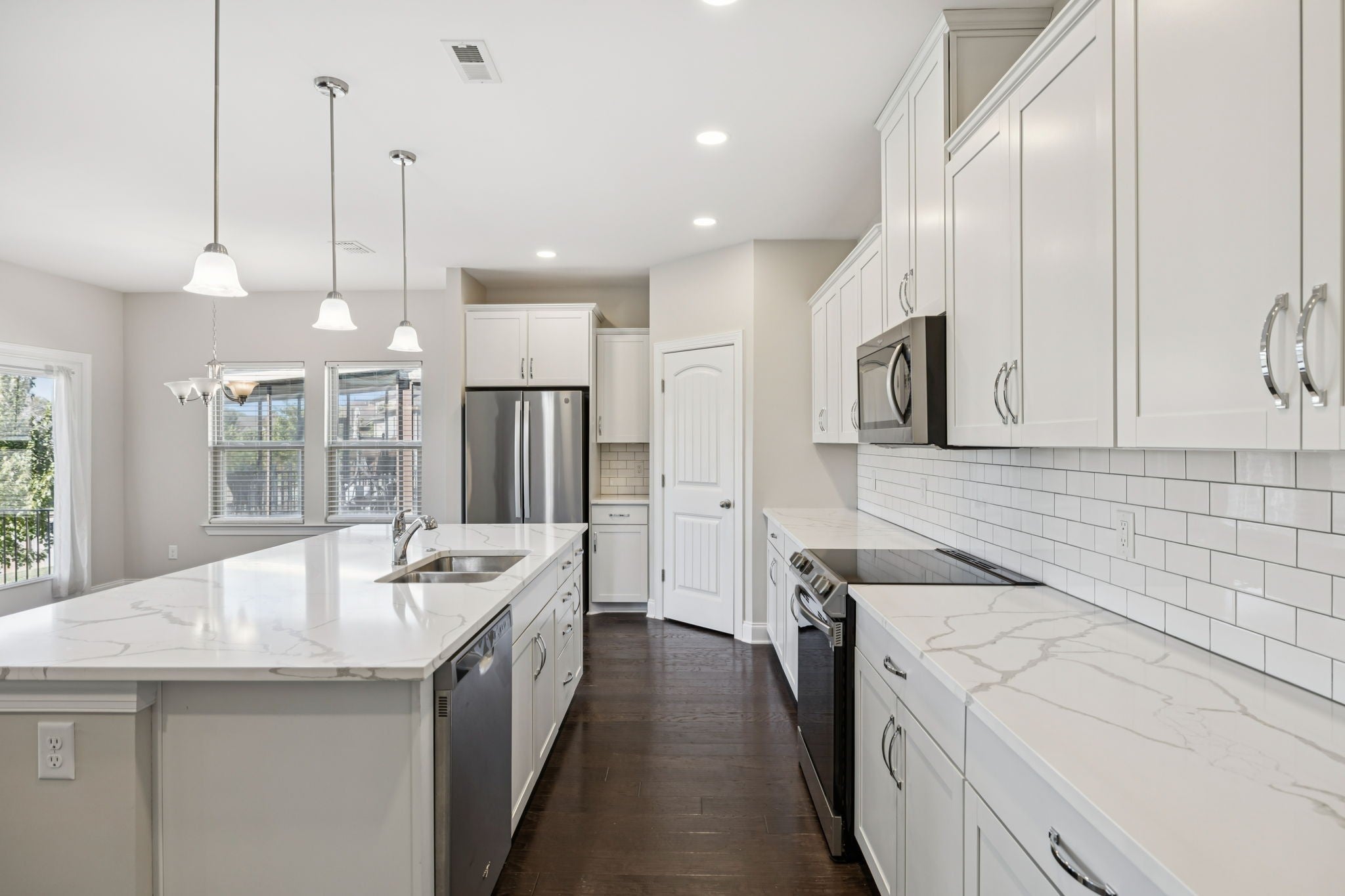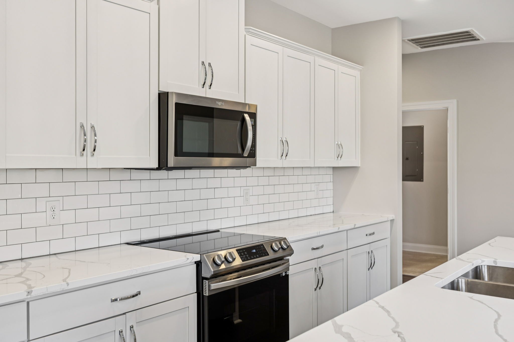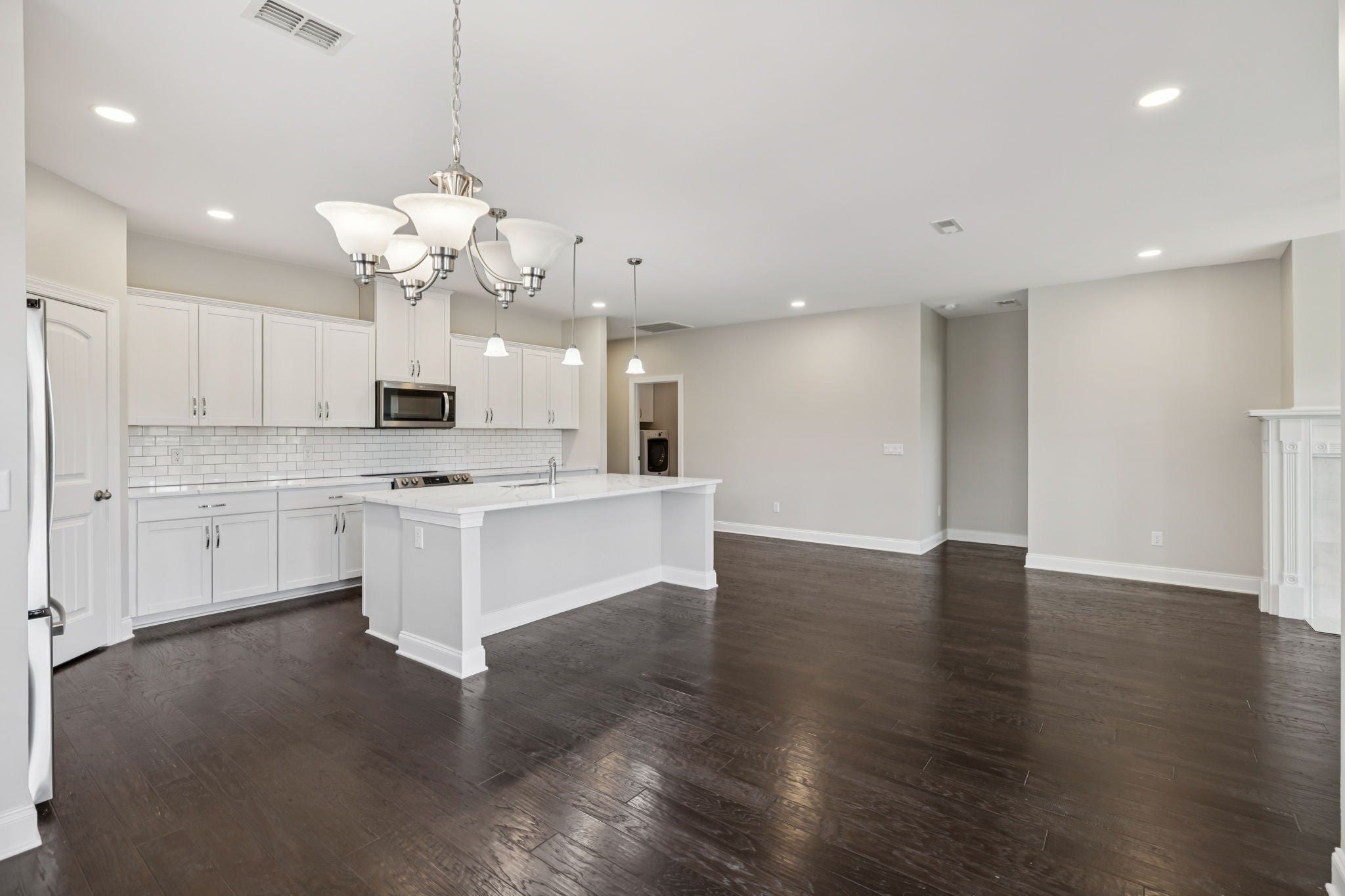 - Electric Range, Dishwasher, Disposal, Dryer, Microwave, Refrigerator, Stainless Steel Appliance(s), Washer