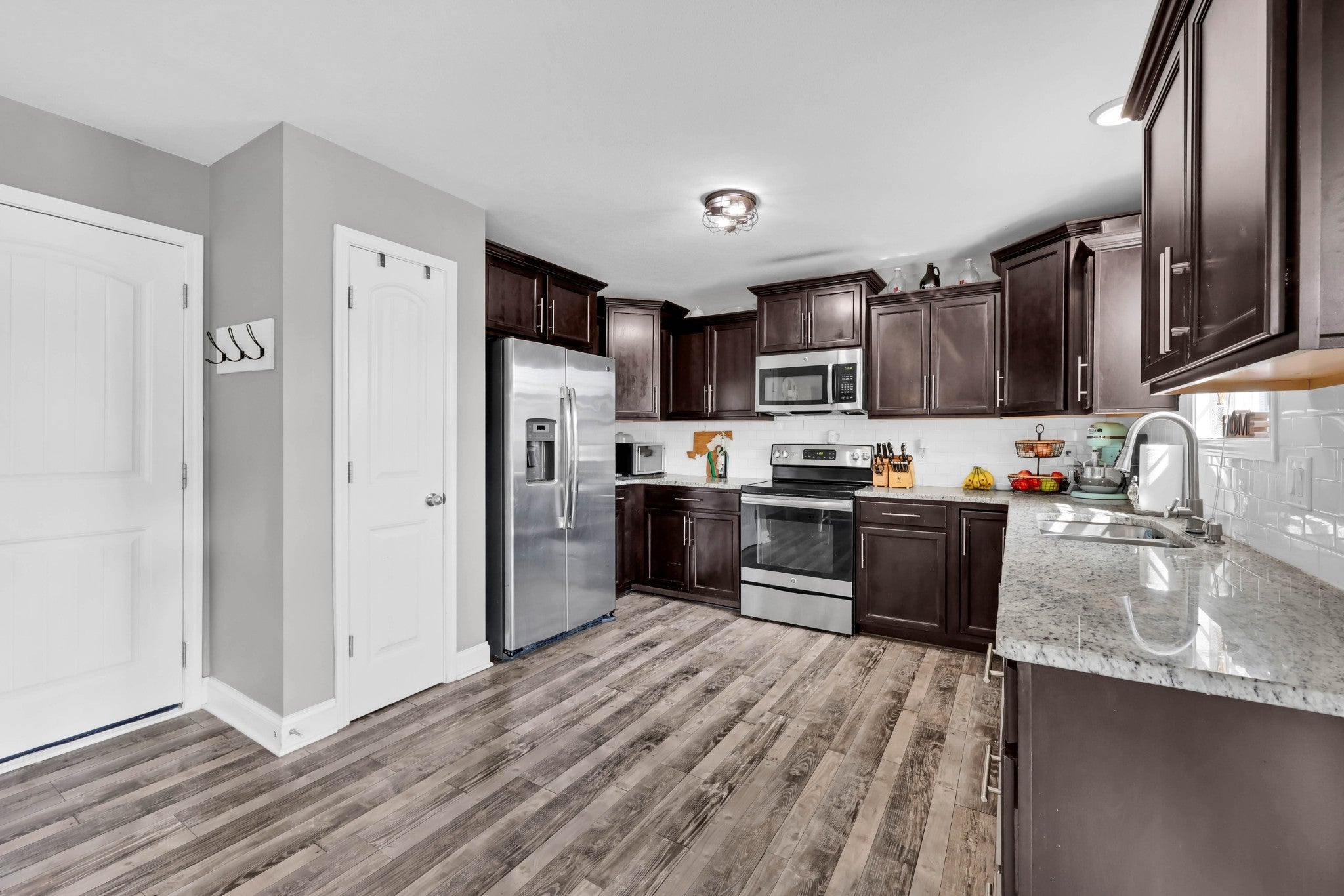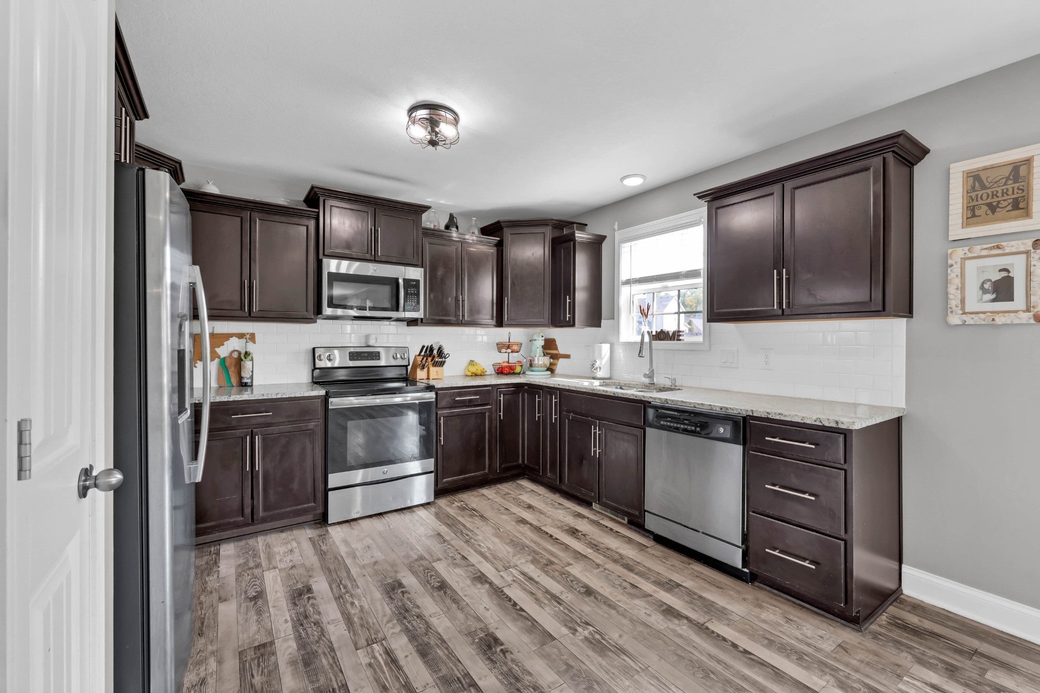 - Electric Range, Dishwasher, Microwave, Refrigerator