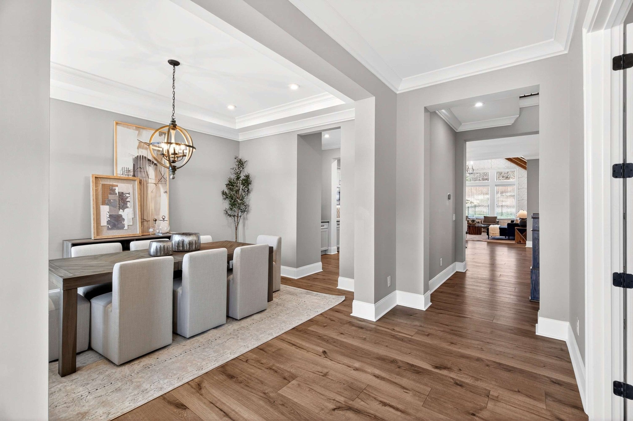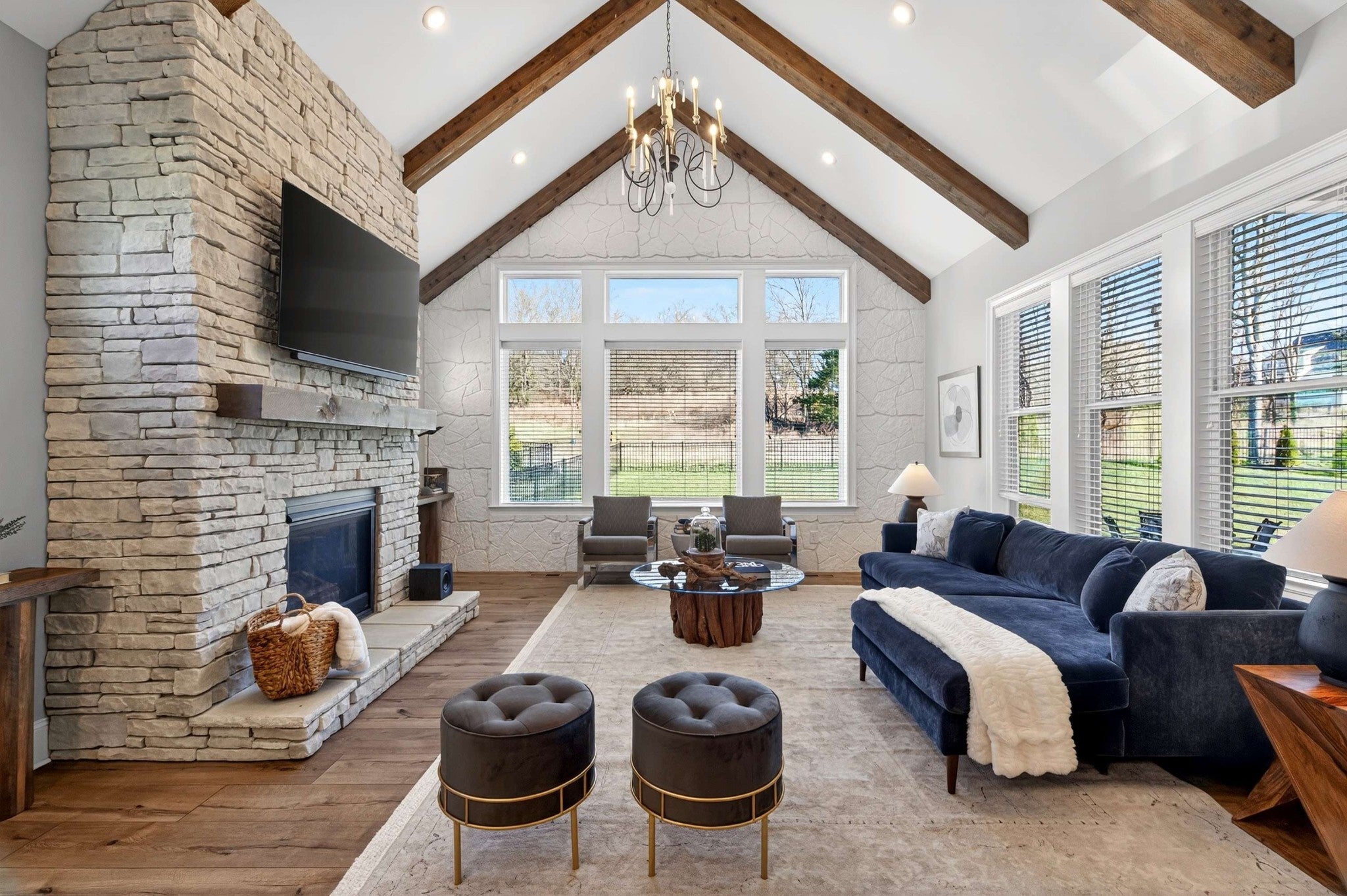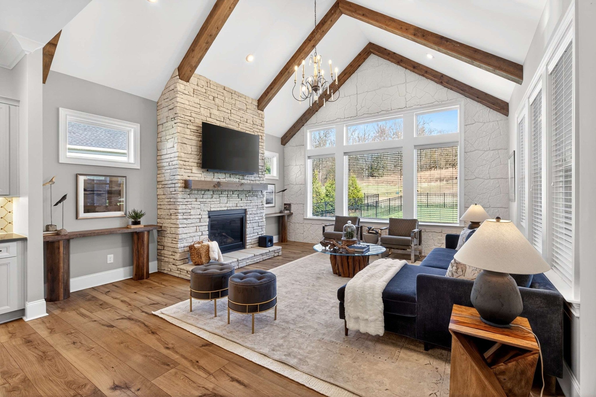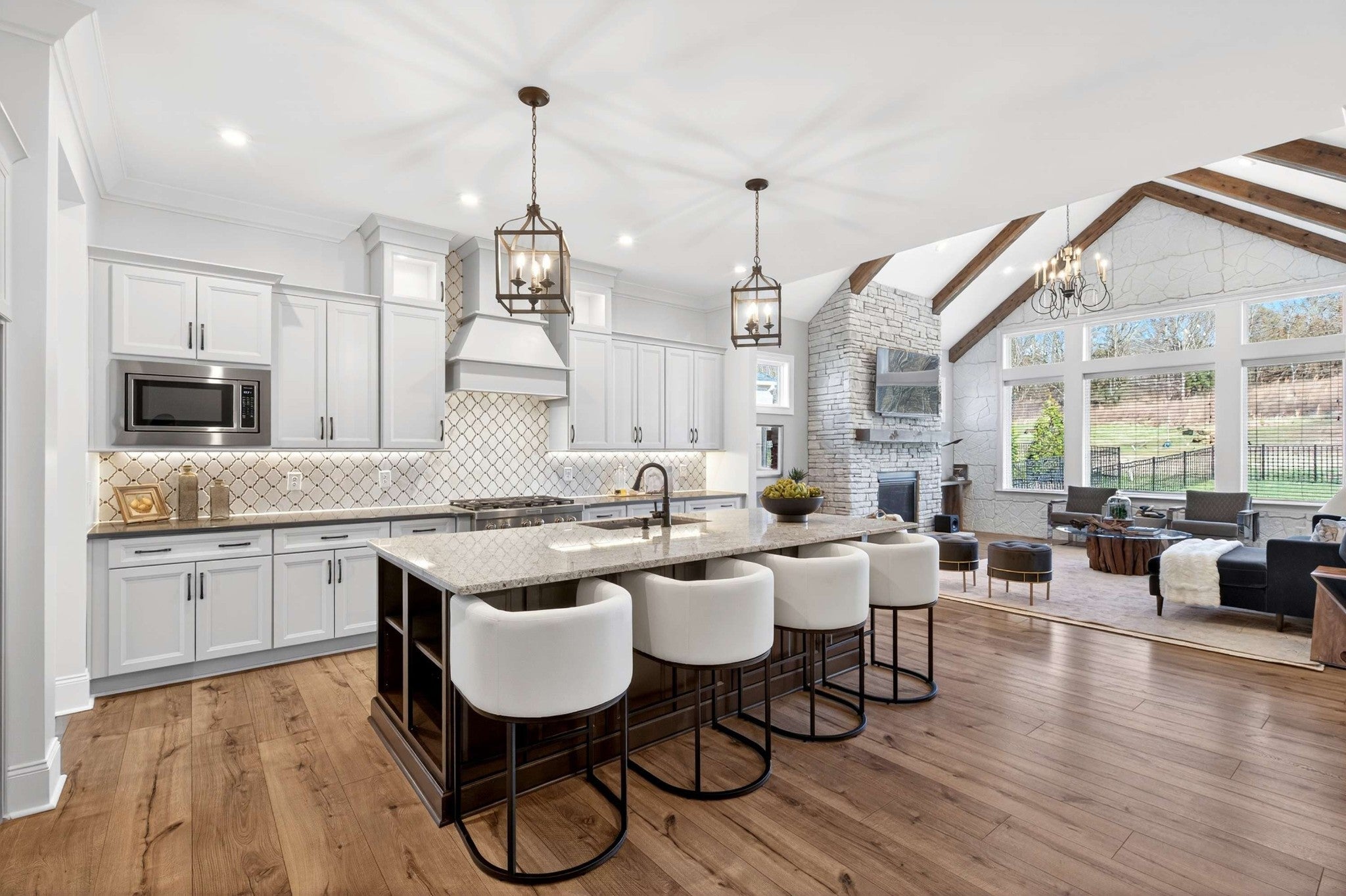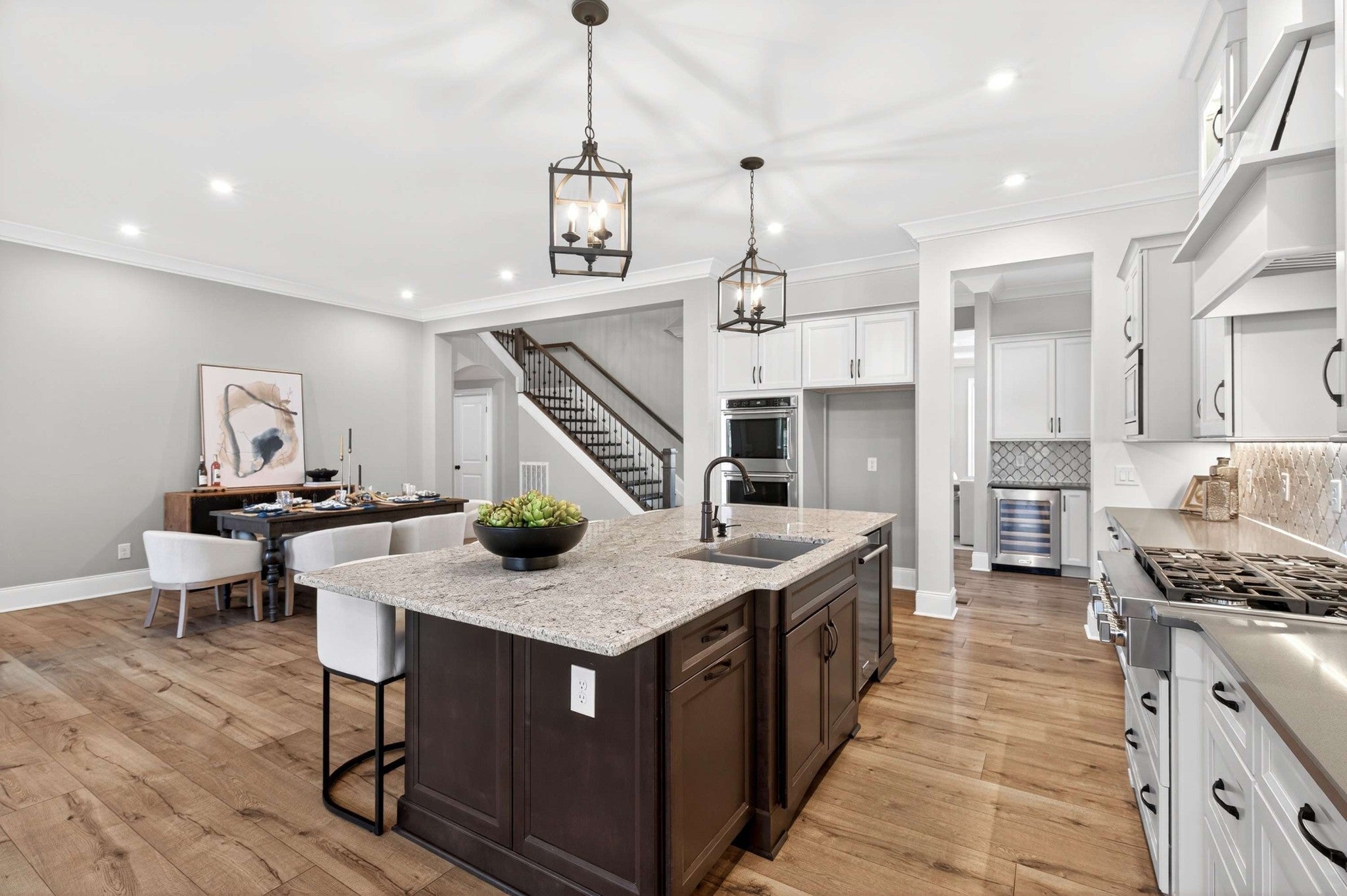 Elegant Family Living in Gated Kings’ Chapel Discover this stunning 2022-built home in the highly coveted Kings’ Chapel community of Arrington—where timeless elegance meets modern comfort on a private ½-acre lot. Built by award-winning Drees Homes and inspired by the popular “Belterra” showcase plan, the layout features soaring ceilings, sun-filled living spaces, and thoughtful design for families of all sizes. Heart of the home is a chef’s kitchen with generous prep and storage, seamlessly flowing into the dining room, keeping room, and spacious great room—perfect for both casual nights in and holiday entertaining. A stylish butler’s pantry with wine refrigerator elevates every gathering. The main level is anchored by a luxurious primary suite with spa-like bath and enviable walk-in closet. Secondary bedrooms, each with private en-suite baths, carefully spaced to maximize privacy. Flexible office and additional bonus room provide ideal options for work, study, or play. A massive upstairs bonus with wet bar invites movie nights, gaming, or music practice. Price includes 3 Samsung TVs with sound bars - 85", 65", and 55". Outdoors, a wide backyard and covered patio offer year-round potential for cookouts and gatherings, while the rare 4-car garage—with custom cabinetry and epoxy floors—ensures plenty of room for vehicles, storage, and hobbies. Kings’ Chapel delivers resort-style amenities designed with families in mind: a luxurious heated saltwater pool, clubhouse with full-service restaurant, remodeled fitness center, walking trails, stocked fishing pond, and acres of preserved green space. More than a house—it’s a home where family life, entertaining, and everyday convenience come together beautifully.
