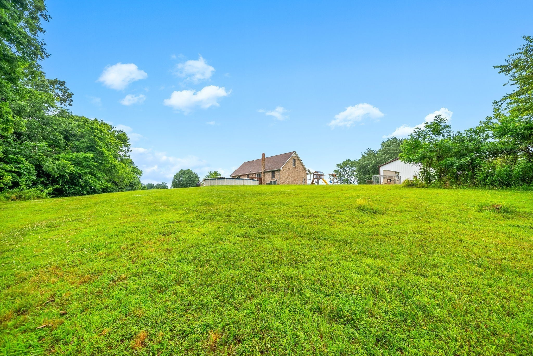 Welcome to this spacious home with over 2,500 square feet of living space, set on 5 unrestricted acres with county taxes only. BRAND NEW HVAC for upstairs just installed! - Located on a dead-end street, the property offers both open yard space and wooded areas for added privacy. A large covered front porch provides peaceful views of surrounding farmland. Inside, you’ll find a picture-perfect kitchen with modern updates and a large dining area - perfect for gatherings! The main-level primary suite features a jacuzzi tub, step-in shower, and sliding glass doors leading to a large deck overlooking the pool. Upstairs, you'll find three generously sized bedrooms and a full bathroom. The main floor also includes a spacious utility room and a versatile bonus space. Recent updates include a new roof, new appliances, new carpet upstairs, and new flooring on the main level. Two-car basement garage and large detached garage so bring the toys! - Could this be YOUR forever home? Schedule your showing today!