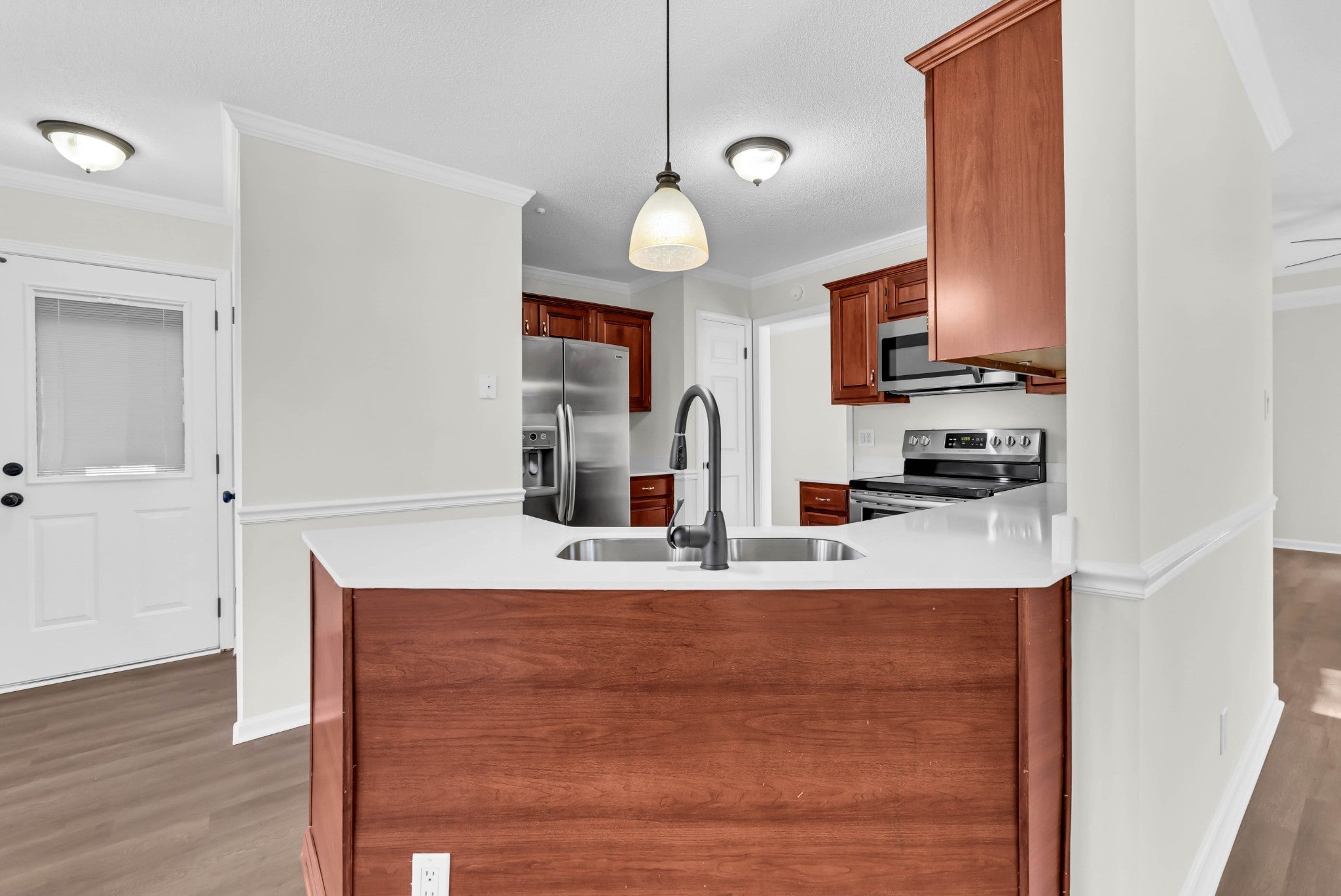 - Electric Oven, Electric Range, Dishwasher, Microwave, Refrigerator, Stainless Steel Appliance(s)