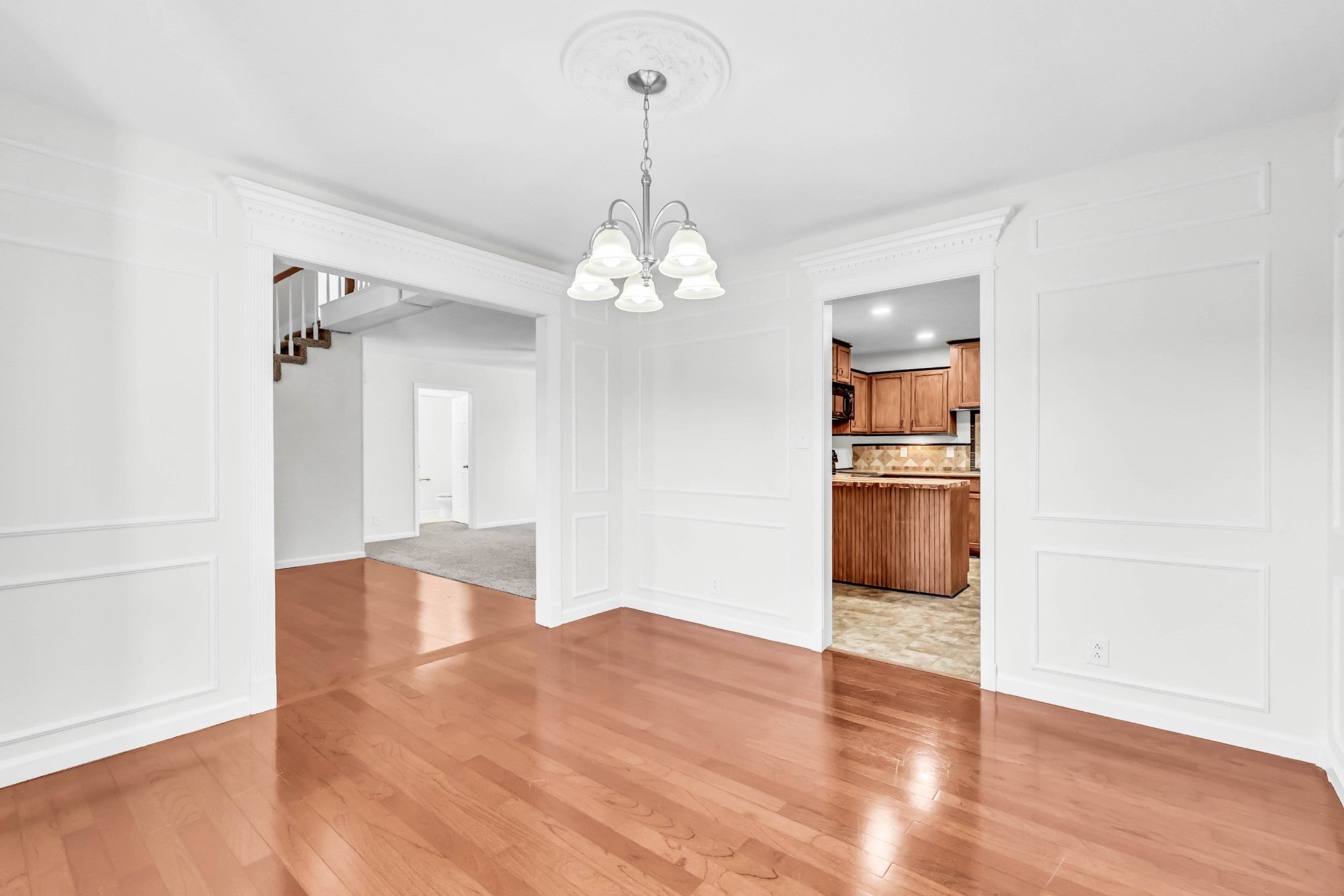 Welcome home to this beautiful retreat, where a delightful covered front porch greets you as you enter a spacious foyer, highlighted by a stunning chandelier and soaring ceilings. The formal dining room, with its elegant moldings, exudes sophistication. The kitchen features plenty of built-in storage, paired with sleek black appliances and butcher block countertops. Conveniently located on the main level, the primary suite includes double vanities, while the 3 additional bedrooms are found upstairs. There’s also a dedicated office space complete with a built-in desk and cabintery. The living room on the lower level boasts a cozy fireplace and opens into a fully finished, expansive enclosed rec room. This inviting space leads to an outdoor sanctuary, complete with a beautifully landscaped backyard encircled by a privacy fence and shaded by lovely trees. A koi pond graces the area next to the covered patio and a charming pergola with a built in bench, creating the perfect setting for tranquil moments. Situated in the heart of Clarksville, this home truly offers an extraordinary living experience.