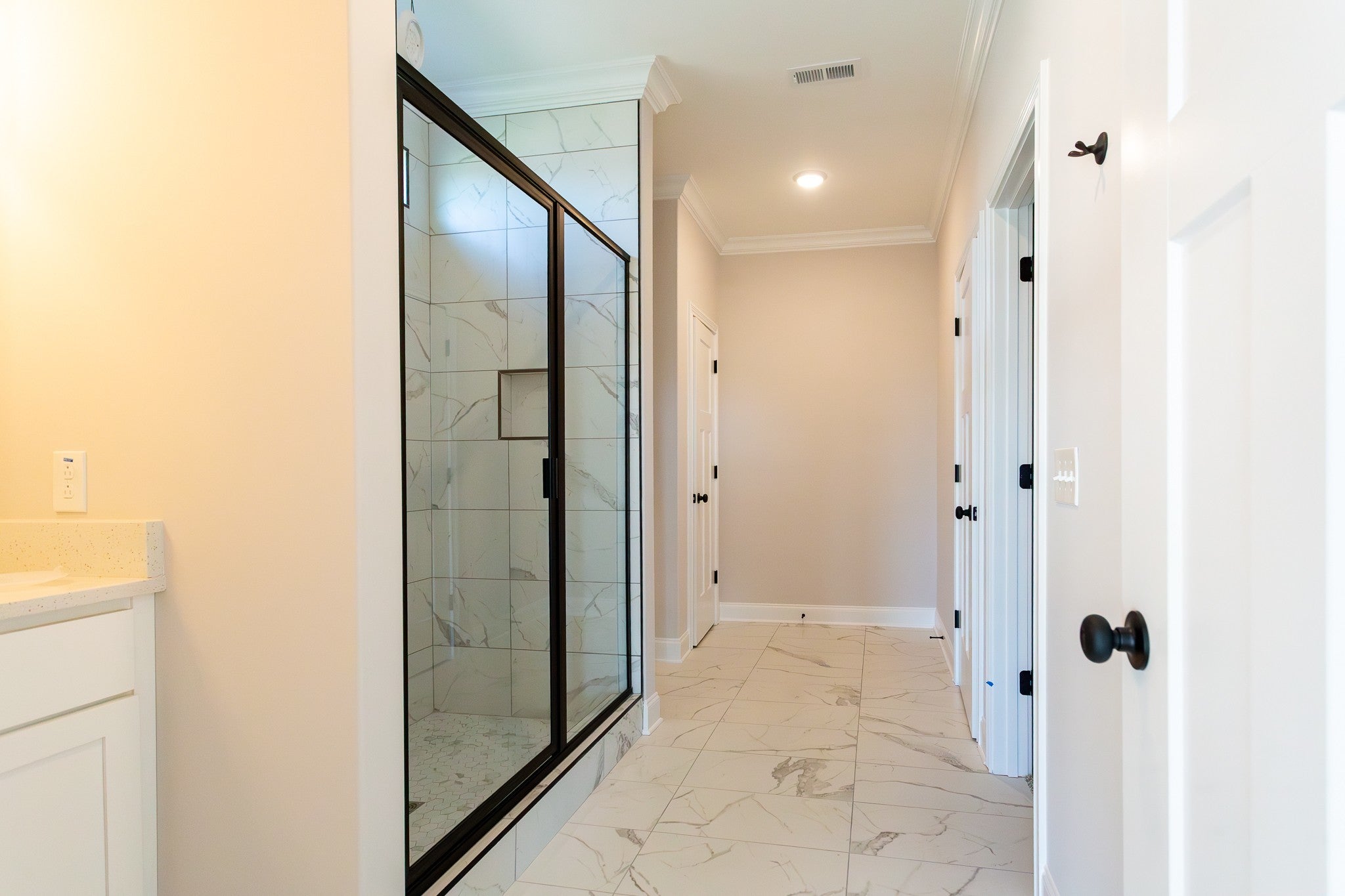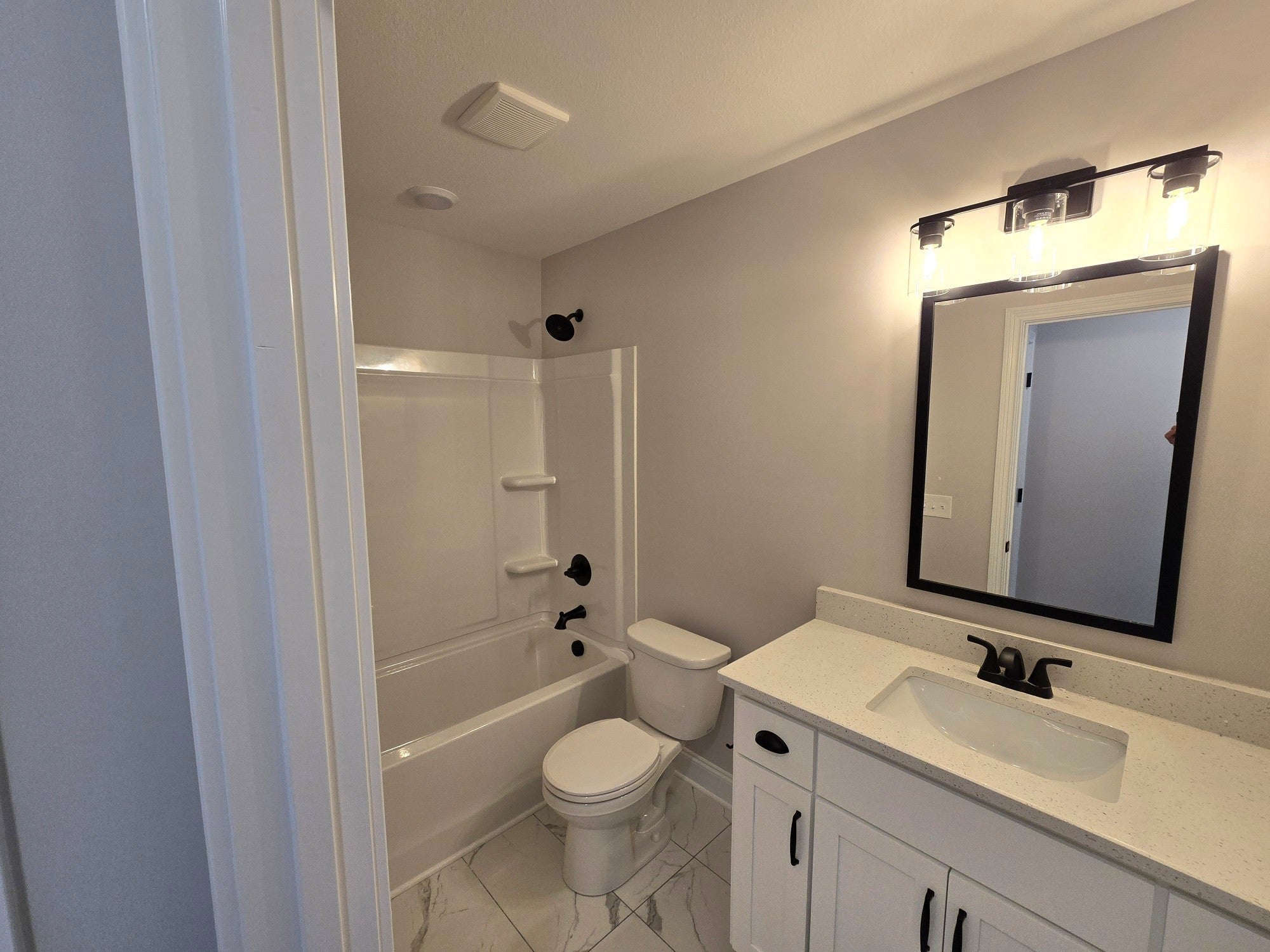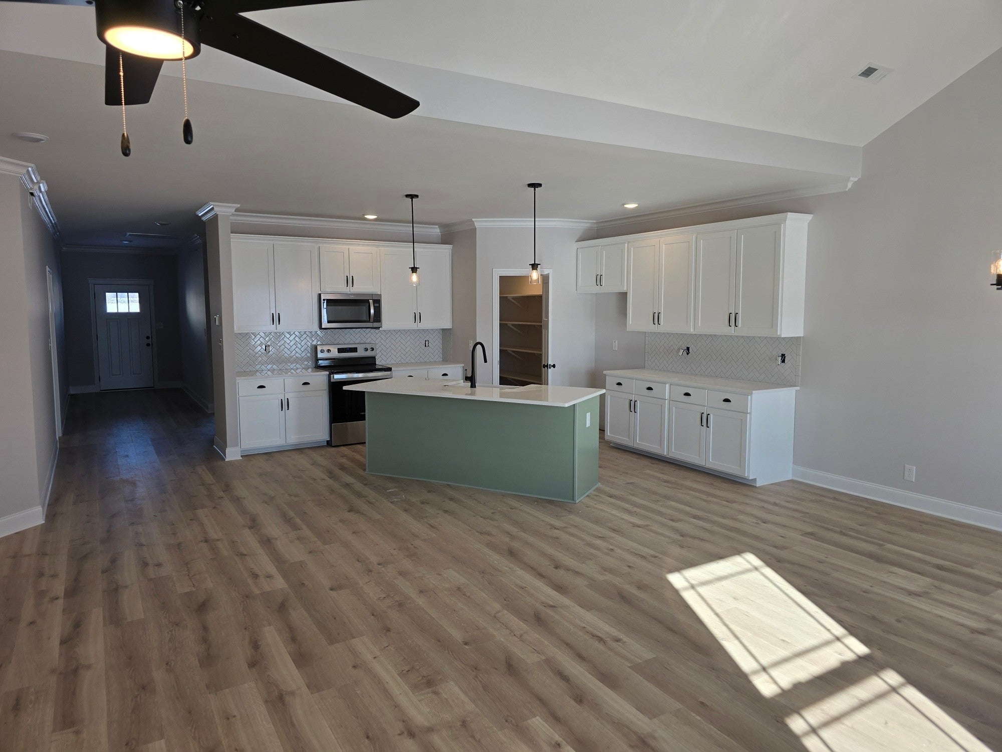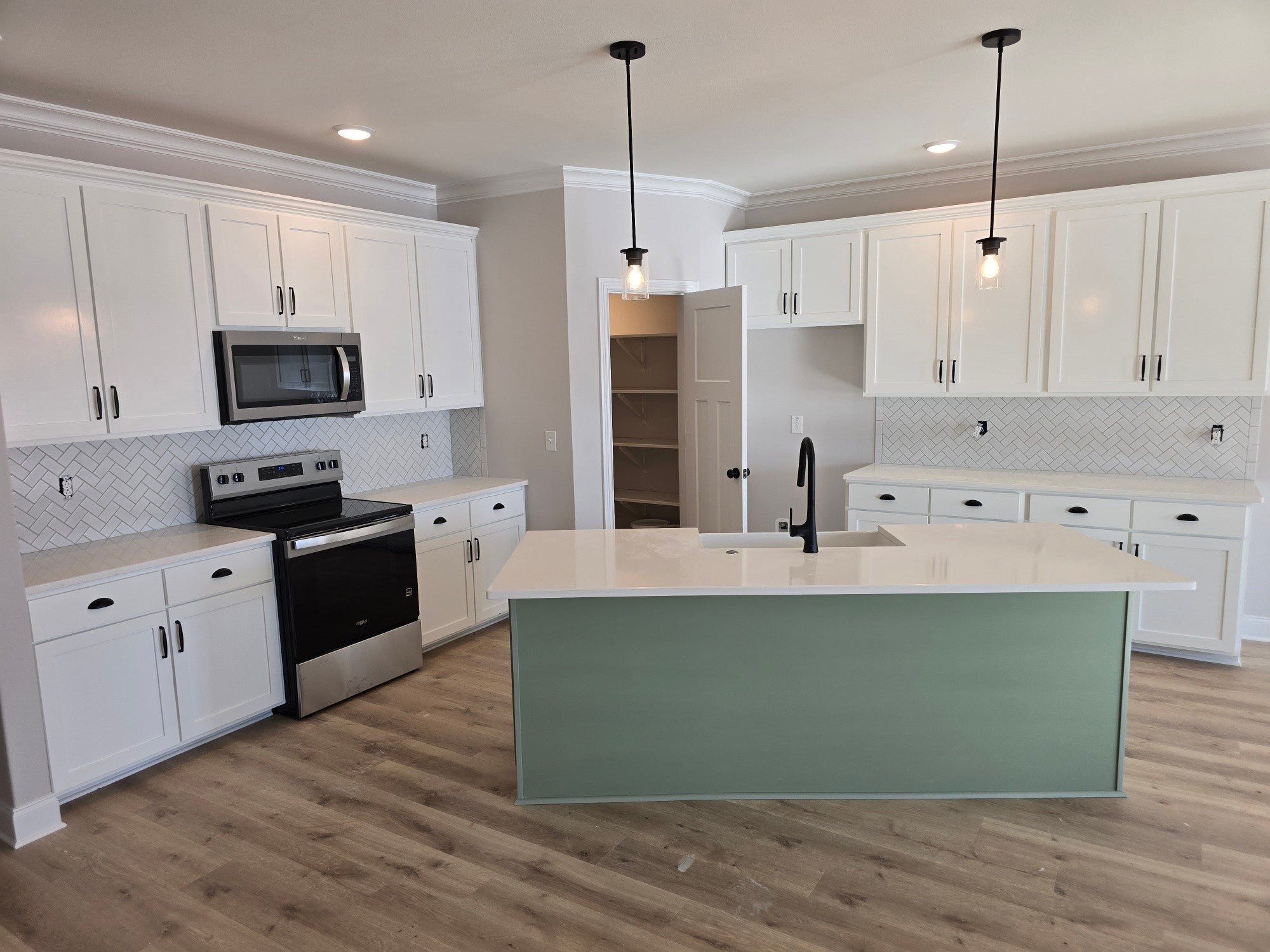 This is truly an amazing home when walking in, there is a beautiful foyer upon entering. LVP in Main living area. Master bedroom down with quest bedroom. Upstairs two bedrooms, bonus room, full bathroom. Huge laundry room. All closets are extremely large. Kitchen with quartz countertops/Island w/built in garbage drawer. Ceramic farm sink. Tiled backsplash.