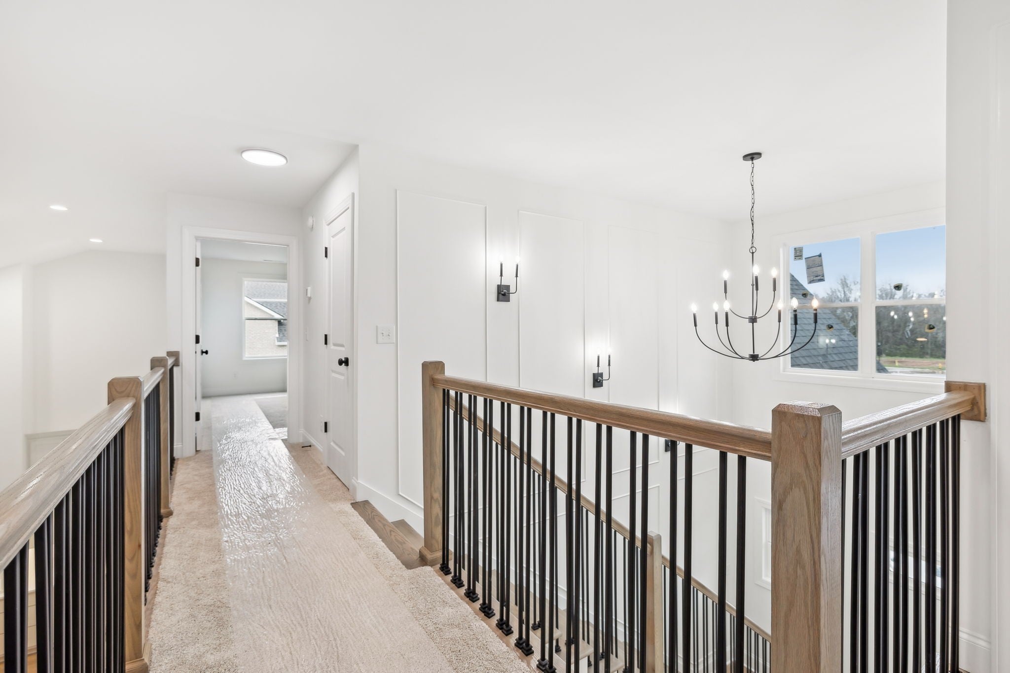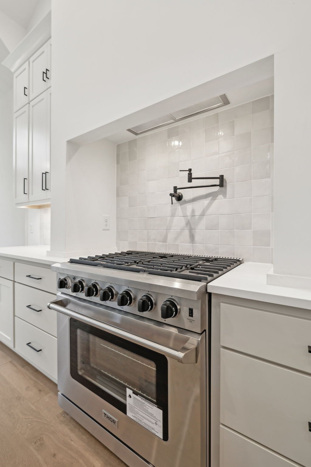 Just 5 minutes from I-840, this beautifully designed home offers just over 2,700 square feet of thoughtfully planned living space and includes a rare 3-car garage. Two bedrooms are conveniently located on the main level, making the layout ideal for everyday living and long-term flexibility. The open-concept living area is accented by 10-foot ceilings and a vaulted dining space that adds architectural interest and natural light. The kitchen is a true standout, featuring a 36-inch, six-burner gas cooktop with a pot filler for added convenience, along with a massive 160-square-foot walk-in pantry complete with built-in cabinetry and countertop workspace—perfect for storage, prep, and organization. The main-level primary suite offers a spa-inspired bathroom with a luxurious wet zone, creating a relaxing retreat at the end of the day. Upstairs, an open catwalk with custom mood lighting adds character, while additional bedrooms also feature mood lighting for a warm, modern ambiance. Additional highlights include an open railing design, a fenced backyard ready for outdoor enjoyment, and a fully floored walk-in attic providing exceptional storage space rarely found in homes of this size. Fiber Internet (1 gig) is included with HOA dues.