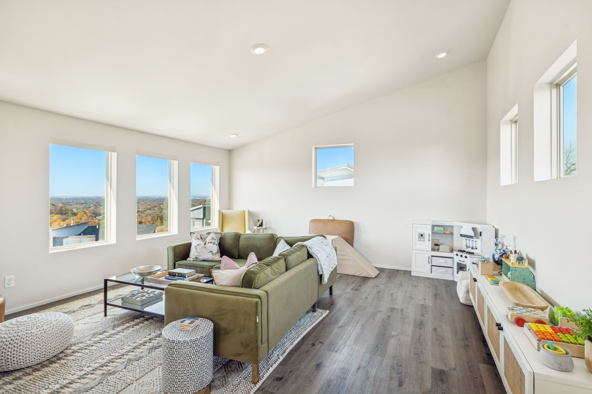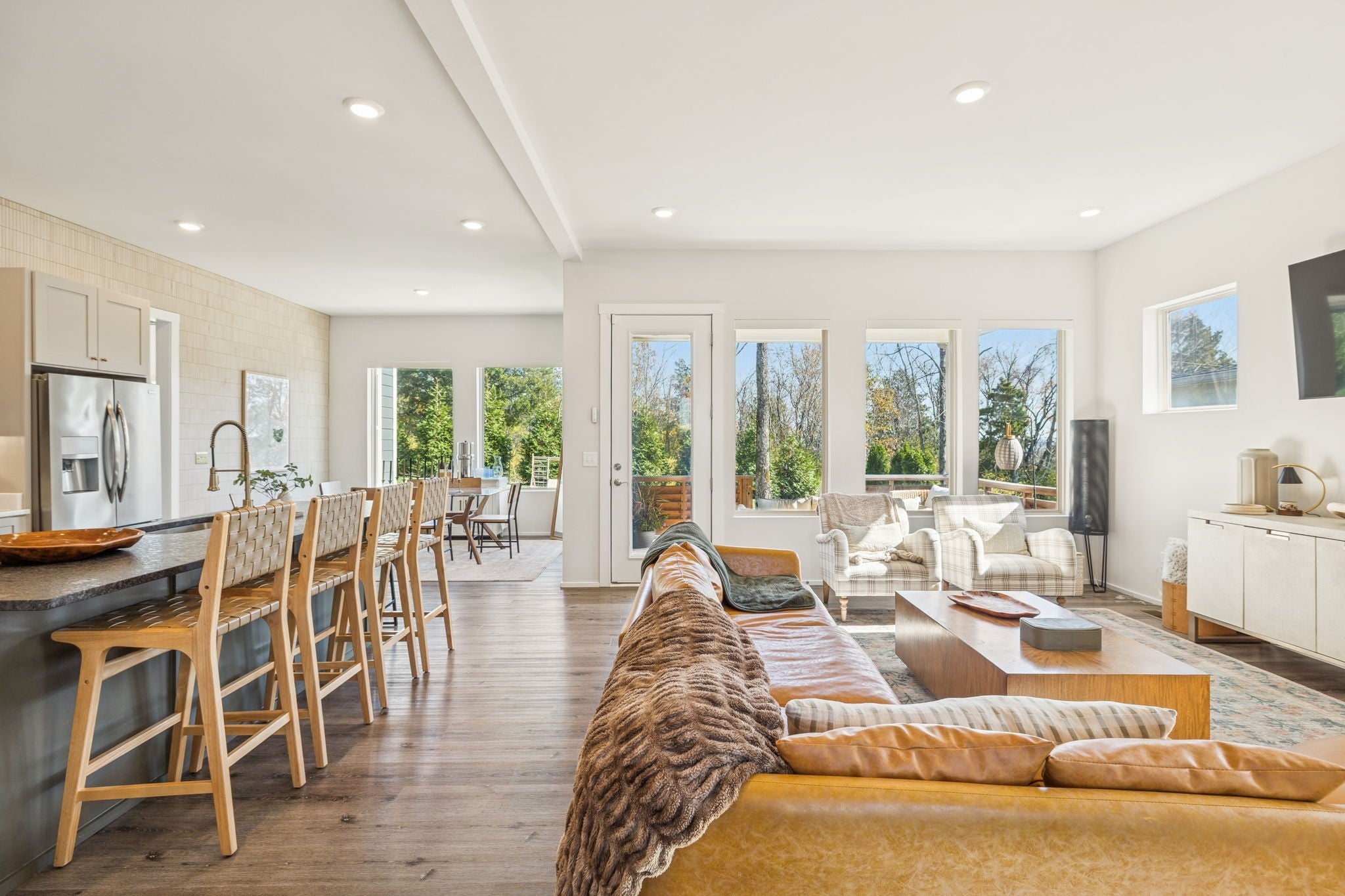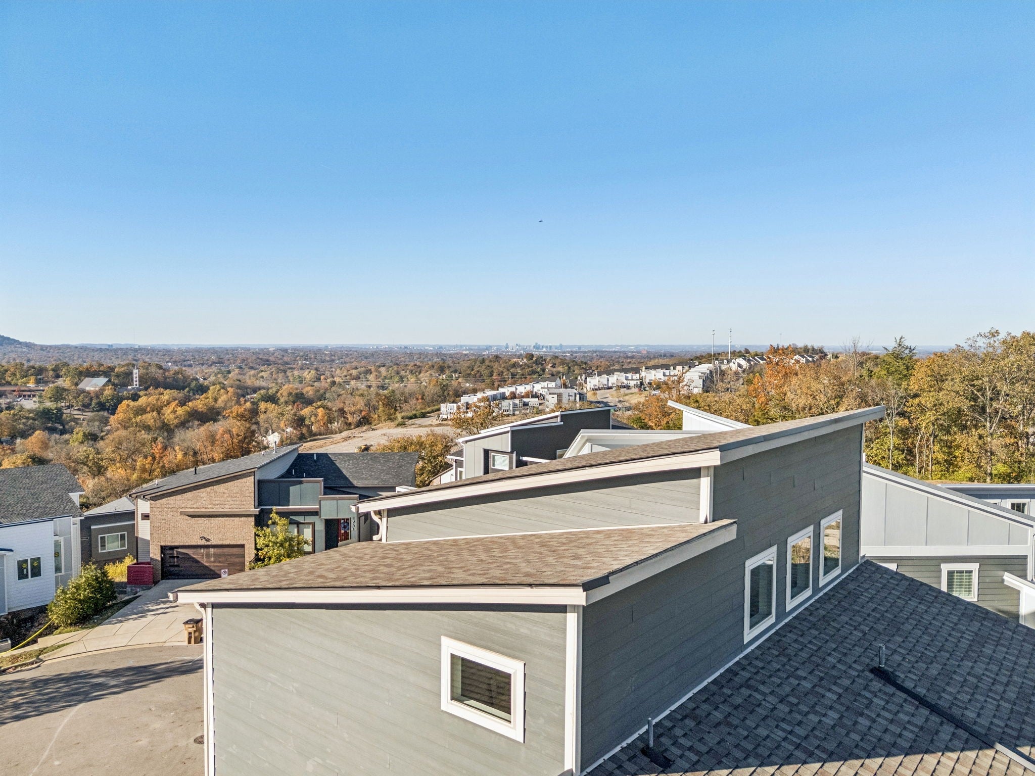 Perched perfectly between Nashville and Williamson County, this home offers a rare balance of connection and escape. Just minutes from Downtown Nashville, Brentwood, and BNA Airport, it feels like a getaway you don’t have to drive to. Every return home feels like an exhale - peaceful, private, and effortless. The setting is unforgettable. From the third floor, the Nashville skyline stretches across the horizon while Brentwood sunsets spill gold through the windows. In the morning, the hills of Nolensville glow just beyond your private backyard, a flagstone patio surrounded by mature trees where coffee tastes a little better and evenings linger a little longer. Inside, the design is equally impressive. Built in 2019, this modern home blends warmth and sophistication with thoughtful upgrades, including a full-height tiled accent wall in the kitchen and dining area, a beautifully retiled primary bath, and custom smart blinds on every window. Natural light fills each space, highlighting clean lines, open flow, and intentional details that make the home feel both curated and comfortable. The main-level primary suite offers calm and convenience, while upstairs, three bedrooms and two full baths provide space for family or guests. The third-floor bonus room is the showstopper, where panoramic skyline views of downtown Nashville create the perfect backdrop for entertaining, relaxing, or simply being inspired. Modern, elevated, and quietly luxurious, this home captures the best of Nashville living with the calm of a private hillside retreat - a place where the skyline meets the hills and convenience feels like serenity. Preferred Lender offering up to 1% credit towards closing costs or rate buy down . Contact Shane Huffman at CrossCountry Mortgage NMLS#1961432 . For more information call 615.260.8806