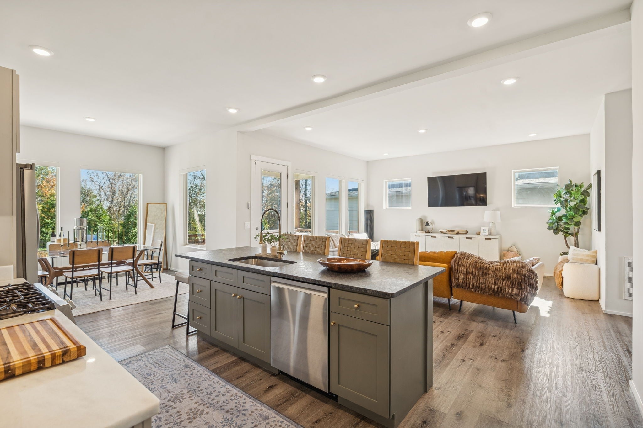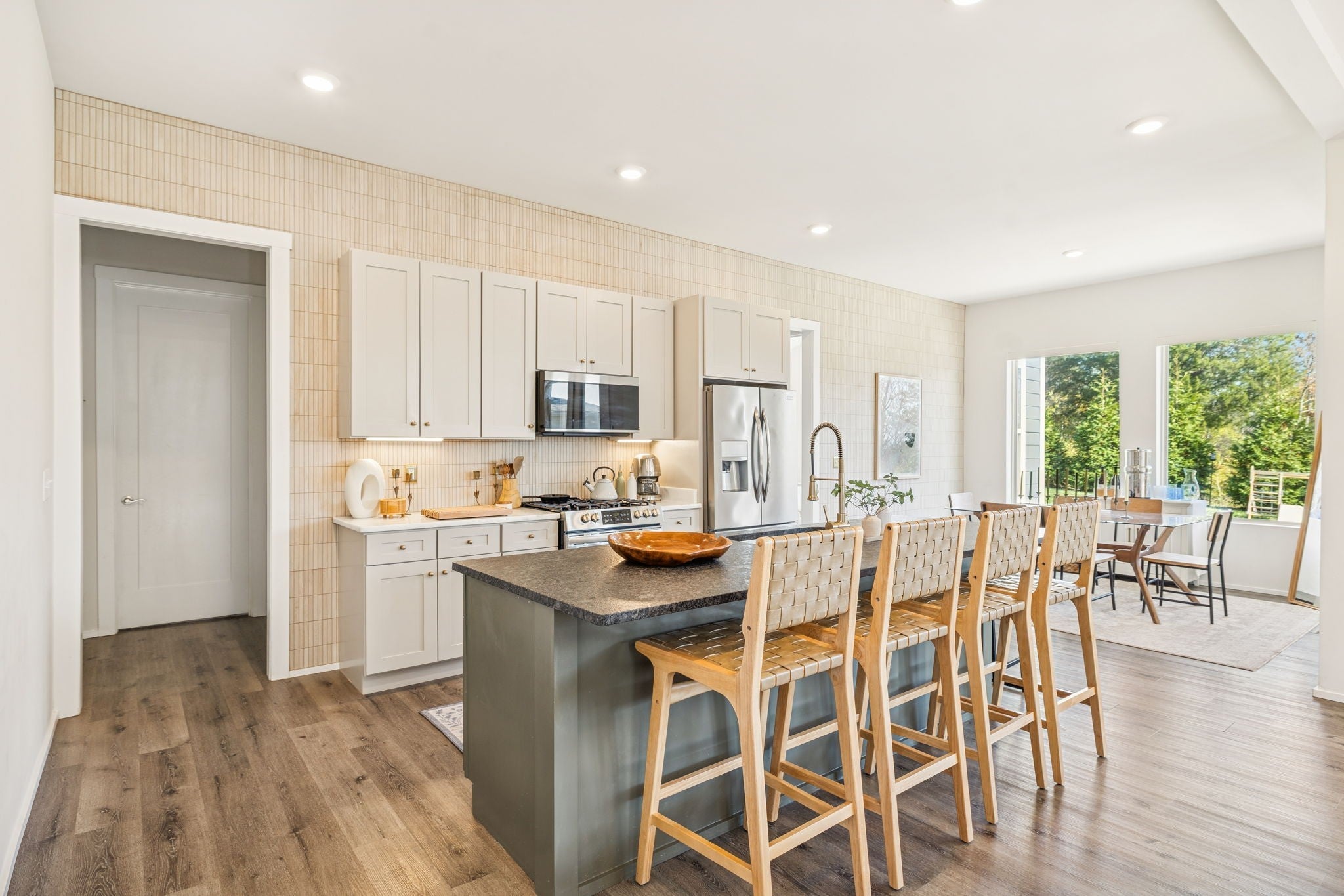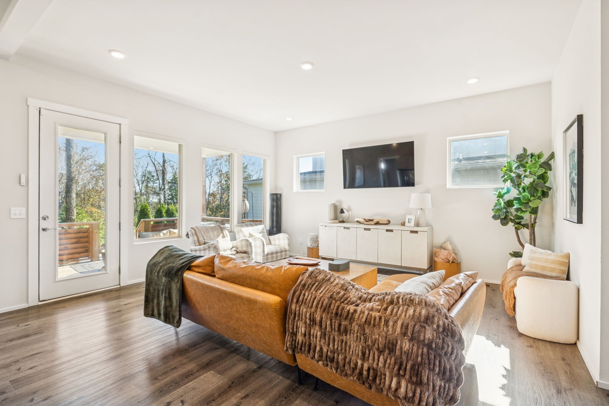 Perched perfectly between Nashville and Williamson County, this home offers a rare balance of connection and escape. Just minutes from Downtown Nashville, Brentwood, and BNA Airport, it feels like a getaway you don’t have to drive to. Every return home feels like an exhale - peaceful, private, and effortless. The setting is unforgettable. From the third floor, the Nashville skyline stretches across the horizon while Brentwood sunsets spill gold through the windows. In the morning, the hills of Nolensville glow just beyond your private backyard, a flagstone patio surrounded by mature trees where coffee tastes a little better and evenings linger a little longer. Inside, the design is equally impressive. Built in 2019, this modern home blends warmth and sophistication with thoughtful upgrades, including a full-height tiled accent wall in the kitchen and dining area, a beautifully retiled primary bath, and custom smart blinds on every window. Natural light fills each space, highlighting clean lines, open flow, and intentional details that make the home feel both curated and comfortable. The main-level primary suite offers calm and convenience, while upstairs, three bedrooms and two full baths provide space for family or guests. The third-floor bonus room is the showstopper, where panoramic skyline views of downtown Nashville create the perfect backdrop for entertaining, relaxing, or simply being inspired. Modern, elevated, and quietly luxurious, this home captures the best of Nashville living with the calm of a private hillside retreat - a place where the skyline meets the hills and convenience feels like serenity. Preferred Lender offering up to 1% credit towards closing costs or rate buy down . Contact Shane Huffman at CrossCountry Mortgage NMLS#1961432 . For more information call 615.260.8806