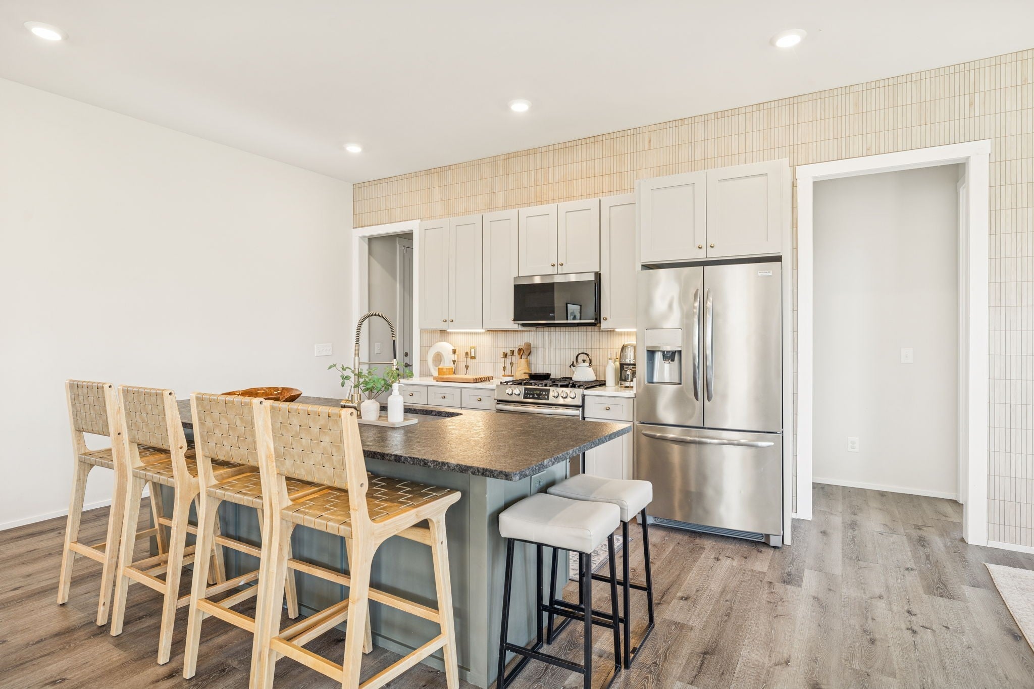 - Built-In Gas Oven, Built-In Gas Range, Dishwasher, Disposal, Microwave, Refrigerator, Stainless Steel Appliance(s)