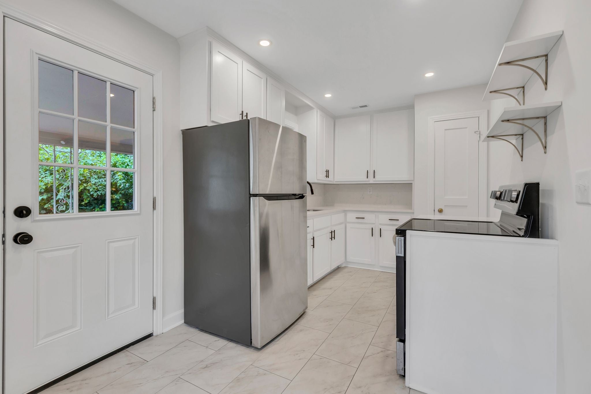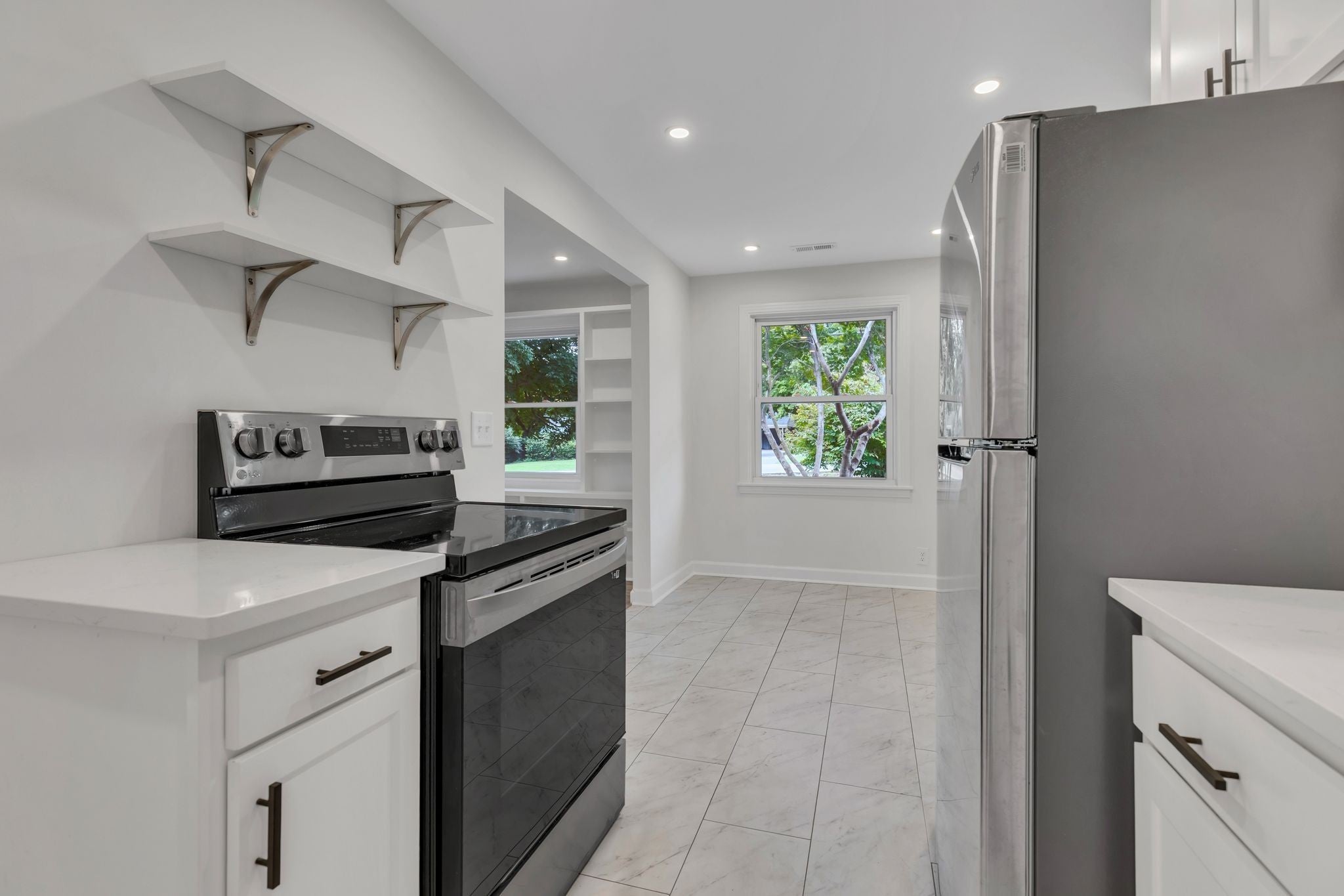 - Electric Range, Dishwasher, Dryer, Refrigerator, Stainless Steel Appliance(s), Washer