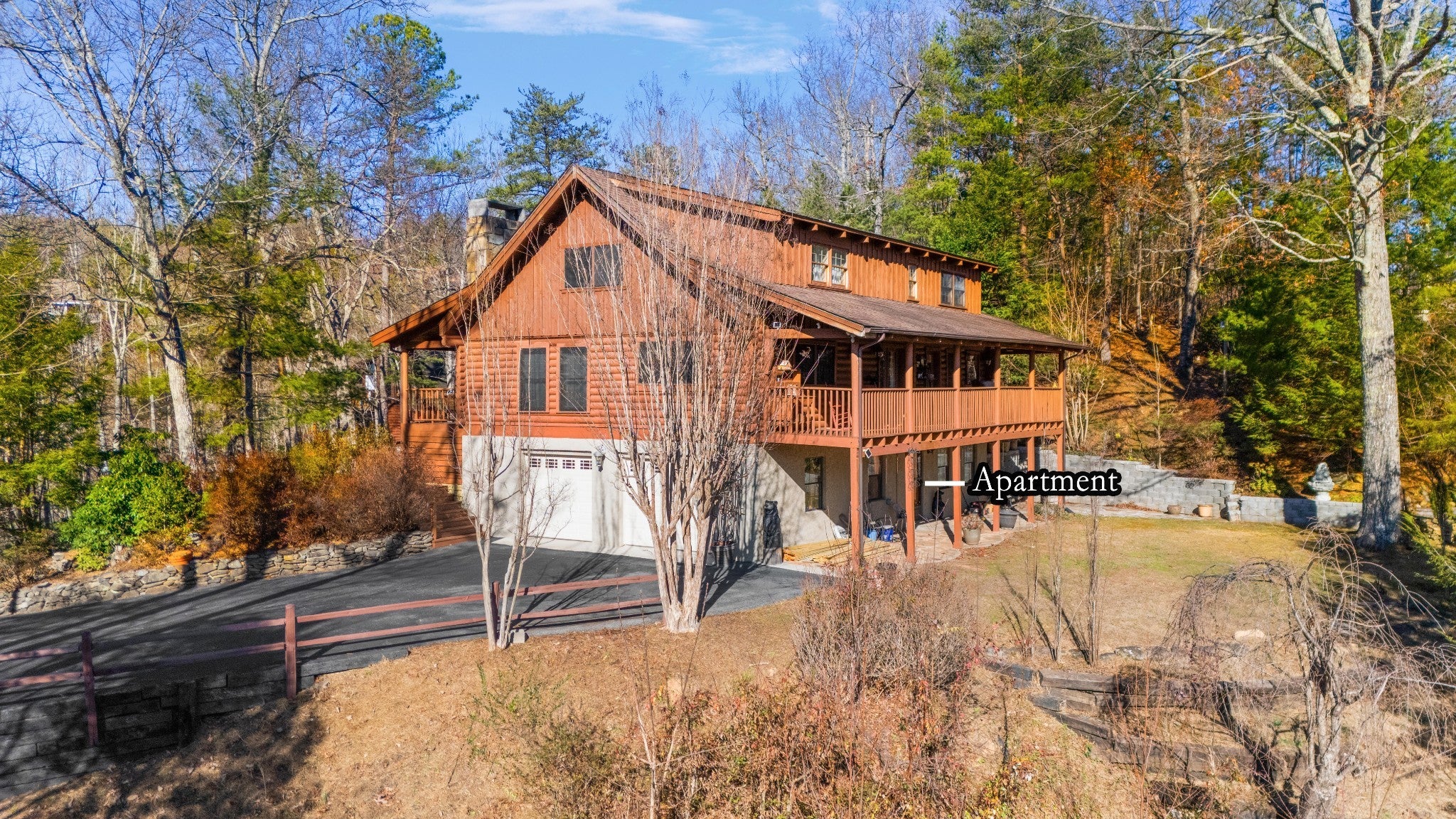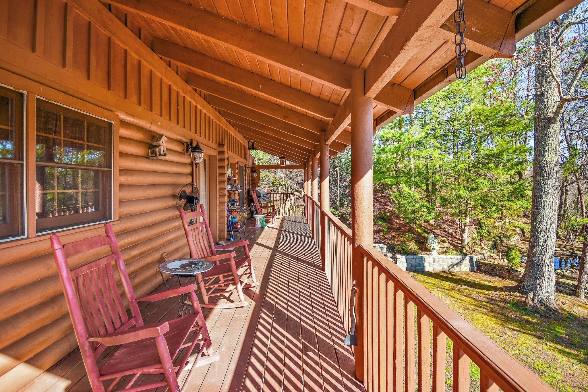 Spectacular Views, Tucked in behind Cobbly Knob and Privately located on dead end road. Open floor plan! Come and experience this well kept Log Home with Covered Front and Rear Porches. 2 Bedrooms on the main level with wood burning fireplace. 2 Bedrooms upstairs. Full basement apartment with separate entrance features 1 bedroom, 1 bath and loads of storage! Approved for STR. Endless Possibilities. Can Be sold furnished. All Kitchen Appliances and washer/dryer stay.