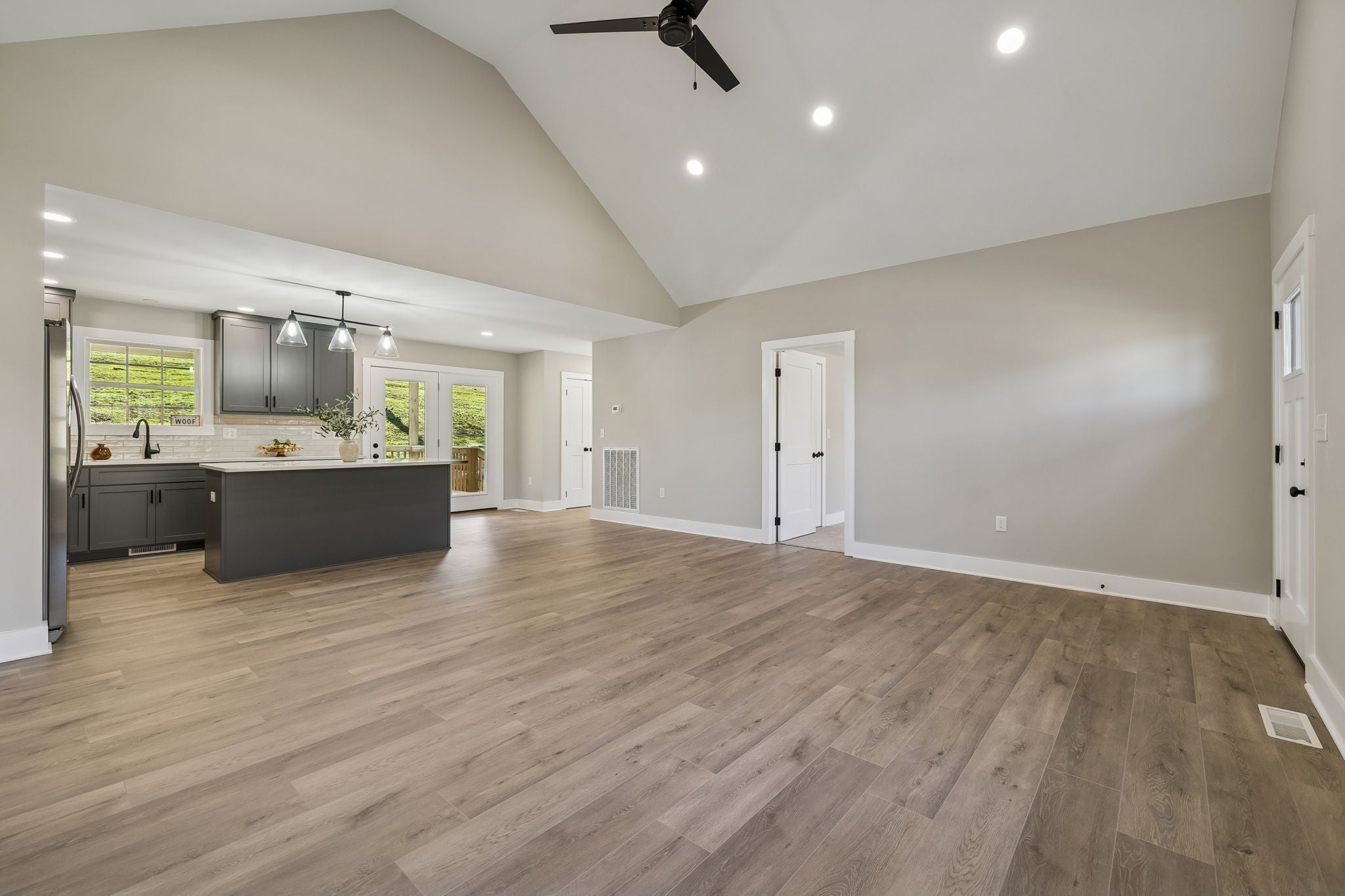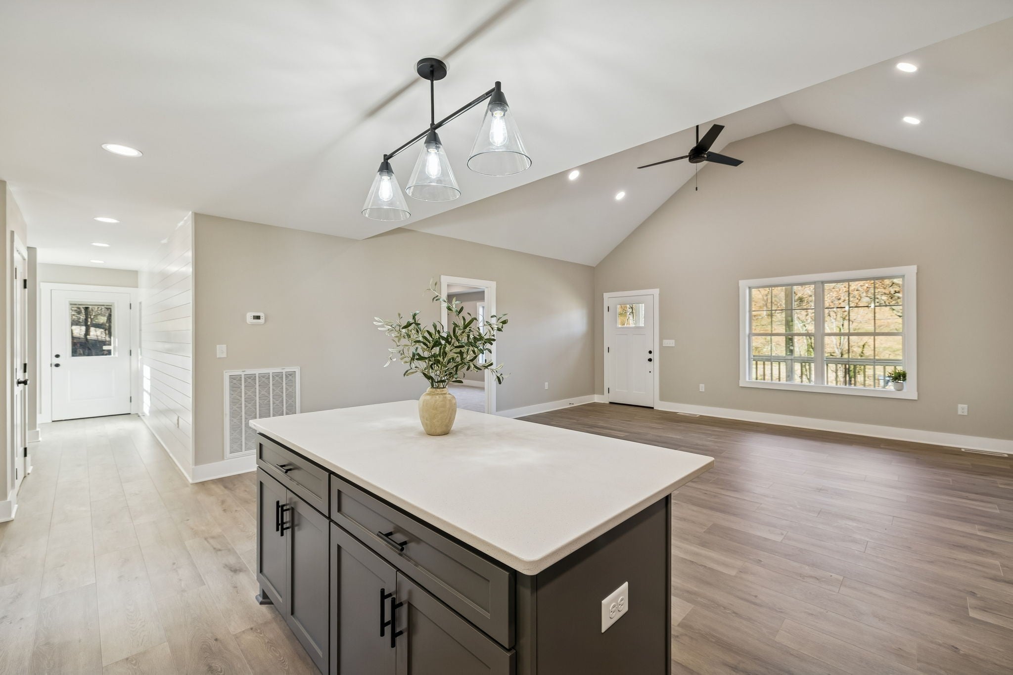 This beautiful 1,400 sq. ft. home is ready for its new family in 2026. Thoughtfully designed with modern style throughout, the home features an open-concept living area with vaulted ceilings and a spacious kitchen highlighted by granite countertops, custom cabinetry, and 42-inch upper cabinets that extend to the ceiling. A large eat-at island and stainless steel appliances make the kitchen ideal for both everyday living and entertaining. The 16x13 primary suite offers a tray ceiling, walk-in closet, and a luxurious custom tile shower in the primary bath. Exterior upgrades include Hardie siding and multiple covered outdoor spaces, including a 24x24 covered concrete carport, 20x12 covered back porch, and a 20x6 covered front porch. A concrete driveway adds both convenience and curb appeal. Located on a low-traffic road in a peaceful country setting, this home sits on a freshly surveyed 1.12-acre lot with scenic rolling hill views. The property is conveniently located less than one mile from Gordonsville city limits and under two miles from I-40 Exit 258, offering the perfect balance of quiet country living with easy access to town.