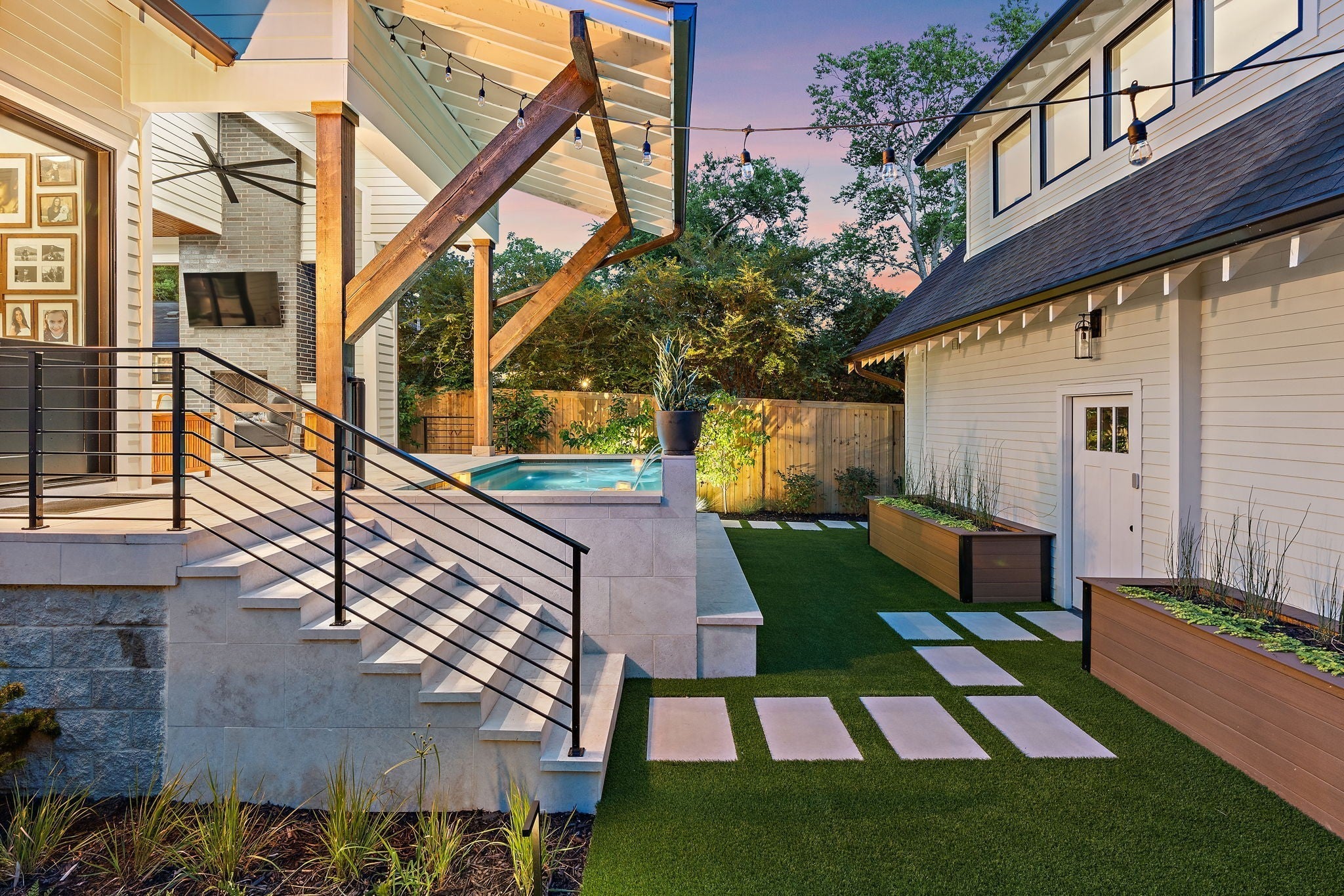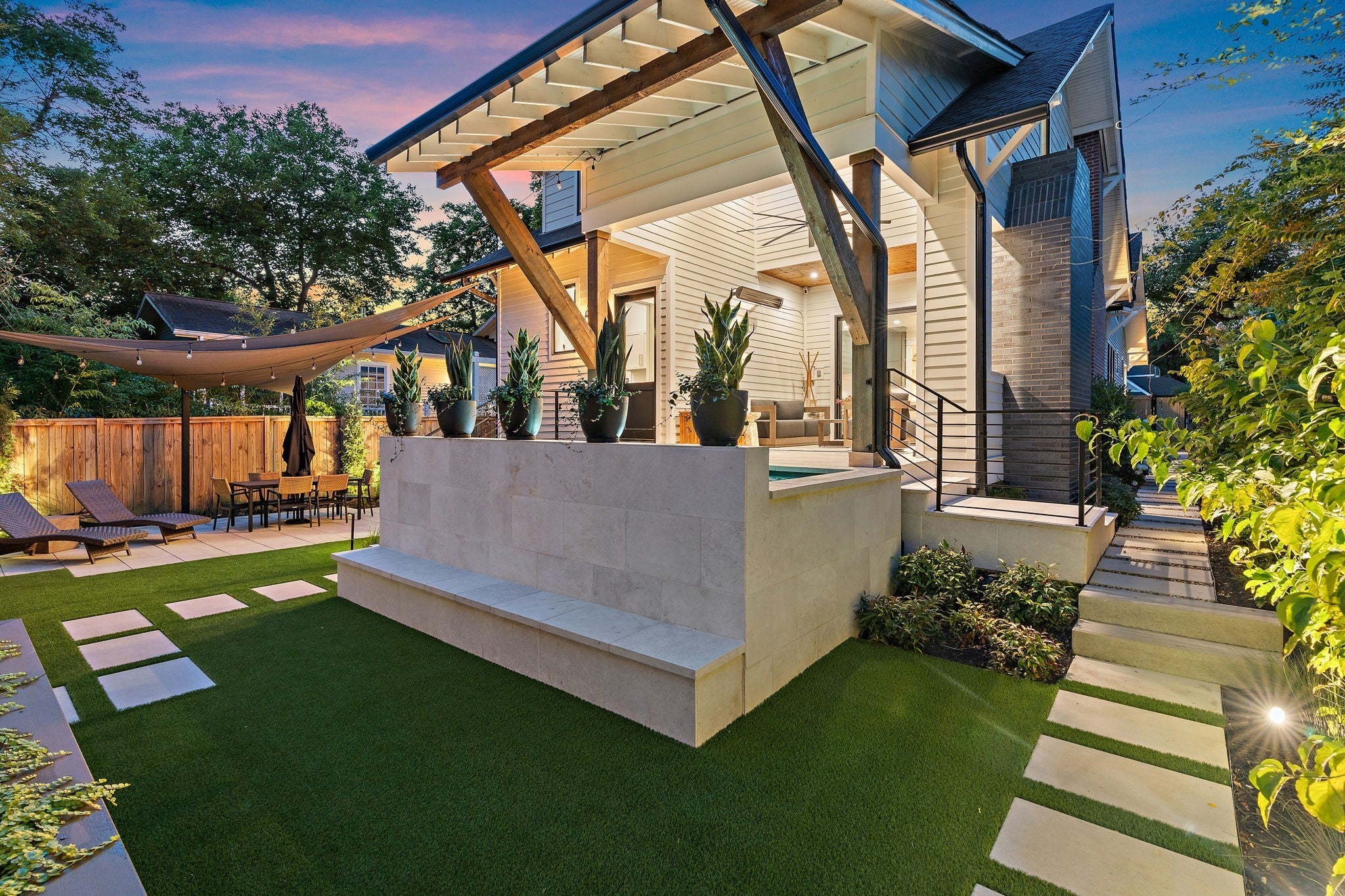 Impeccably renovated 1915 Craftsman in the heart of Belmont Hillsboro / 12 South — the ultimate blend of historic charm and modern luxury. Completely reimagined in 2022, this designer home features high-end finishes and exceptional indoor-outdoor living, including a heated plunge pool—all just steps from the shopping, dining, and coffee scene of 12th Ave South and Hillsboro Village. With over $300,000 invested in outdoor enhancements, the property is thoughtfully designed for both relaxation and entertaining, offering a year-round covered porch with built-in heaters and a gas fireplace, a heated soaking pool with waterfalls and jets, and the option to add a sauna. A marble patio, professionally designed landscaping with a turf lawn, integrated landscape lighting, and new fencing complete this serene, low-maintenance backyard oasis. Inside, the open-concept floor plan is flooded with natural light and designer details — from the dramatic wall of windows framing the floating staircase to the custom chef’s kitchen with oversized island, premium appliances, and floor-to-ceiling cabinetry. Offering two primary suites (one up, one down) plus two additional ensuite bedrooms and a dedicated home office, the layout is ideal for modern living and multi-generational flexibility. The two car garage is finished with a California Closet system for abundant storage, epoxy floors, a half bath, and a refrigerator — perfect for hobbies, entertaining, or extra prep space. Above the garage is a one-bedroom guest house with full bath offering income potential, an in-law suite, or private studio space. Located on a quiet, tree-lined street with ample parking, this home is perfectly positioned between Belmont Blvd, Hillsboro Village, and 12 South. Enjoy walkability, historic charm, luxury amenities, and a move-in-ready lifestyle in one of Nashville’s most desirable neighborhoods.