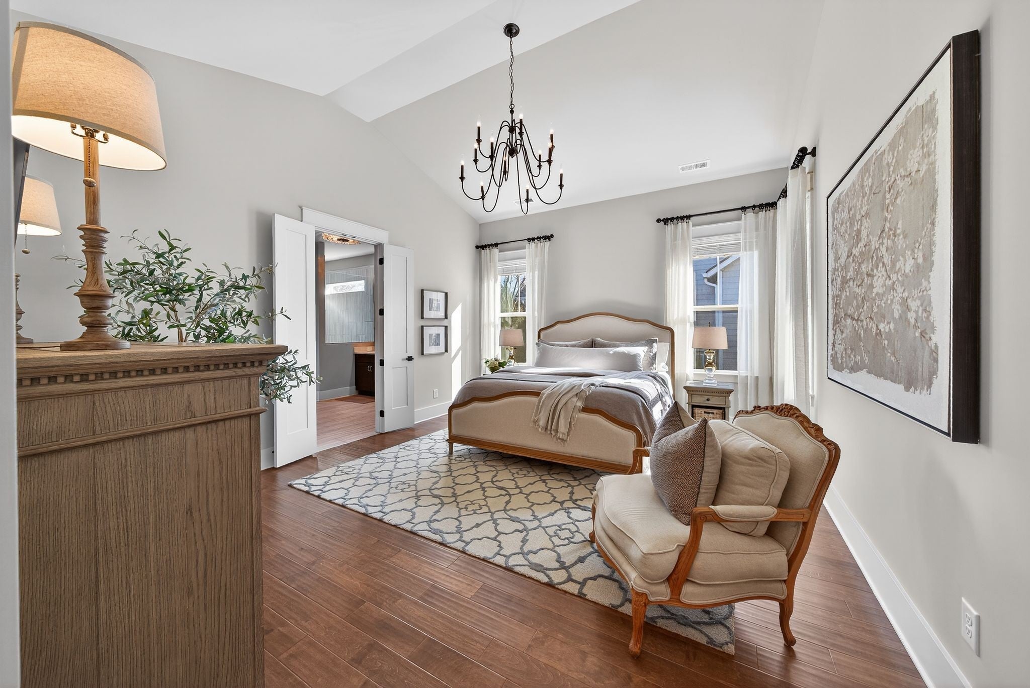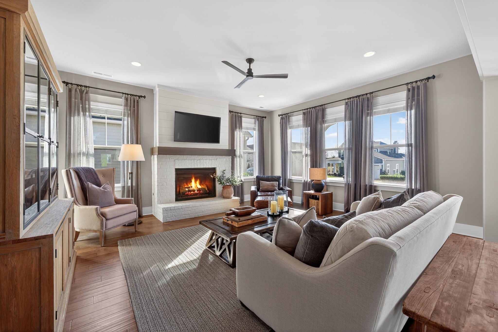 $10,000 Lender incentive! Situated in a desirable, boutique neighborhood in Williamson County, this home has the "Wow" factor showcasing stunning architecture, character, and fine touches throughout: Restoration Hardware, Pottery Barn, Graham's Lighting fixtures- hardware & draperies remain - Highly walkable location- dining, Harvey park, sidewalks and retail! The moment you step inside, you feel at home. High ceilings give a grand impression that you have to see in person. Welcoming entry, wood flooring throughout home, accent walls, living room w/ fireplace, primary and secondary bedroom/office on the main level. Secondary bath offers walk-in tiled shower and designer wall paper. Open designed, spacious kitchen with generous island, leathered granite countertops, wall oven, walk-in pantry, and gas cooktop -overlooking a dedicated dining area. Primary suite with vaulted ceiling. Spa-like Primary bath- extensive quartz dual vanity, freestanding tub, and extended, tiled shower. Floating design staircase leads to thoughtfully laid out upper level. Recreation room (or 5th BR) with walk-in closet and private bath. 2 Additional Bedrooms- Jack-Jill Bath w/ private vanity areas. Exterior features a side "tower" with windows, and friend's entry, tasteful landscaping, lighting, firepit, front porch, and covered entertainer's porch. This home and neighborhood are not "cookie cutter!" Come and see the difference! Zoned for new Amanda North elementary school! *$10,000 Lender Incentive with Hilary Hollingsworth-Modern Mortgage 615-236-6054 for qualified buyers to use for closing costs or rate buy down!