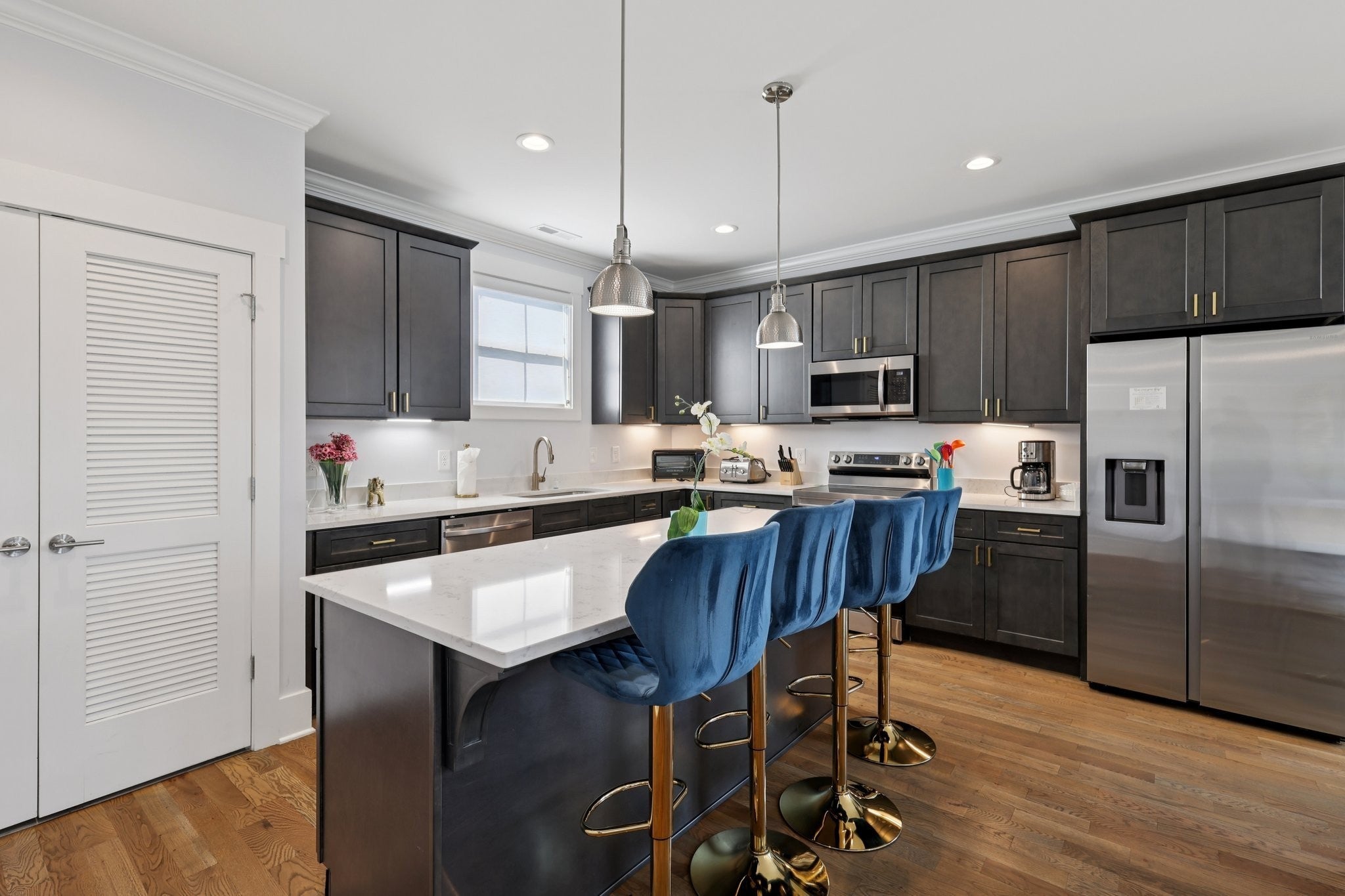 Bonus: NOO STR (Non-Owner-Occupied Short-Term Rentals) are allowed—great opportunity for investors or those seeking rental income! Welcome to this stunning 3-bedroom, 3.5-bathroom townhome that blends sophisticated style with everyday comfort, all just 15 minutes from the heart of downtown Nashville. Inside you will find real hardwood floors throughout the main living spaces, adding warmth and elegance. The sleek, modern kitchen is a showstopper, featuring quartz countertops, contemporary cabinetry, and an open layout perfect for entertaining. Flooded with natural light from large windows, the living and dining areas feel spacious and inviting. Each bedroom is generously sized. The spa-like primary bathroom is your personal retreat, complete with luxurious finishes and a serene ambiance. For outdoor living, enjoy your own private rooftop deck, ideal for morning coffee, evening cocktails, or taking in the city skyline. Whether you're a first-time buyer, frequent traveler, or investor, this move-in-ready townhome offers modern living in a prime location. Don’t miss this opportunity to own a piece of Nashville just minutes from the action.