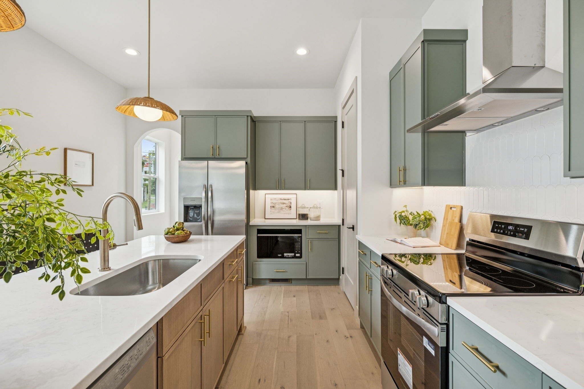 - Built-In Electric Oven, Built-In Electric Range, Dishwasher, Disposal, Microwave, Refrigerator, Stainless Steel Appliance(s)