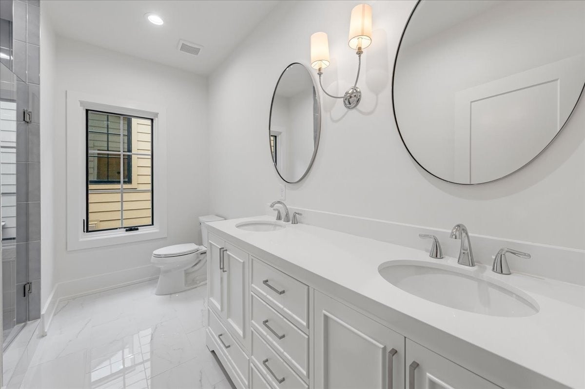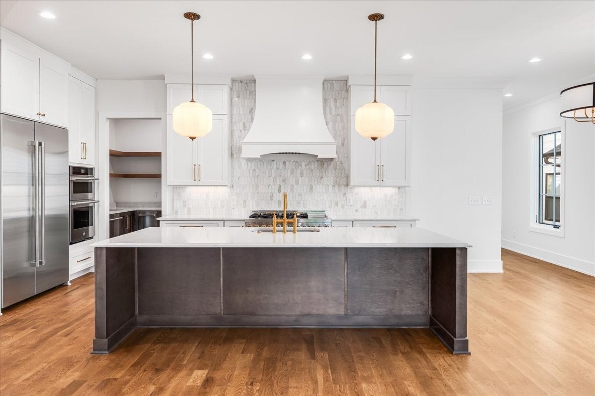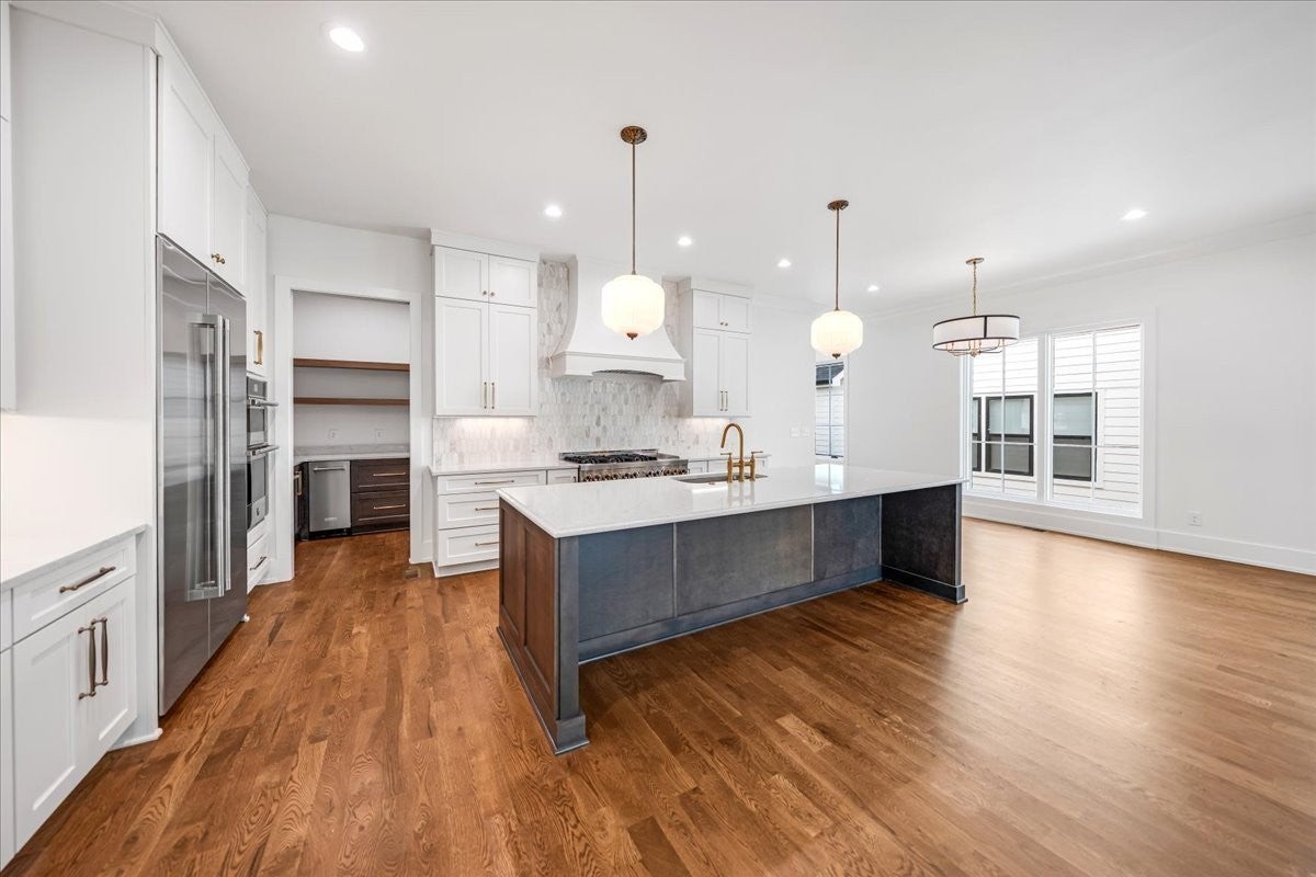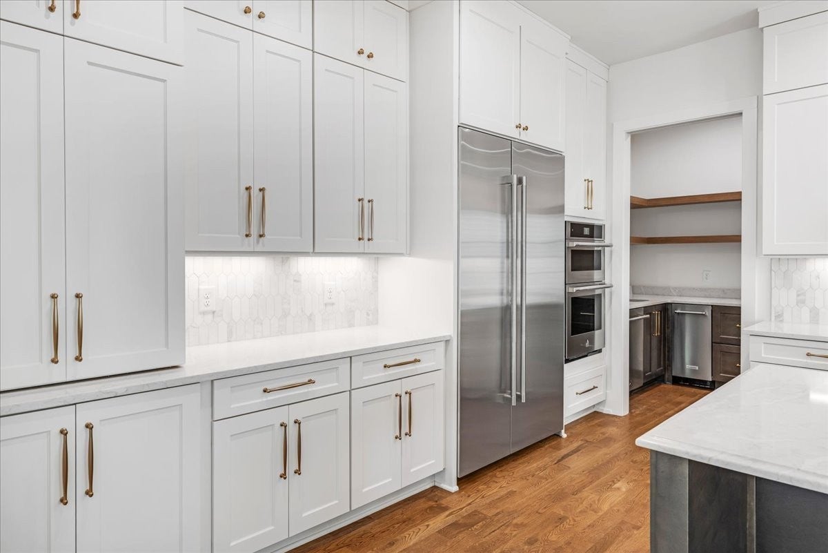 Lovely NEW build in GREAT location! Spacious floor plan w/high ceilings, hardwood flrs & treetop views! Primary on main level & 3BR suites up. Top of the line appliances (JennAir) gas stove w/dbl oven, dw, wall oven, microwave & built-in side/side refrigerator. Scullery w/ice maker & add'l dw & lots of space. Walk straight out to backyard/outdoor space from main level. 2-car garage. Don't miss this one in Green HIlls/12South area! Stiltz LIFT installed in Unit A that you can see...
