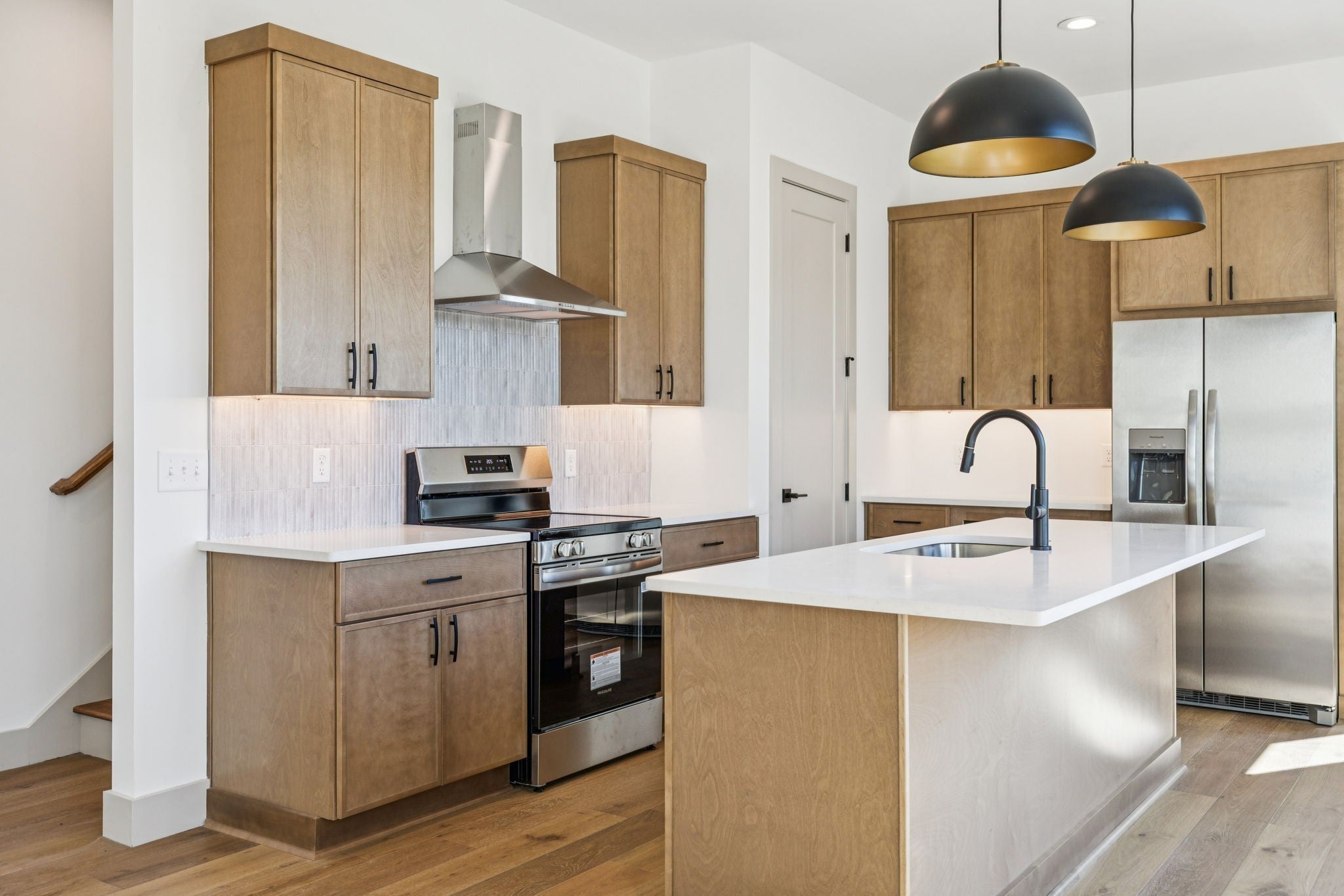 - Built-In Electric Oven, Built-In Electric Range, Dishwasher, Disposal, Microwave, Refrigerator, Stainless Steel Appliance(s)