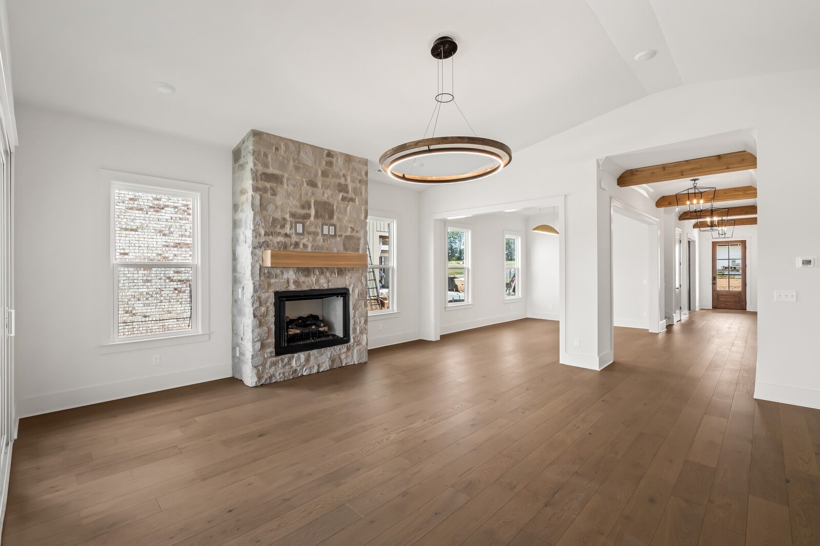 ASK ABOUT OUR CURRENT INCENTIVES - FLEX CASH!! The LUXURY Collection by Dream Finders Homes in Fountain View. The Nottingham is a favorite. Welcome to your dream home in a vibrant community offering exceptional amenities, including a resort-style pool, pickleball courts, on-site retail, and dining options. This beautifully designed 4-bedroom, 3.5-bath home features an ideal layout with most of the living space thoughtfully situated on the first floor. Main Level Highlights: Private home office plus a flexible formal dining room or sitting room Spacious family room with vaulted ceiling, cozy gas fireplace, and a wall of glass with triple sliding doors opening to the outdoor covered patio with its own gas fireplace—perfect for indoor/outdoor living Gourmet kitchen with an oversized walk-in pantry and abundant cabinetry Primary suite retreat with spa-like bath, free-standing soaking tub, and his & hers vanities. Second Floor Features: Open loft/bonus space, ideal for a media room, play area, or additional lounge Three generously sized bedrooms with two full bathrooms, offering plenty of space for family and guests This home blends luxury and function with high-end finishes, abundant natural light, and spaces designed for both everyday living and entertaining. Located in one of the area’s most desirable communities in Thompson's Station, Williamson County. You’ll enjoy not only the beautiful home itself but also a lifestyle filled with recreation, convenience, and connection. Photos are stock photo and not of exact home. Ask about our amazing incentives. Lot 76