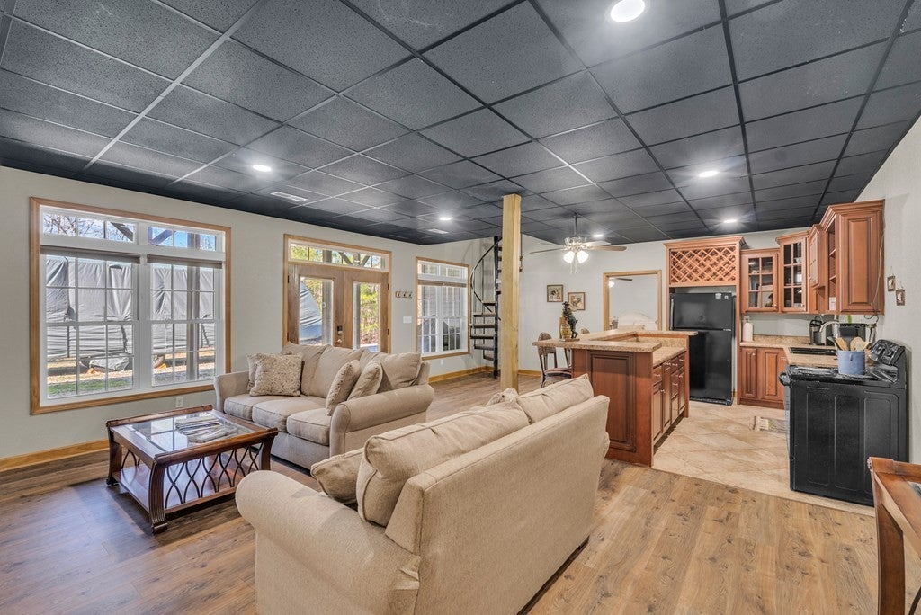 Custom-built home on 8.8 wooded acres in Cumberland Cove offering privacy, space, and versatility. This 5-bedroom, 4.5-bath home features 4,396 sq ft with hardwood floors, solid wood doors, granite countertops, stainless appliances, and a floor-to-ceiling gas fireplace. Two main-level primary suites plus a formal dining room and dedicated home office provide flexible living options. The finished walk-out basement includes its own driveway, entrance, kitchen, bedroom, full bath, and bonus space—ideal for guests, multigenerational living, or potential rental use. Enjoy a peaceful spring-fed pond, about 3 cleared acres suitable for animals, a wired and insulated 12x16 shed, central vacuum, security system, generator, and newer HVAC. A rare blend of acreage, upgrades, and functionality in a scenic Tennessee setting.