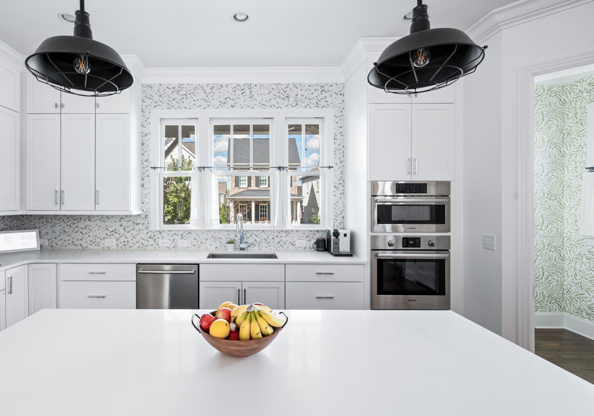 - Built-In Electric Oven, Cooktop, Dishwasher, Disposal, Microwave, Refrigerator, Stainless Steel Appliance(s)