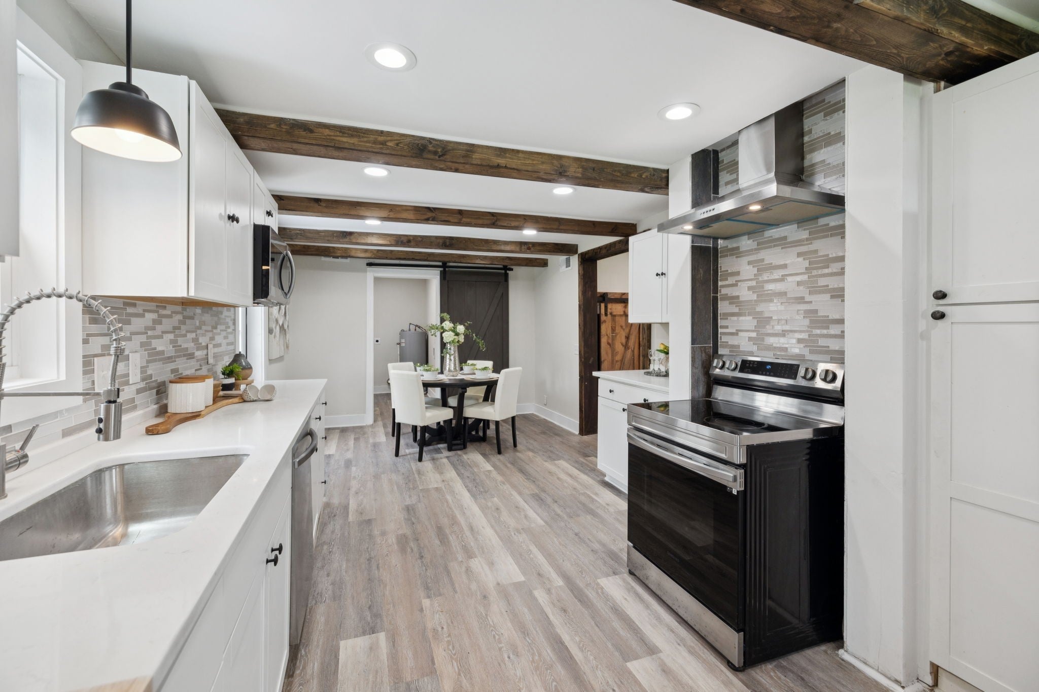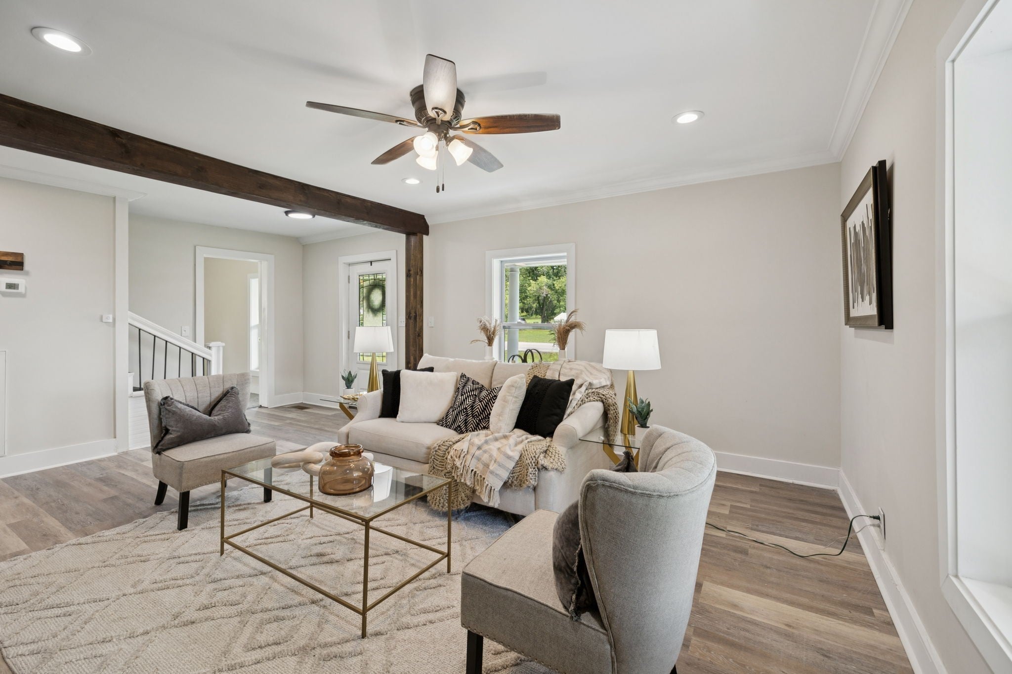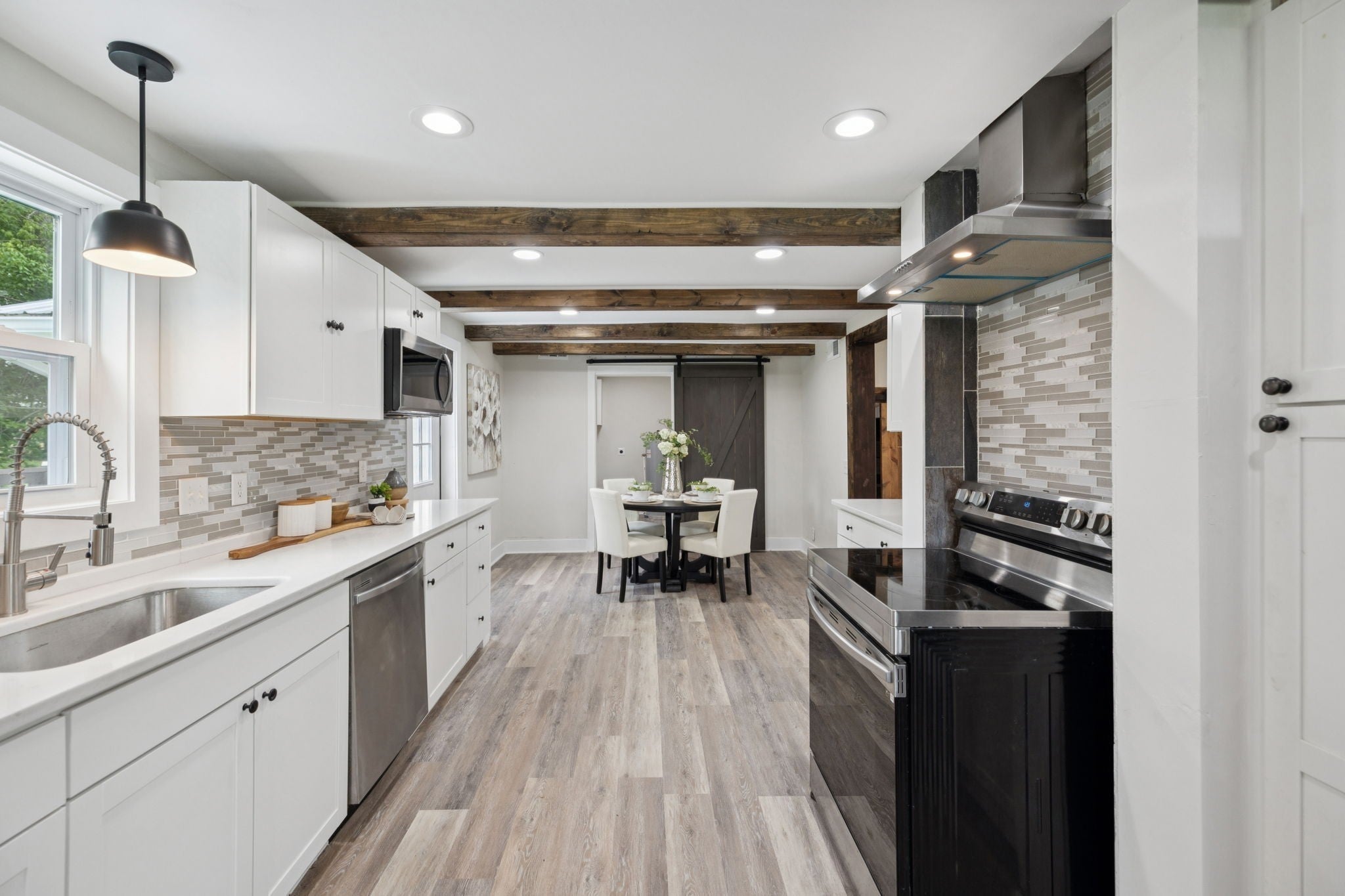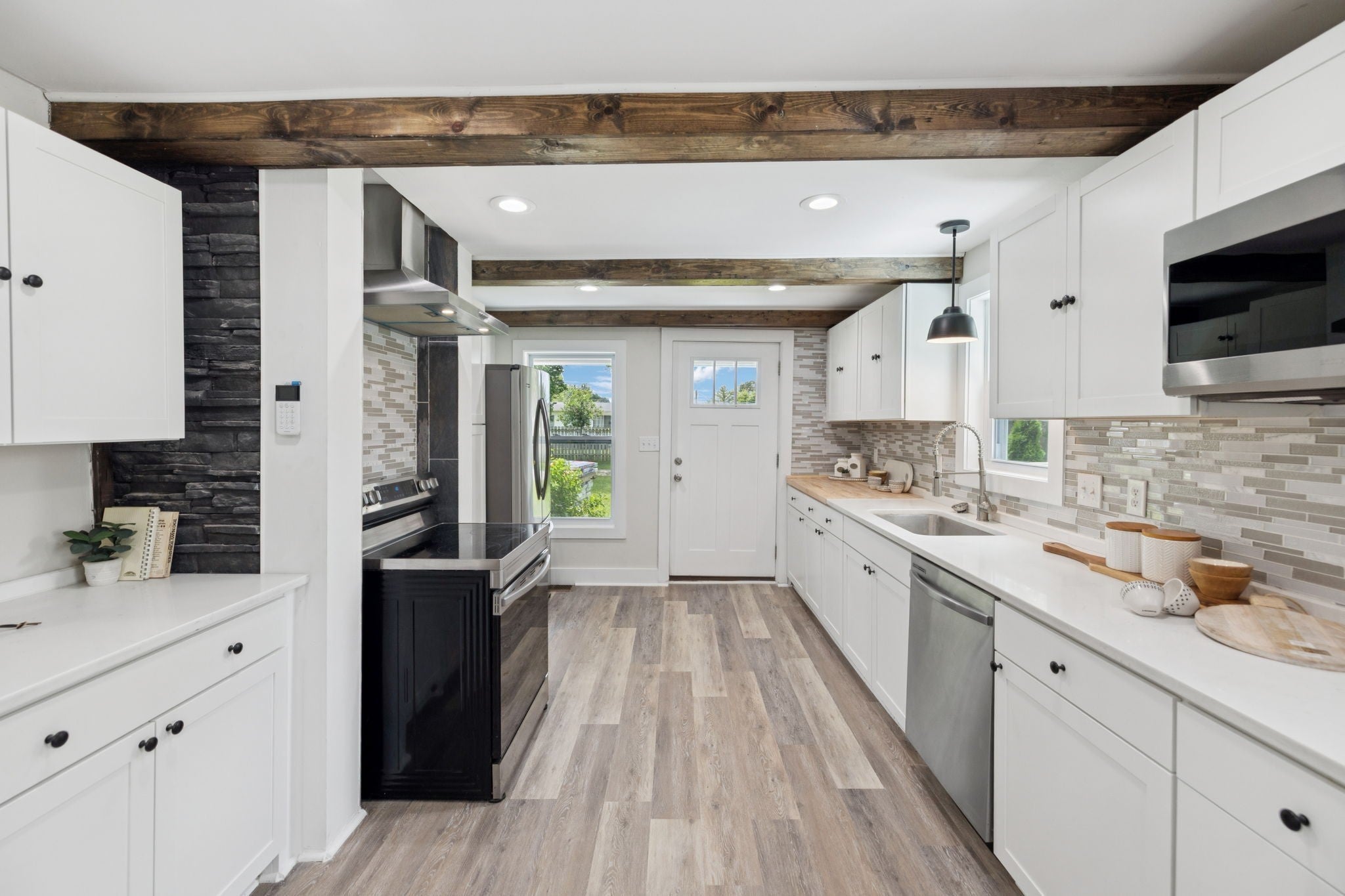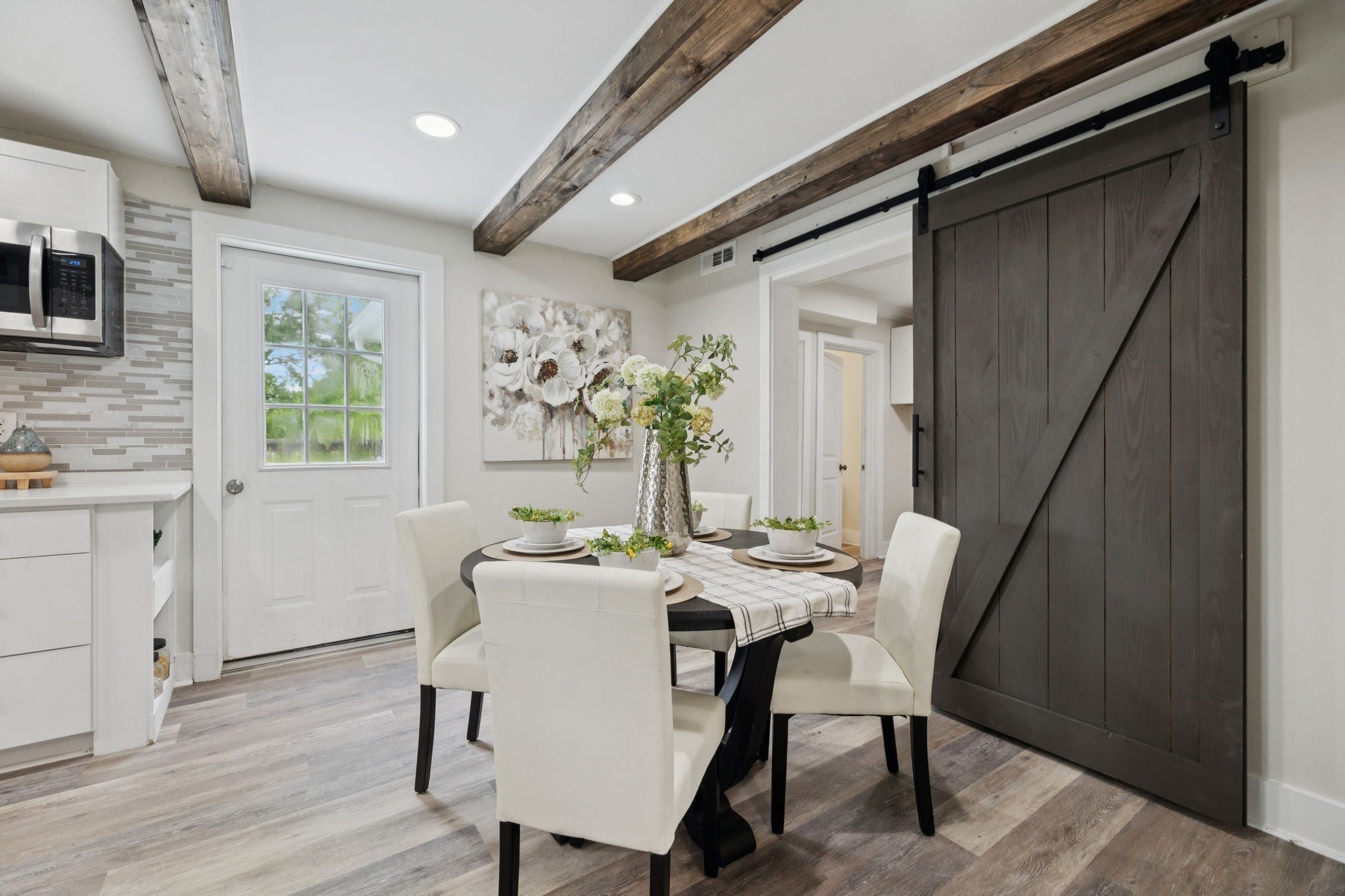 Tucked back in a peaceful country setting, this charming home blends vintage-inspired character with smart, functional updates. Sitting on a spacious lot with mature trees and room to breathe, it offers the serenity of rural life with easy access to both Manchester/I-24 and Downtown McMinnville. The wraparound porch welcomes you in, while inside you'll find thoughtful updates throughout: new LVP flooring, fresh paint, new cabinets, stainless steel appliances, wooden beams, and hard surface countertops. The redesigned main floor layout includes a cozy living room with a fireplace, an updated kitchen, and a flexible office or guest room with a closet. The primary bedroom is also on the main level and includes its own half bath. Upstairs, two bedrooms share a full bath, along with a bright window-lined flex space that offers endless potential: studio, reading nook, crafting corner, or quiet lounge. A large walk-in closet/room adds even more practical storage to the space. Outside, enjoy evenings on the large back deck or mornings on the front porch with a view of the open yard. The lot feels private and open, with space for a garden, pets, or just enjoying the fresh air. A brand new roof means one less thing to worry about. Fully renovated and move-in ready, this home has all the charm and updates of a modern country escape.