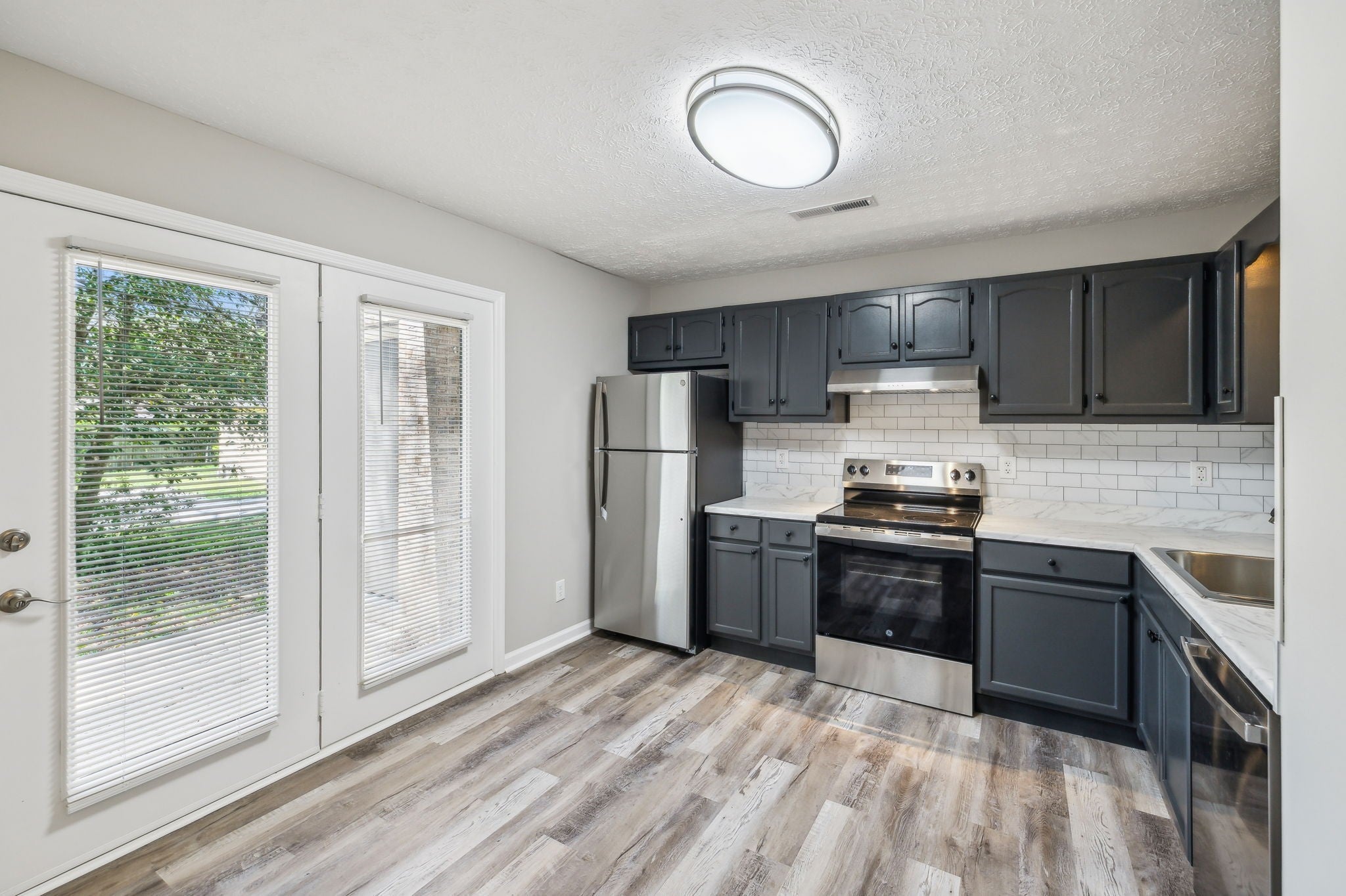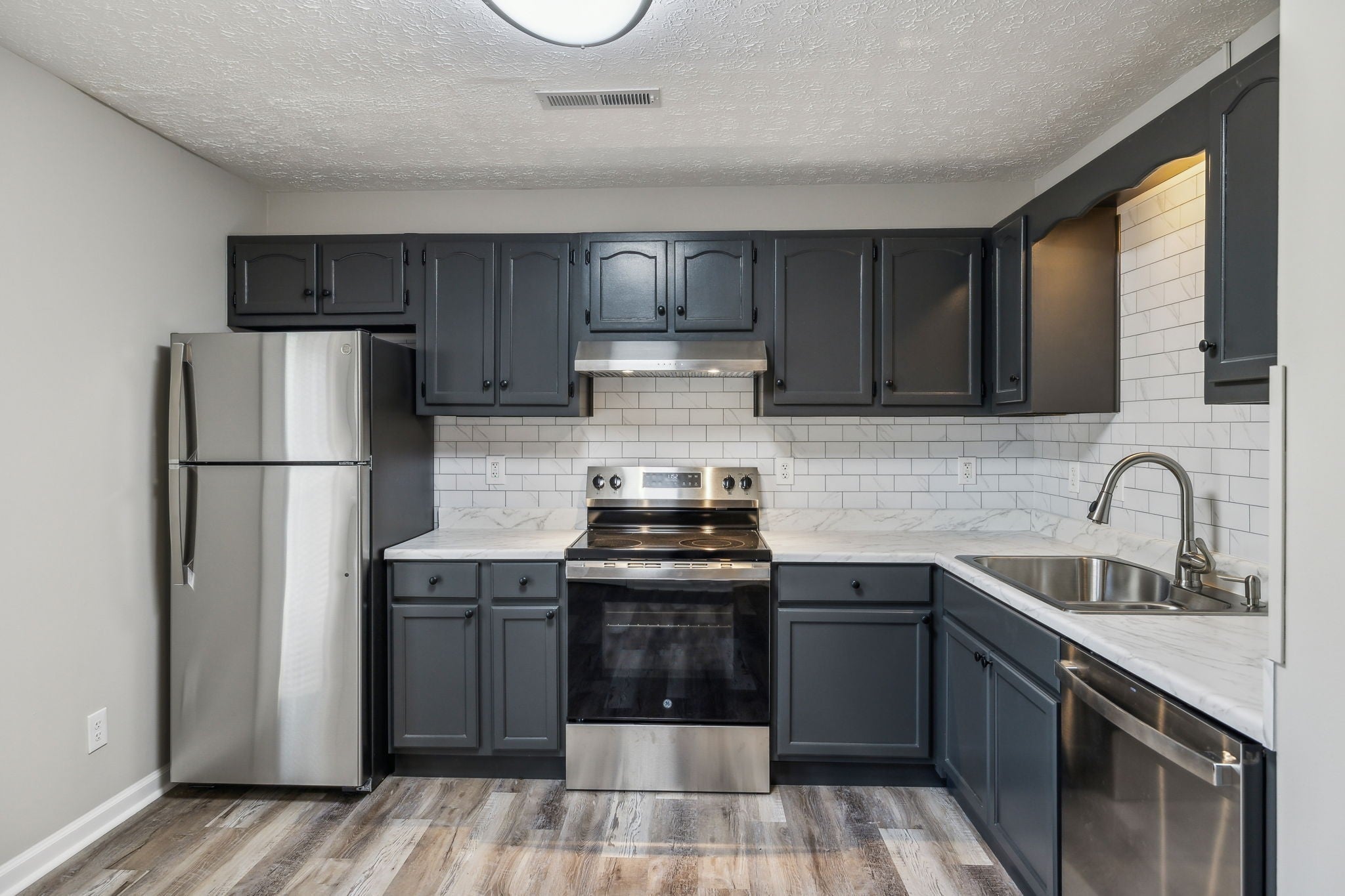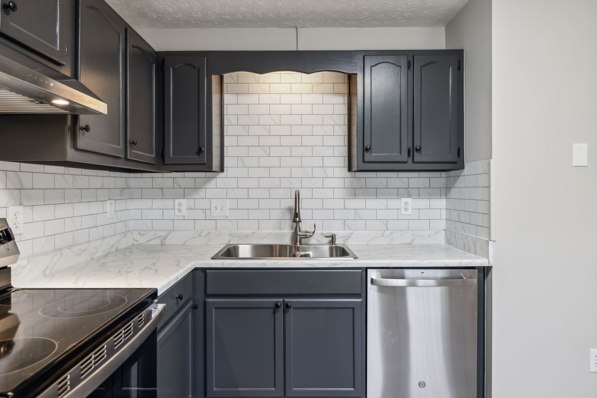 - Electric Oven, Electric Range, Dishwasher, Microwave, Refrigerator, Stainless Steel Appliance(s)