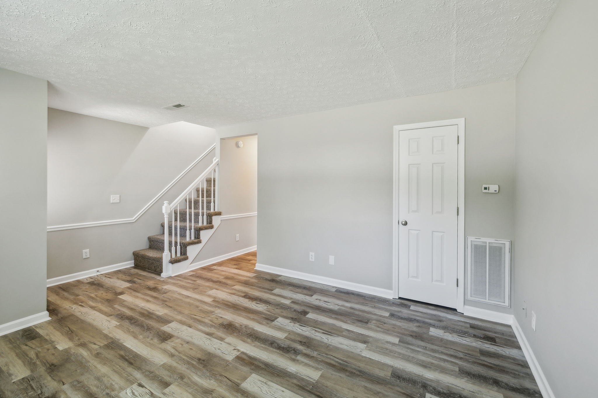 Brand new stainless steel appliances just installed and a brand new HVAC system is being installed for the new owner. Welcome to Willow Oak Place Unit B, a 2-bedroom, 1.5-bath townhome with a smart layout and low-maintenance features. The kitchen includes a refrigerator, dishwasher, and stove. LVP flooring runs throughout the main level, and the upstairs bedrooms are carpeted for comfort. The laundry room is conveniently located downstairs. Out back, you’ll find a private patio and attached storage room. Two parking spots are included, and the HOA takes care of all exterior and grounds maintenance.