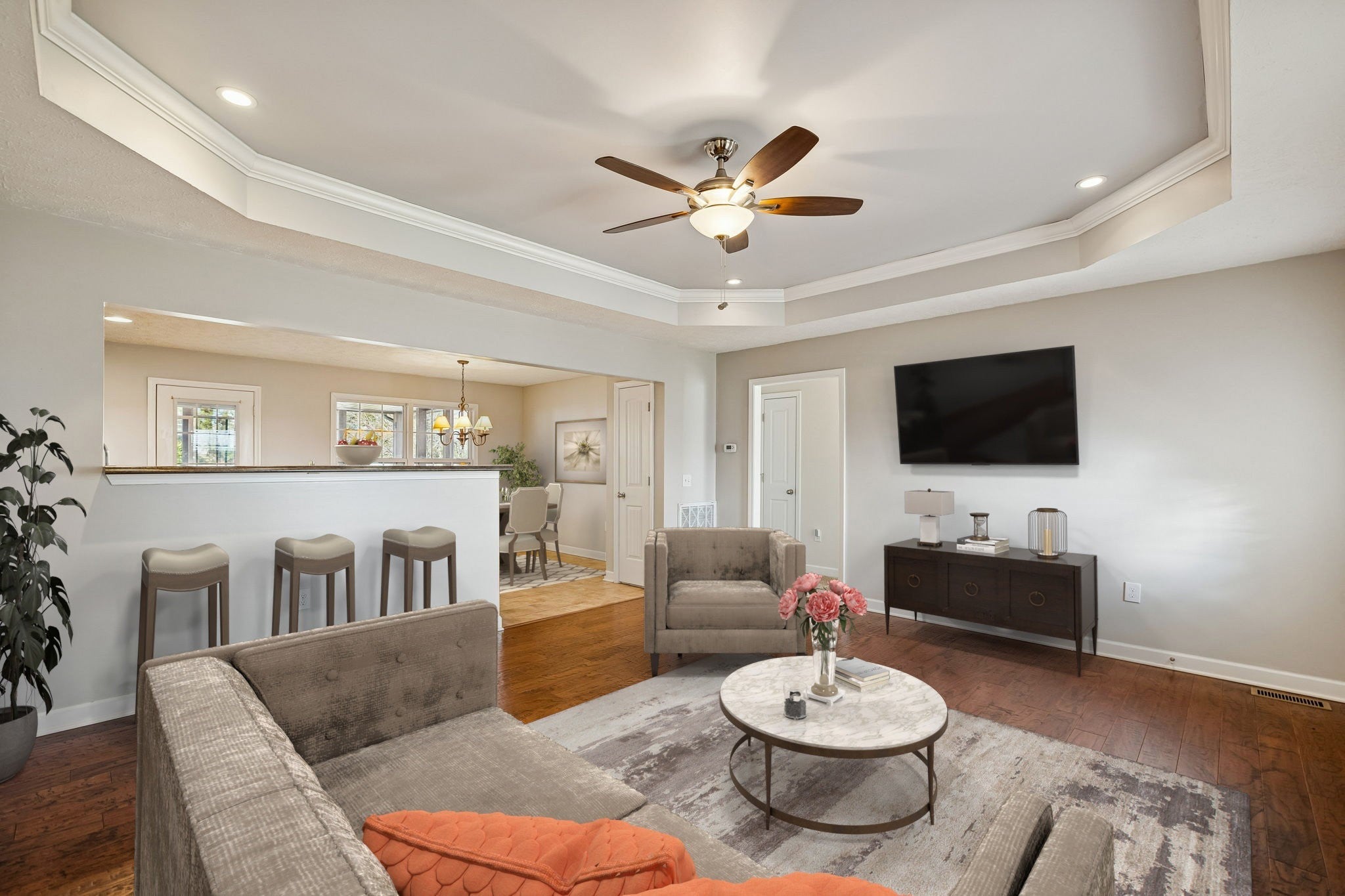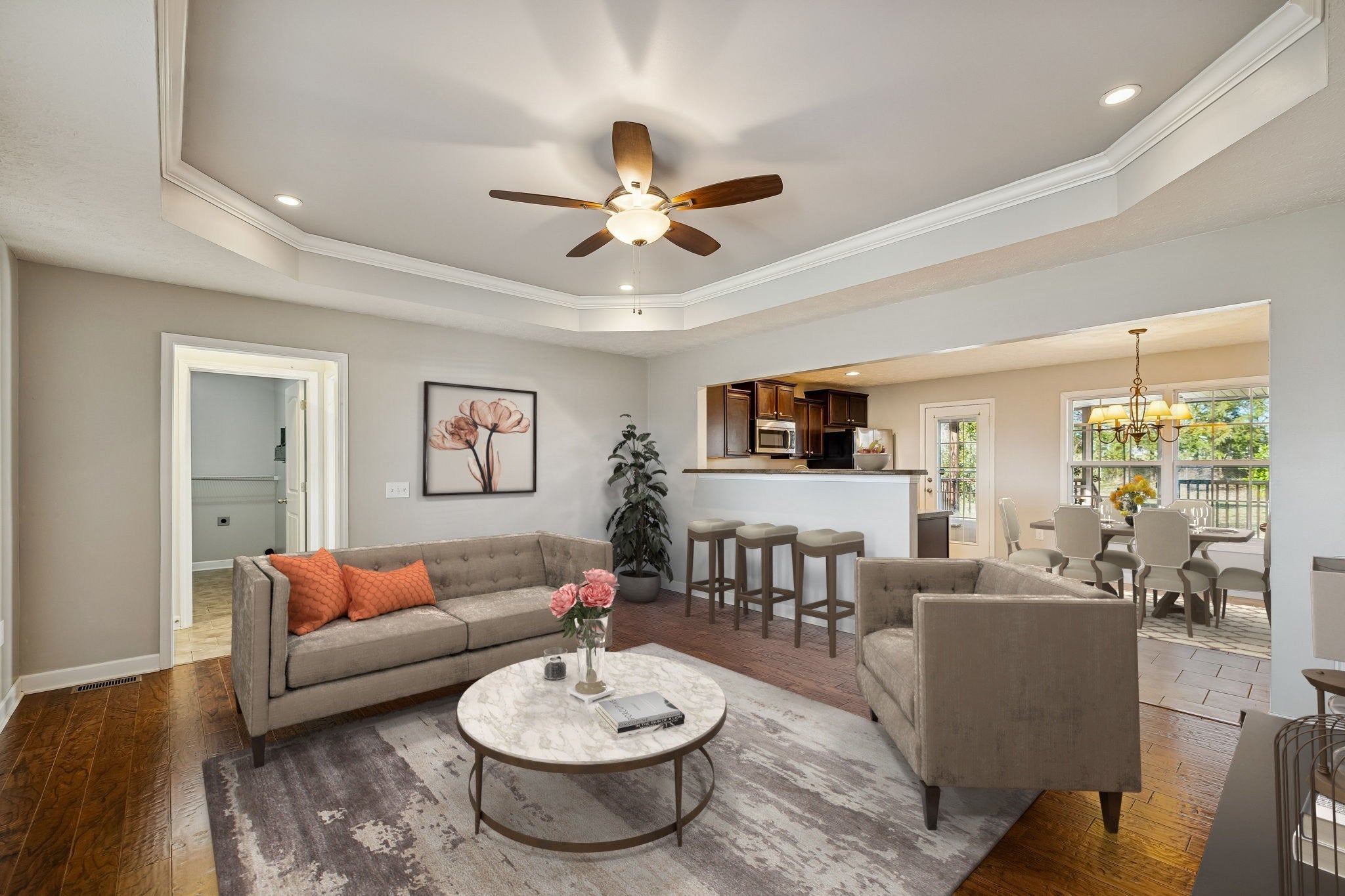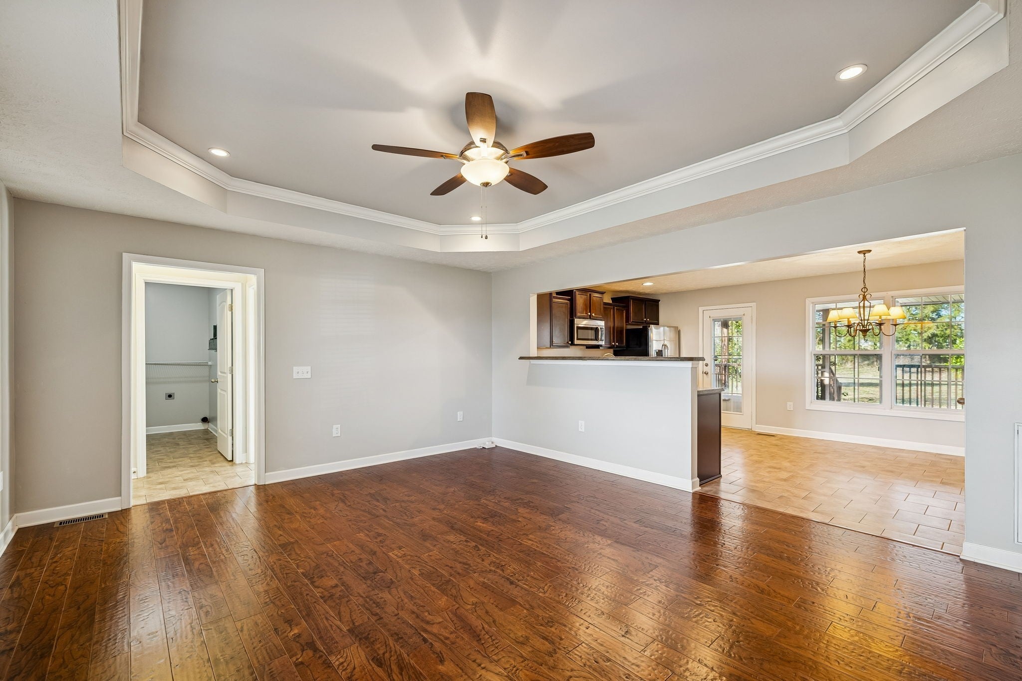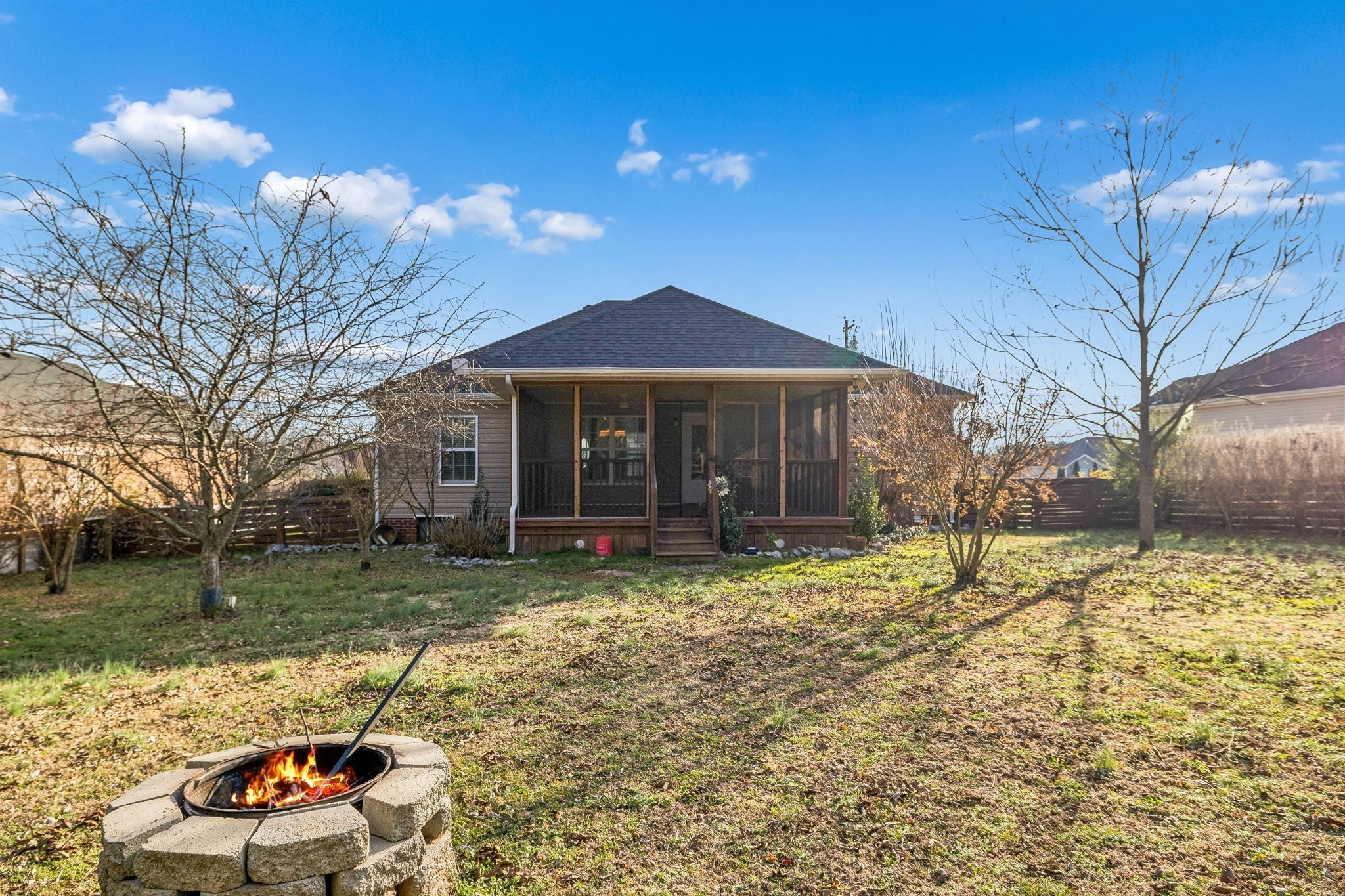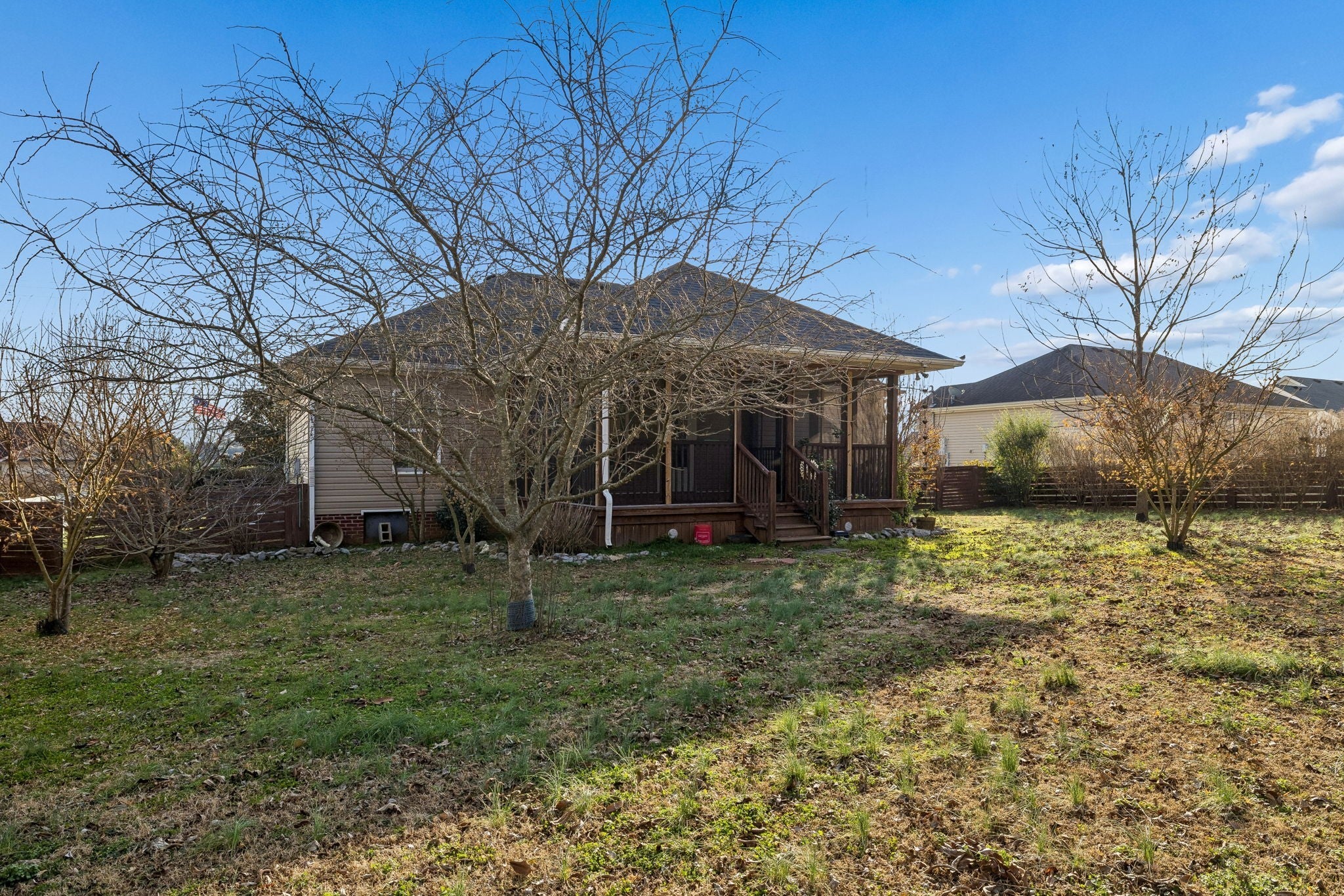 You’ll love this beautifully cared-for 3-bedroom, 2-bath home designed for efficiency, style, and everyday comfort. The home features upgraded windows, a newer hot water heater, and an efficient, well-maintained HVAC system that today’s buyers are looking for. The open floor plan creates a bright, welcoming atmosphere highlighted by hardwood flooring in the living room and durable glazed tile throughout all wet areas. The kitchen blends functionality and design with sleek espresso cabinetry, recessed lighting, stainless steel appliances, and a dedicated dining area that flows seamlessly. The primary suite offers a relaxing escape with a walk-in closet and a well-appointed bath featuring a tub-shower combo with double vanities, while two additional bedrooms share a full bathroom and provide flexible space for guests or a home office on the other side of the home. Step outside to a private fenced backyard showcasing a huge, screened deck ideal for grilling, relaxing, or entertaining guests. An attached two-car garage and open driveway parking enhance convenience and curb appeal. Move-in ready and thoughtfully designed, this energy-efficient home delivers lasting value, modern finishes, and a prime location close to top-rated schools, shopping, dining, and major commuter routes. Schedule your private showing and experience the ideal Murfreesboro lifestyle this home has to offer!