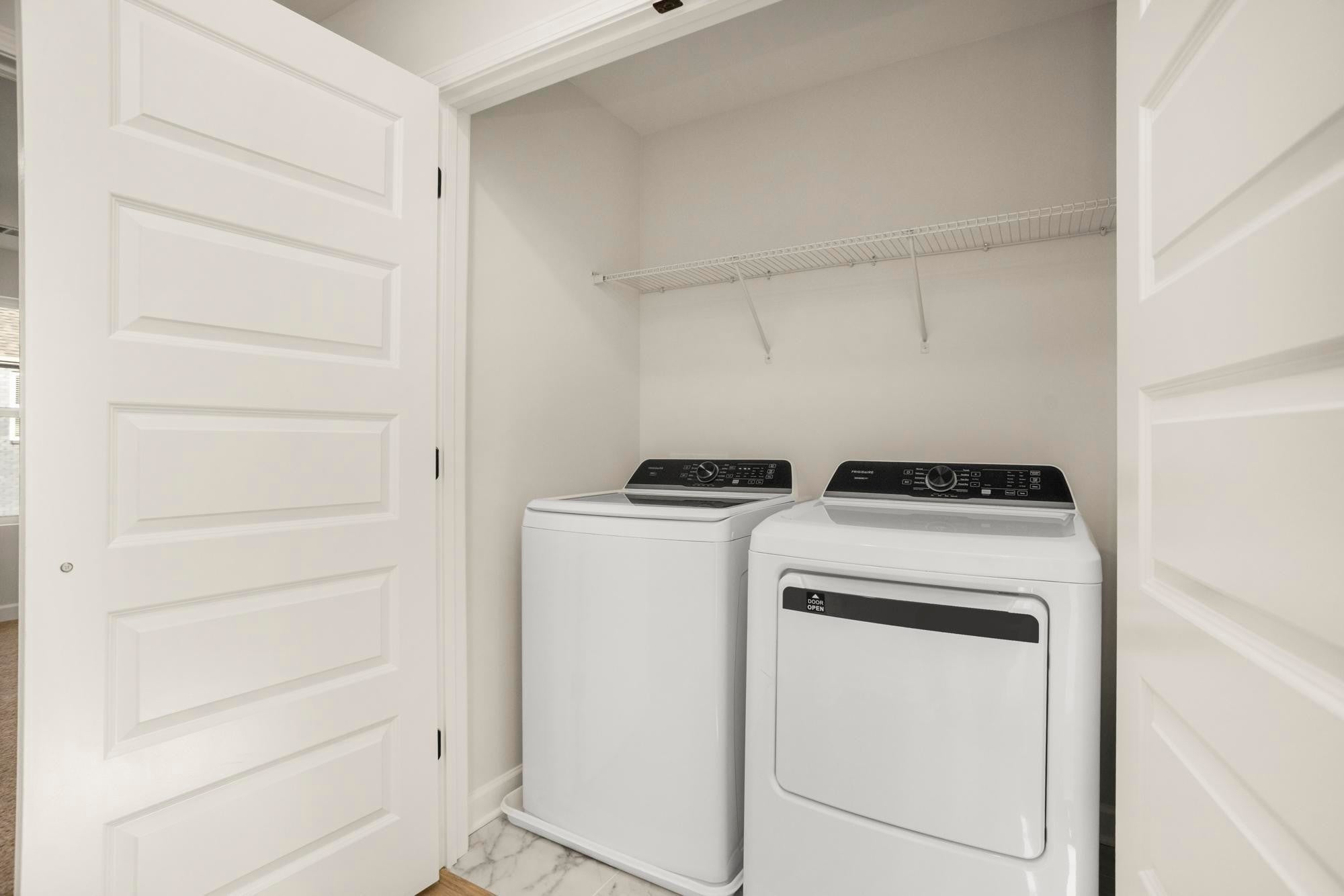- Electric Oven, Electric Range, Dishwasher, Disposal, Dryer, Microwave, Refrigerator, Stainless Steel Appliance(s), Washer