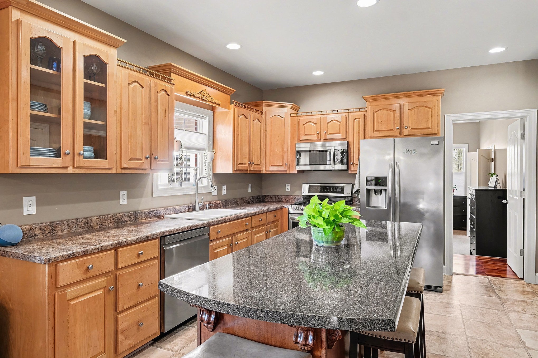 - Built-In Gas Range, Cooktop, Dishwasher, Microwave, Refrigerator