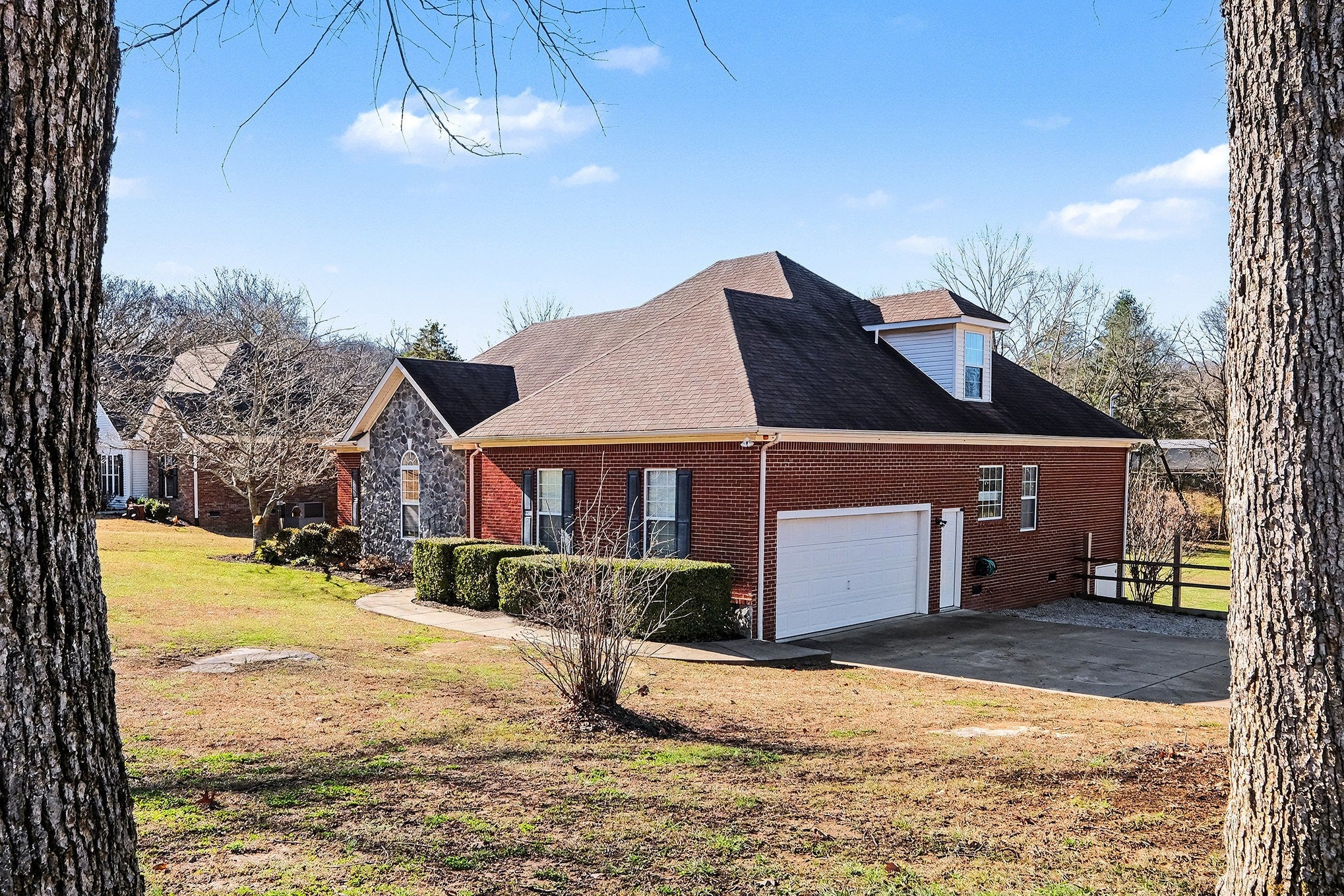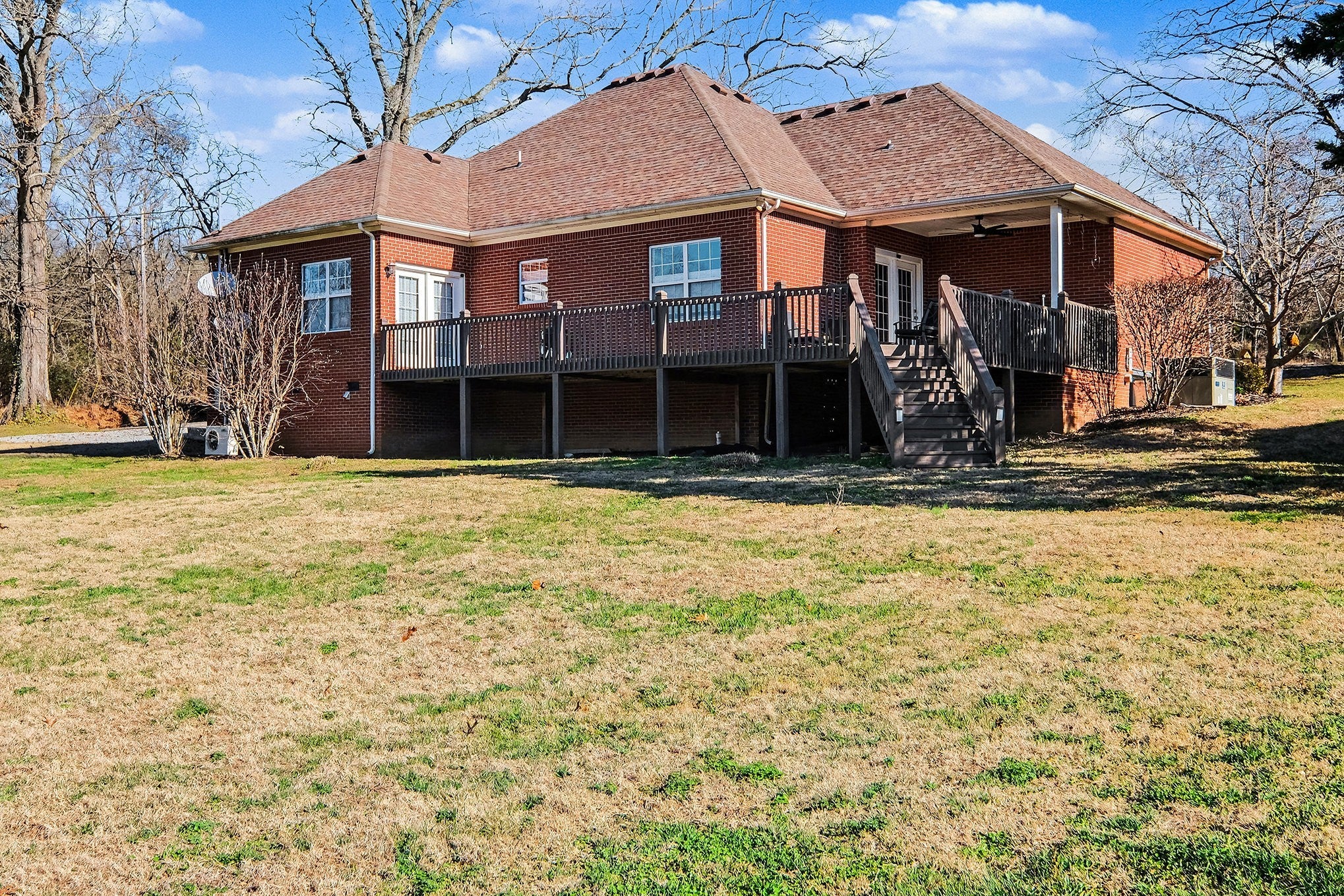 Nestled on 1.3 acres and backing up to a peaceful creek, this all-brick home offers the perfect blend of privacy and comfort. Freshly painted throughout, the home features 3 bedrooms plus a versatile bonus room and an open kitchen ideal for everyday living and entertaining. Unwind in the cozy great room with a gas-log fireplace or step out onto the spacious deck, accessible from both the living area and the primary bedroom, to enjoy the serene natural setting. The upstairs bonus room includes a convenient half bath and abundant storage. With generous indoor and outdoor space, this home is a true retreat.
