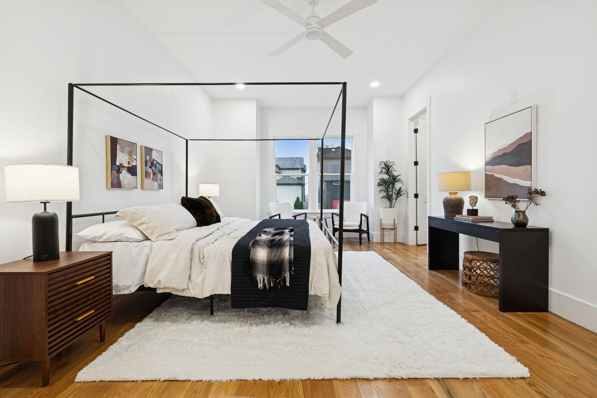 This newly constructed 4-bedroom, 3.5-bath, three-story luxury residence showcases refined design, premium finishes, and exceptional attention to detail. The striking brick and cement siding exterior offers impressive curb appeal, complemented by a manicured front yard and a custom mahogany front door that hints at the sophistication within. Inside, the home features soaring 10-foot ceilings, white oak flooring, illuminated stair lighting, and curated designer finishes throughout. The primary suite serves as a private retreat, complete with a soaking tub and elegant West Elm and Pottery Barn vanities. Thoughtfully designed living spaces include a bonus room with a wet bar, a spacious laundry room with a utility sink, and two stylish powder rooms—perfectly blending form and function. The crown jewel of this home is the private rooftop deck, an entertainer’s dream featuring a high-end two-person outdoor sauna capable of reaching up to 225 degrees—an exceptional luxury rarely found in urban new construction. Expansive glass accordion doors seamlessly connect indoor and outdoor living, opening to downtown views and generous rooftop space ideal for entertaining or relaxing. Additional highlights include soundproofed walls between units for enhanced privacy, an oversized two-car garage, and a sizable yard—an uncommon feature in the area. As a unique added benefit, buyers have the opportunity to Airbnb one of the homes while occupying the other, should both be purchased. Meticulously crafted from top to bottom, this exceptional new build offers the ultimate in luxury living in a prime location!