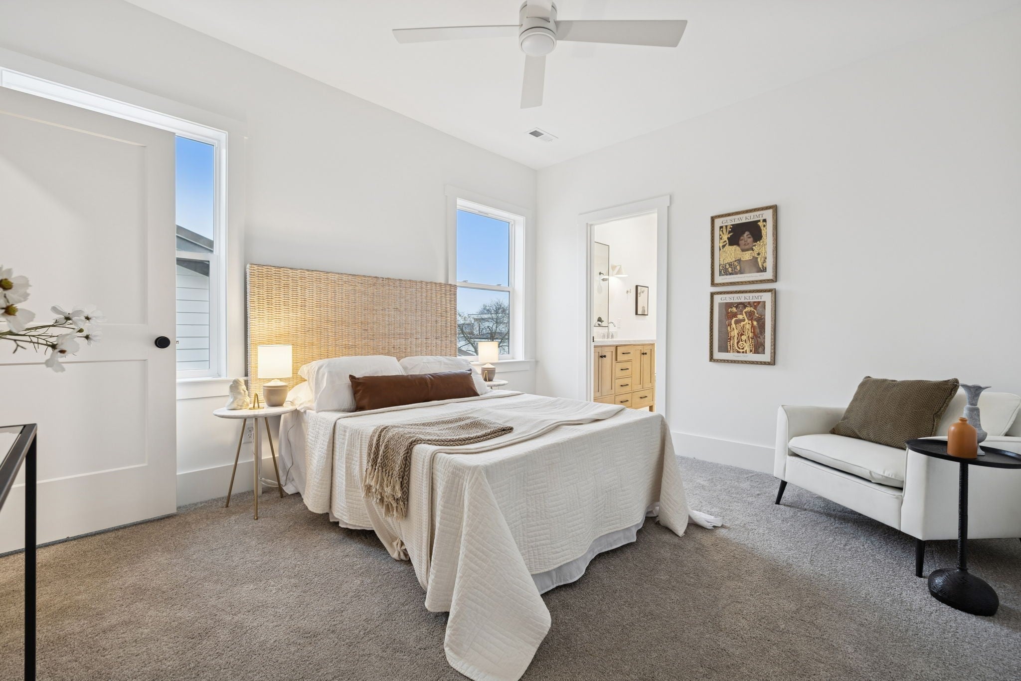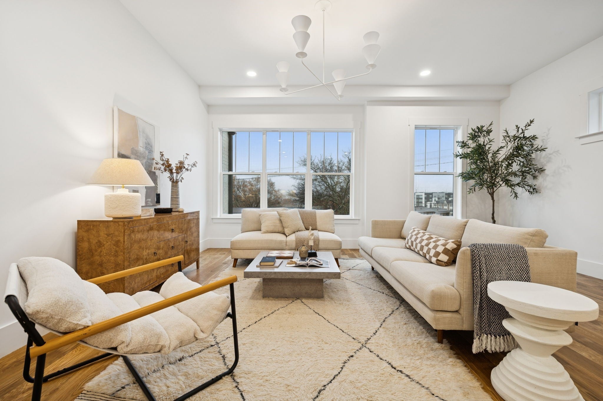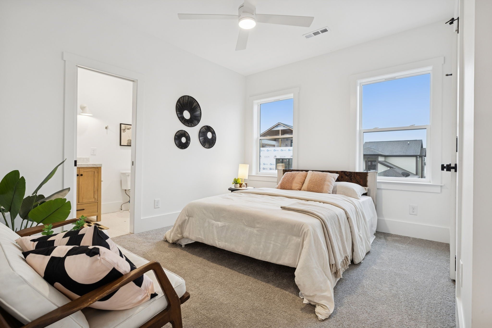 This newly constructed 4-bedroom, 3.5-bath, three-story luxury residence showcases refined design, premium finishes, and exceptional attention to detail. The striking brick and cement siding exterior offers impressive curb appeal, complemented by a manicured front yard and a custom mahogany front door that hints at the sophistication within. Inside, the home features soaring 10-foot ceilings, white oak flooring, illuminated stair lighting, and curated designer finishes throughout. The primary suite serves as a private retreat, complete with a soaking tub and elegant West Elm and Pottery Barn vanities. Thoughtfully designed living spaces include a bonus room with a wet bar, a spacious laundry room with a utility sink, and two stylish powder rooms—perfectly blending form and function. The crown jewel of this home is the private rooftop deck, an entertainer’s dream featuring a high-end two-person outdoor sauna capable of reaching up to 225 degrees—an exceptional luxury rarely found in urban new construction. Expansive glass accordion doors seamlessly connect indoor and outdoor living, opening to downtown views and generous rooftop space ideal for entertaining or relaxing. Additional highlights include soundproofed walls between units for enhanced privacy, an oversized two-car garage, and a sizable yard—an uncommon feature in the area. As a unique added benefit, buyers have the opportunity to Airbnb one of the homes while occupying the other, should both be purchased. Meticulously crafted from top to bottom, this exceptional new build offers the ultimate in luxury living in a prime location!