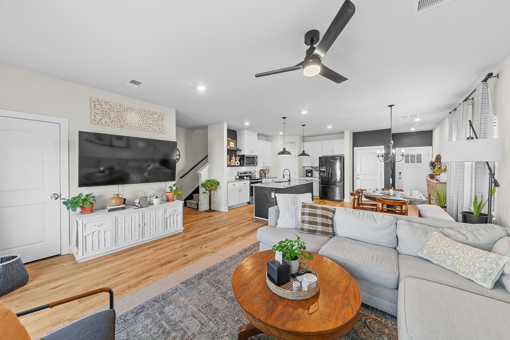 Welcome to this end-unit townhome on Columbia’s desirable north side with convenient access to Nashville Hwy 31, Hwy 43 Bypass, and I-65. The end-unit placement offers added privacy, plus nearby overflow and guest parking. The layout is a standout with oversized bedrooms, including an extra-large primary suite featuring a huge walk-in closet. The main level offers a spacious open-concept living room, dining area, and kitchen that flows well for everyday living and entertaining. You will also appreciate the independent laundry room with shelving for extra storage and function. Upstairs includes a versatile loft space that works perfectly as a home office, media room, or play area. Finishes include granite countertops, stainless steel appliances, and updated flooring throughout the downstairs. The seller has completed meaningful improvements throughout, including custom upgraded lighting, fresh paint in nearly half the home, updated fixtures at all sinks, and a refreshed downstairs half bath with new paint, trim, vanity, lighting, and water fixture. All kitchen appliances remain, including a refrigerator less than a year old. Community amenities include a dog park, walking trails, playground, fire pit, and covered picnic area. HOA covers all ground maintenance, meaning no yard work at all, and it also includes roof coverage. High-speed fiber internet is available.