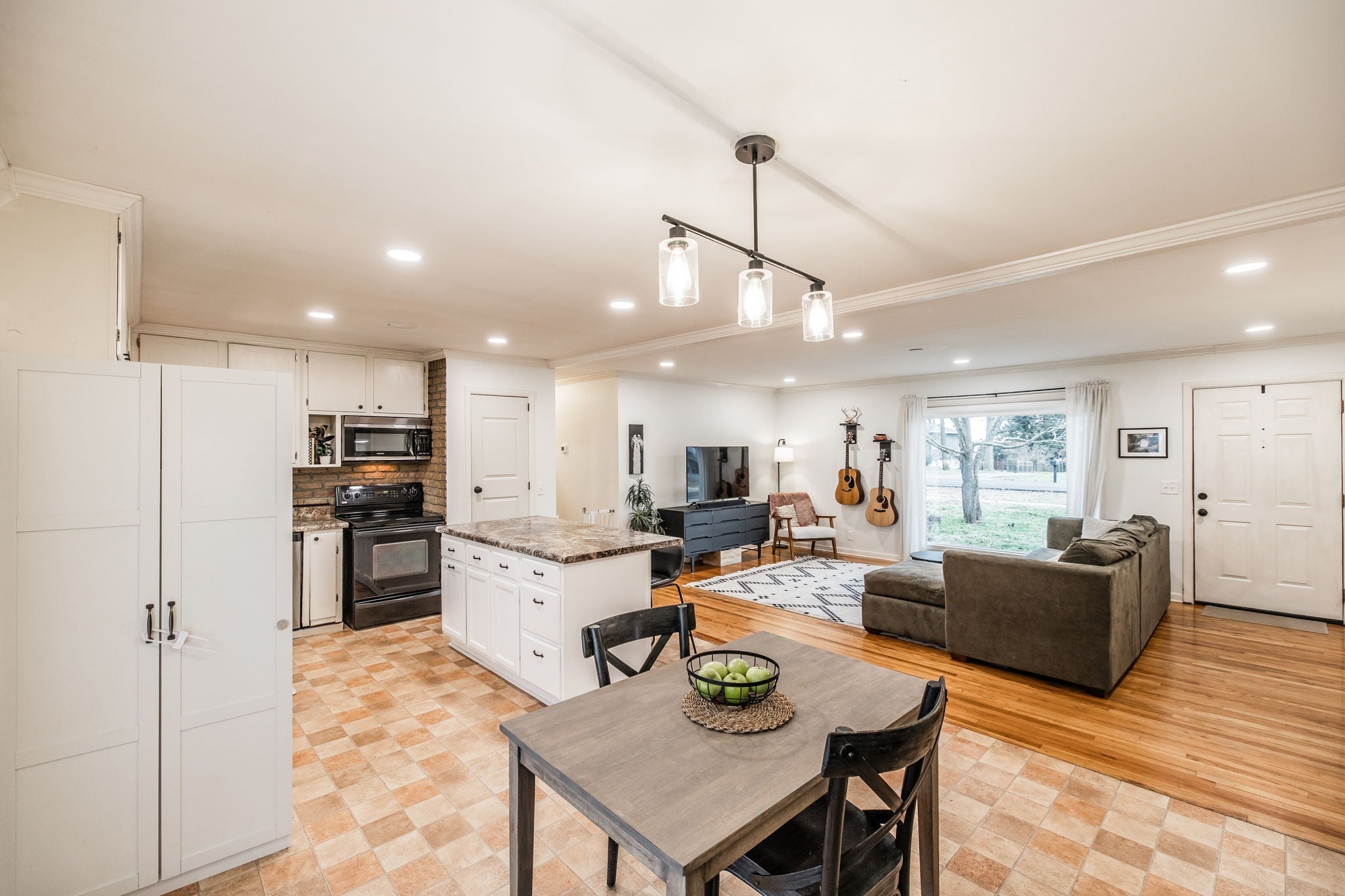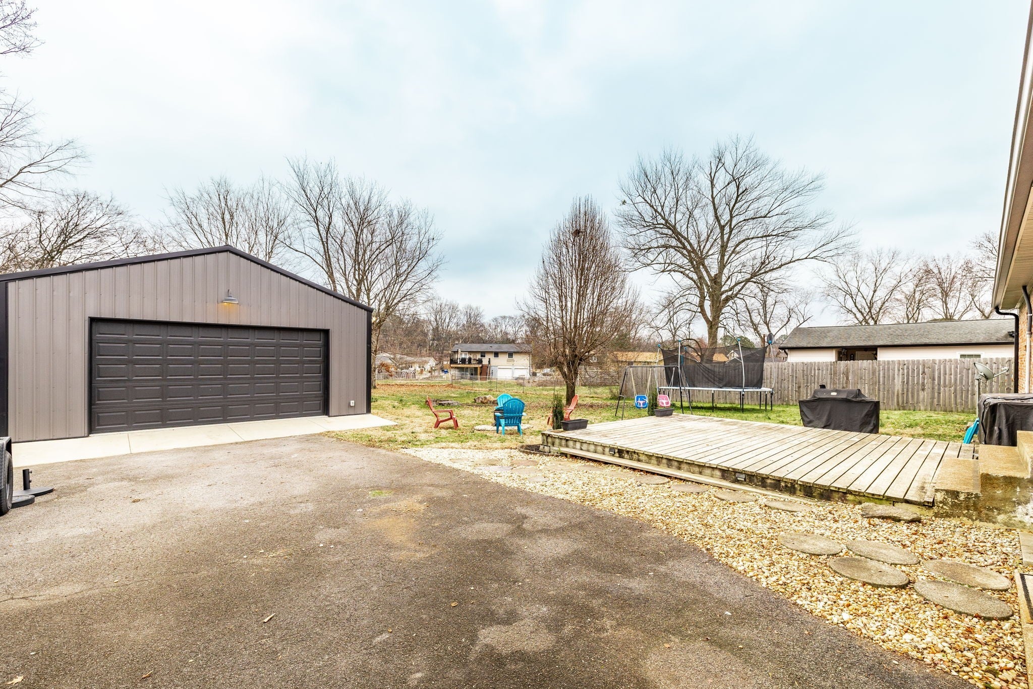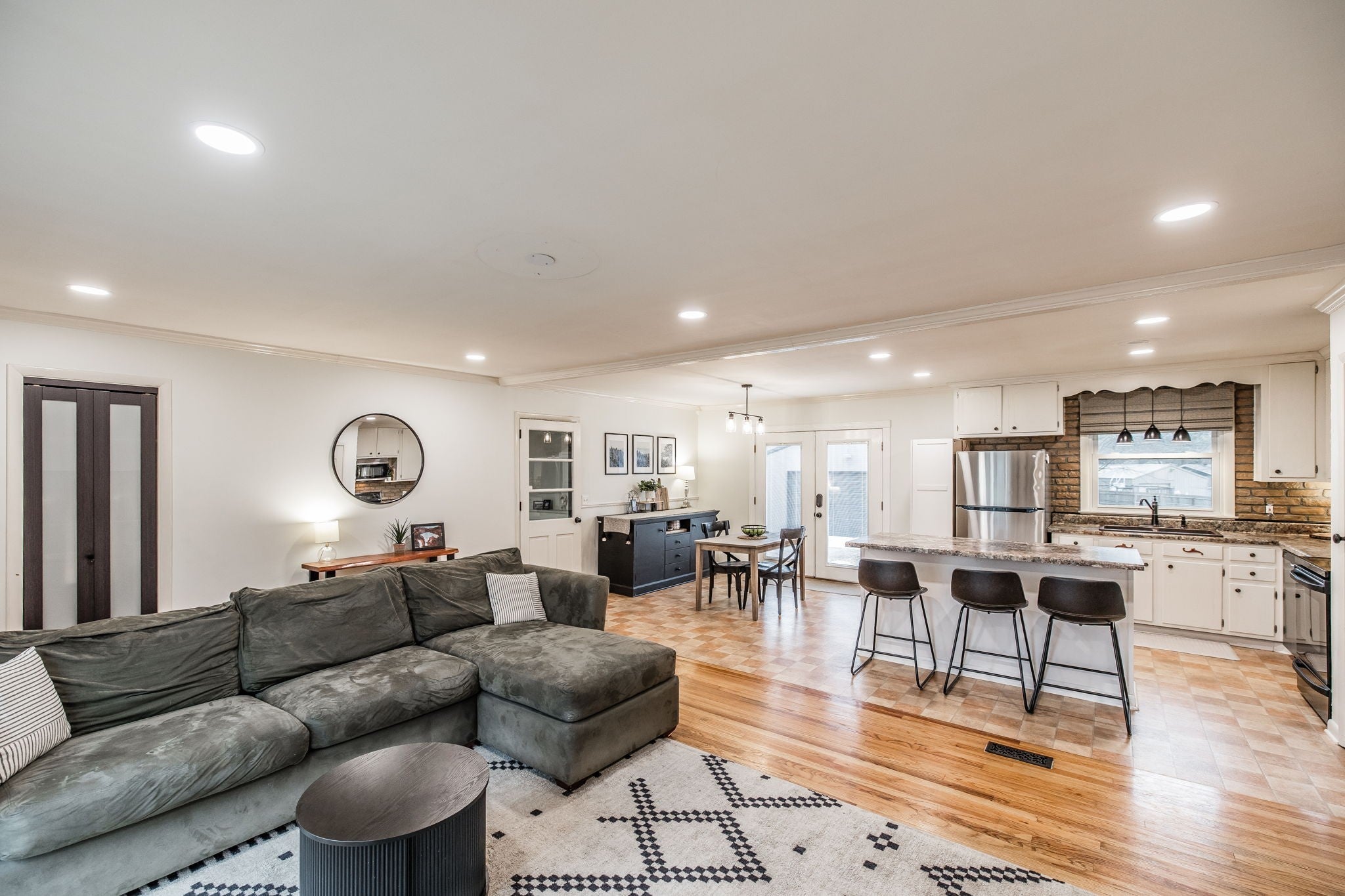 Welcome to this beautiful one-level ranch in Hendersonville, set on nearly half an acre and a block from Old Hickory Lake. This all-brick home blends mid-century charm with modern functionality, offering a bright, open-concept layout designed for enjoyable everyday living and entertaining. The open kitchen features a brick backsplash, island with countertop seating, and a seamless flow into the dining and great room, highlighted by hardwood floors and a large picture window that floods the space with natural light. A separate family/bonus room offers versatile space for work, play, or relaxing for the whole family. Step outside to a spacious deck overlooking the fully fenced backyard with mature trees, perfect for pets, gatherings, or future garden beds. A standout feature is the newly built (2023) 32'x24' detached garage - Fully Climate Controlled, Mini Split Heat & Air, Foam Insulation and 200 amp service - ideal for workshop space, boat storage, or extra vehicles. New Roof on home in 2022. Outdoor enthusiasts will appreciate the unbeatable location from Walton Ferry Boat Launch, Sanders Ferry Park & boat Launch, Lock 3 Access Beach, Picnic Area & boat launch, as well as, multiple marinas, Hendersonville Board Walk and great dining options all within minutes. Great walkable neighborhood - there is even a walking trail to Old Hickory Lake.