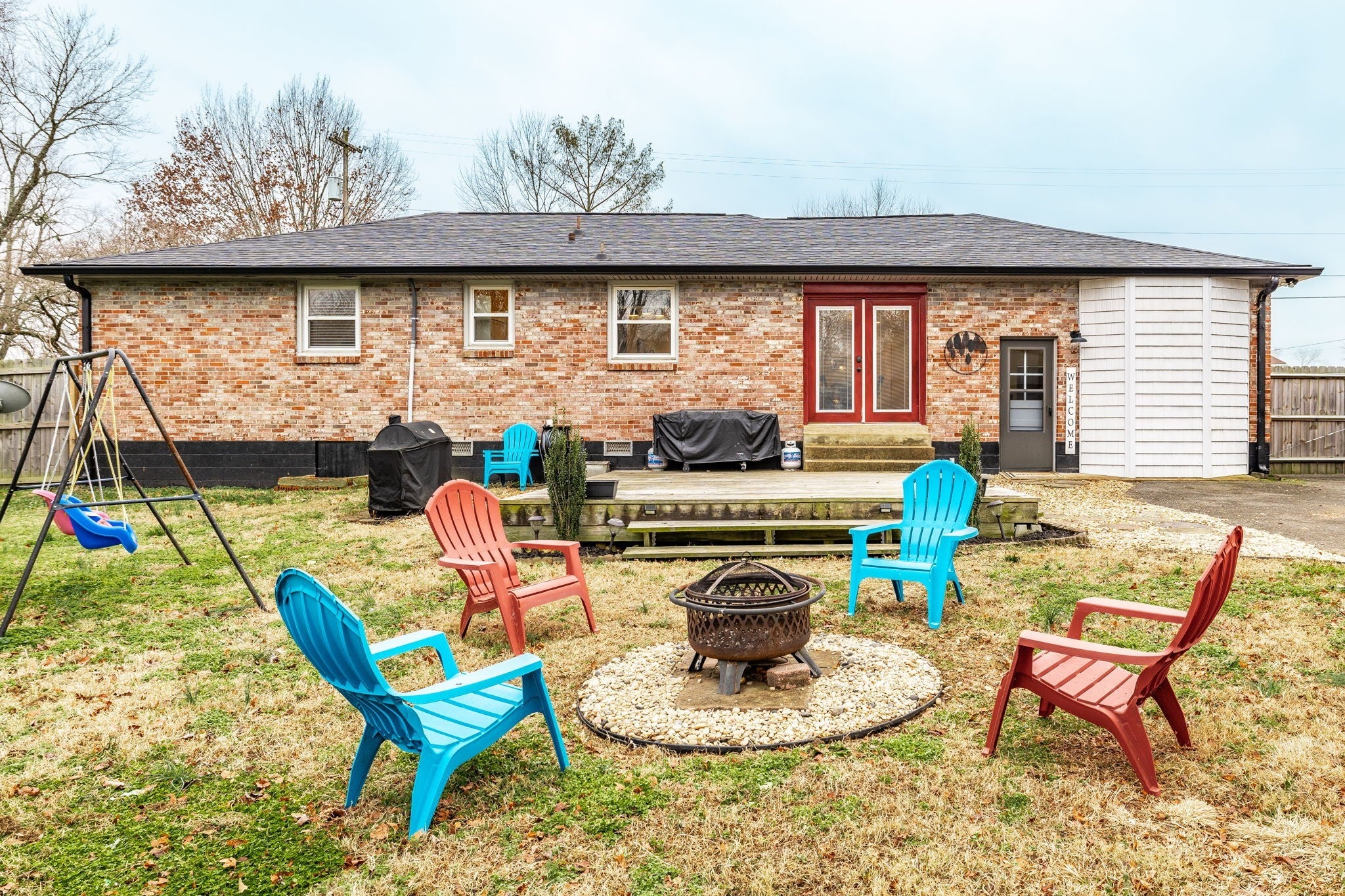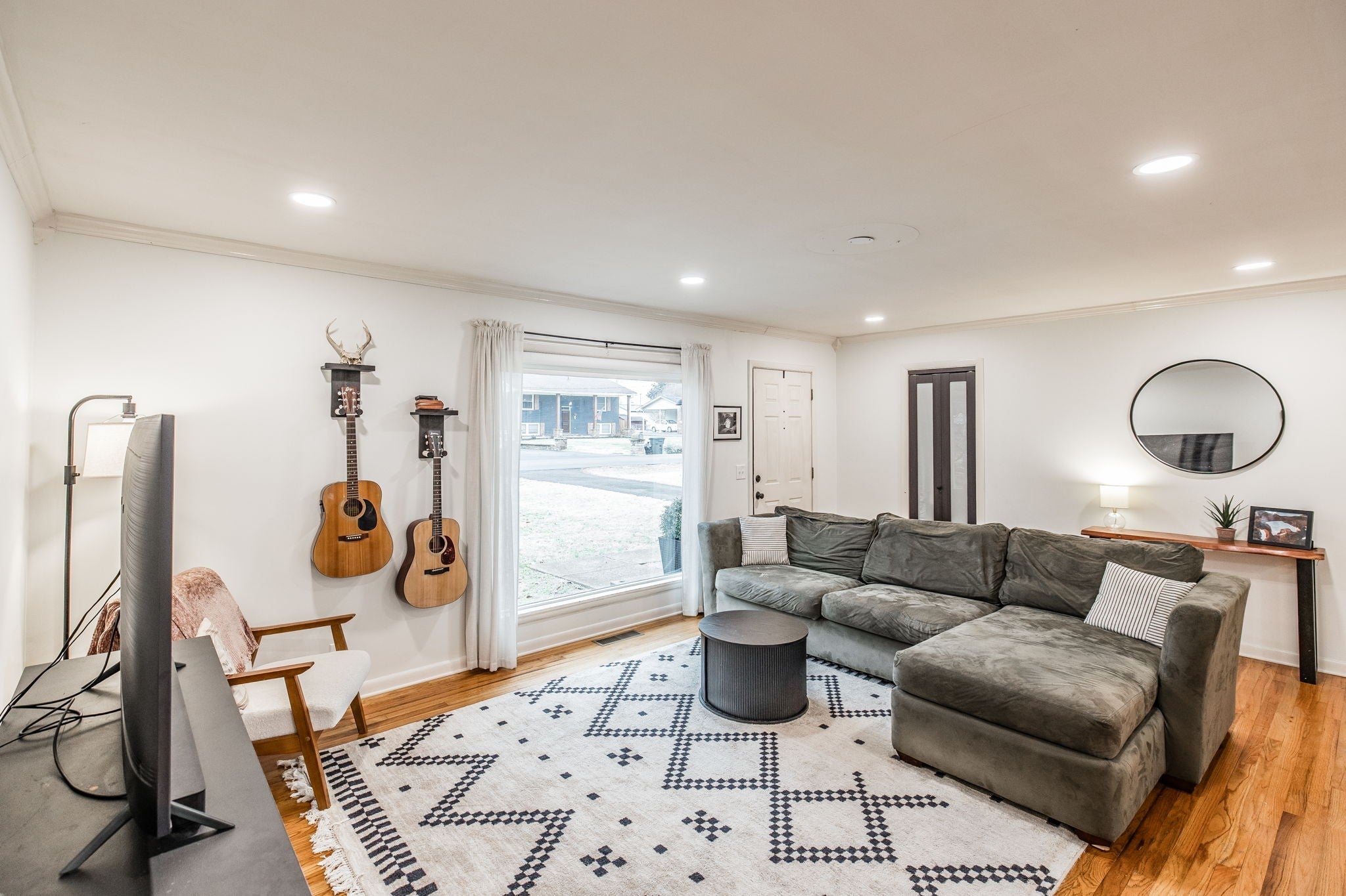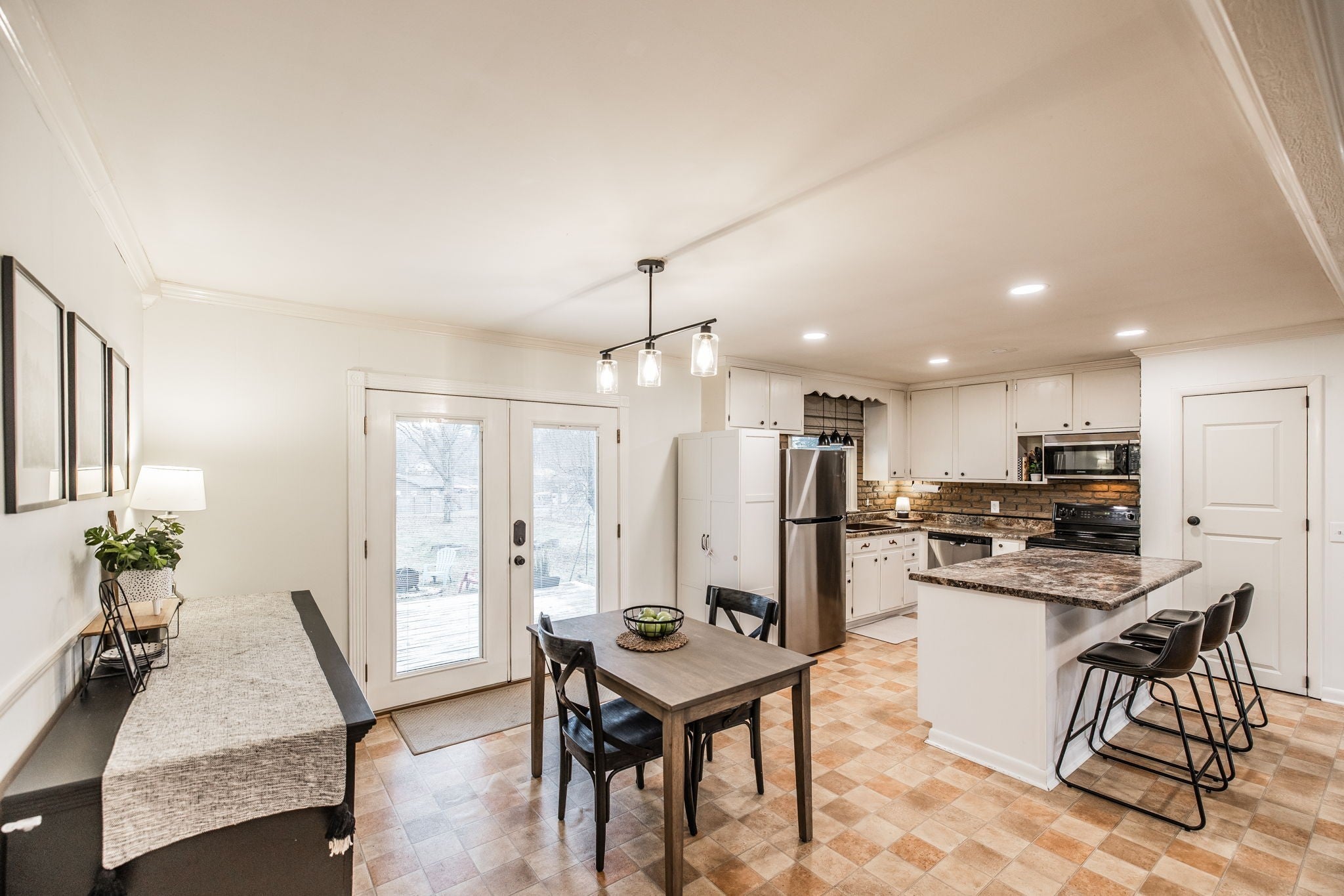 Welcome to this beautiful one-level ranch in Hendersonville, set on nearly half an acre and a block from Old Hickory Lake. This all-brick home blends mid-century charm with modern functionality, offering a bright, open-concept layout designed for enjoyable everyday living and entertaining. The open kitchen features a brick backsplash, island with countertop seating, and a seamless flow into the dining and great room, highlighted by hardwood floors and a large picture window that floods the space with natural light. A separate family/bonus room offers versatile space for work, play, or relaxing for the whole family. Step outside to a spacious deck overlooking the fully fenced backyard with mature trees, perfect for pets, gatherings, or future garden beds. A standout feature is the newly built (2023) 32'x24' detached garage - Fully Climate Controlled, Mini Split Heat & Air, Foam Insulation and 200 amp service - ideal for workshop space, boat storage, or extra vehicles. New Roof on home in 2022. Outdoor enthusiasts will appreciate the unbeatable location from Walton Ferry Boat Launch, Sanders Ferry Park & boat Launch, Lock 3 Access Beach, Picnic Area & boat launch, as well as, multiple marinas, Hendersonville Board Walk and great dining options all within minutes. Great walkable neighborhood - there is even a walking trail to Old Hickory Lake.