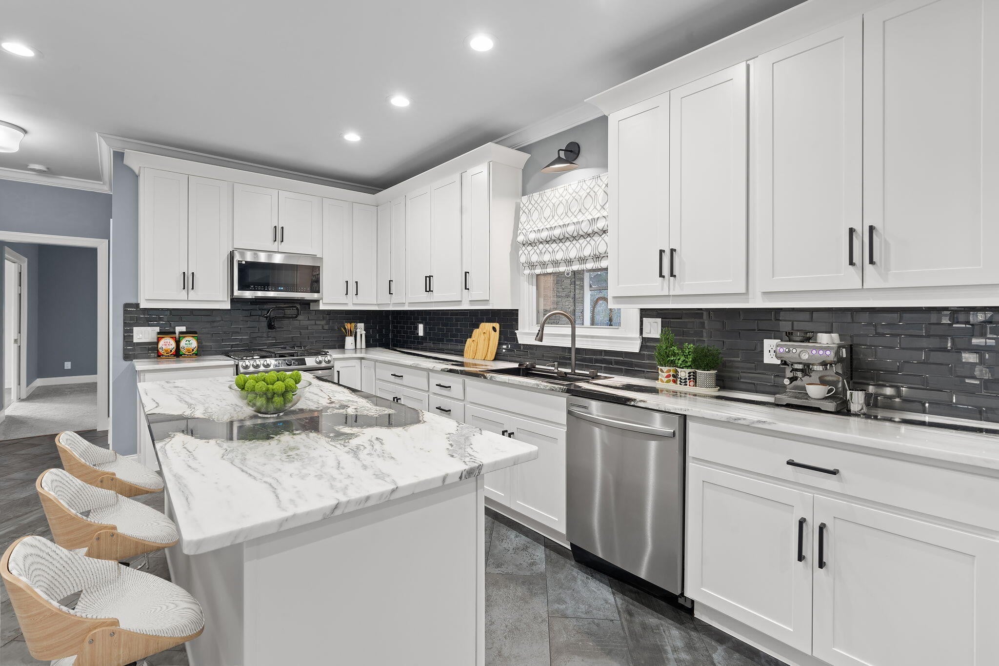 - Gas Oven, Cooktop, Gas Range, Dishwasher, Disposal, Microwave