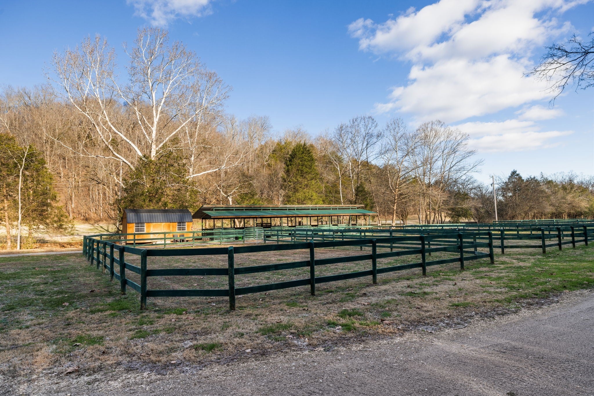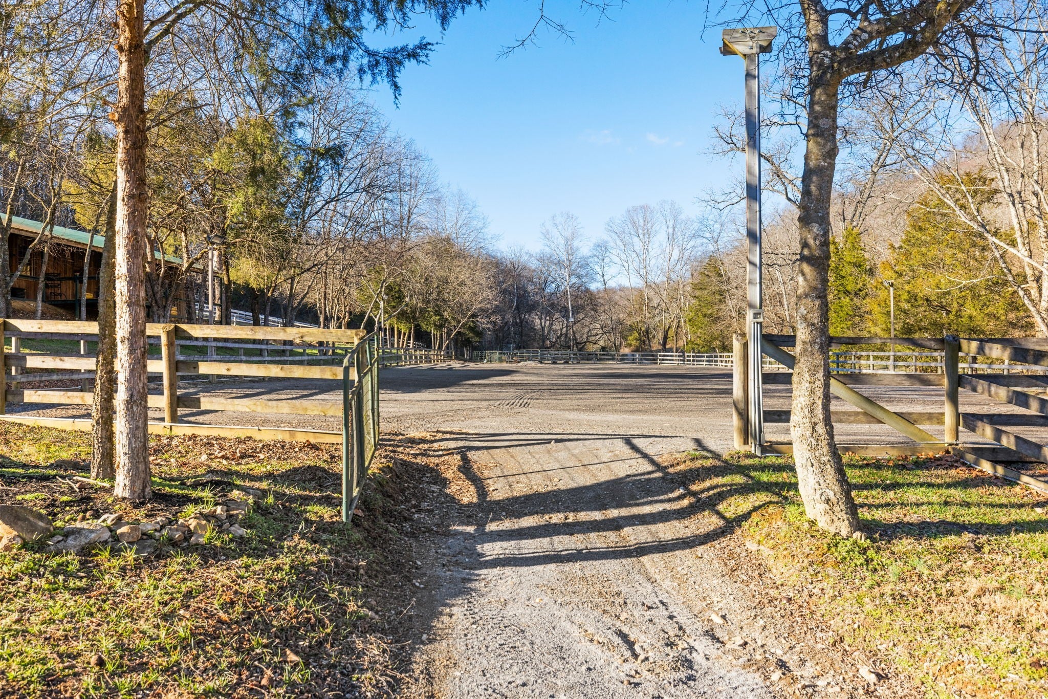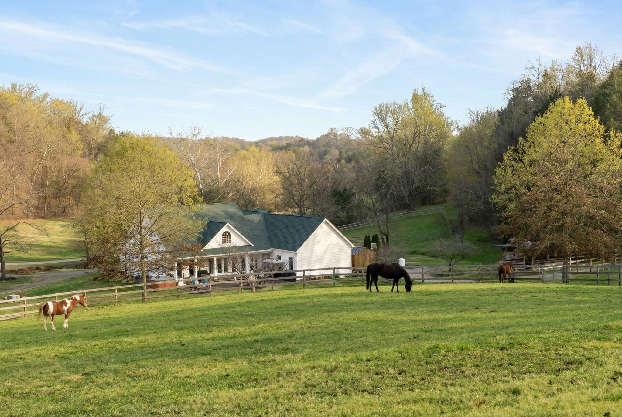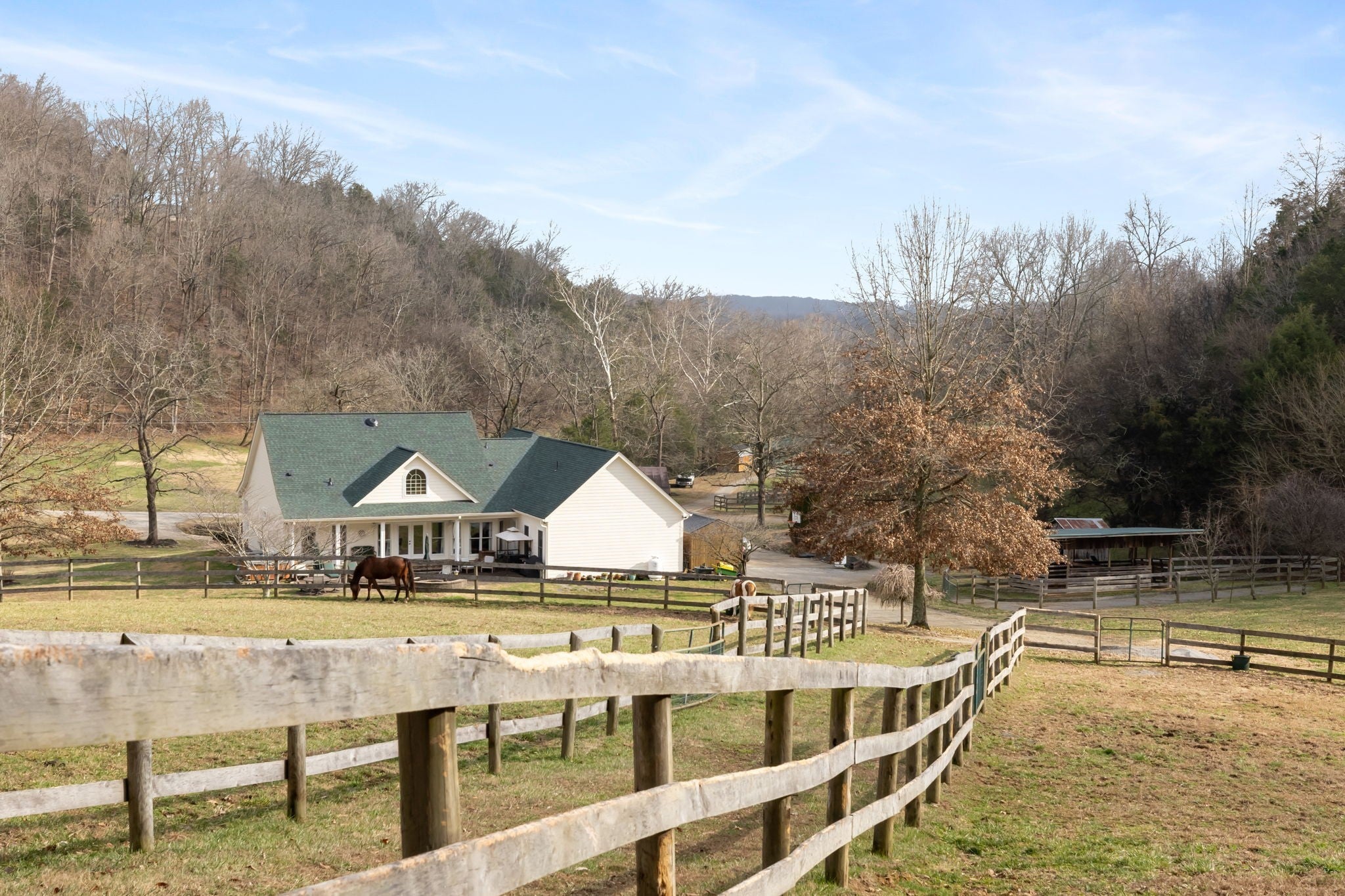 Escape to Your Own Equestrian Paradise. Welcome to a dream come true for equestrian enthusiasts and nature lovers alike! Located just 4.5 miles from the heart of Gallatin, this stunning 80-acre property offers a rare blend of luxurious living and exceptional equestrian facilities. This charming home features ample natural light, cozy living spaces, and room for family gatherings, making it the perfect retreat after a long day outdoors. Horse lovers will be in paradise with 2 main barns having 6 stalls each, plus three separate small barns with 2 stalls each, featuring attached run-ins, ready to safely welcome your prized equine companions. The 14 board-fenced paddocks, complete with curved corners for safety, offer secure and comfortable spaces for your horses to roam. Unleash your training potential in the large 250' professionally built arena with lighting, a 60' round pen, and even a gallop track. Embrace the beauty of nature with miles of park-like groomed riding trails that wind through the property, providing endless opportunities for conditioning and adventure. Discover a serene stocked pond complete with a floating dock perfect for fishing or simply enjoying a peaceful afternoon. The all-weather creek adds a soothing element to the natural landscape. There are also two RV hookups for guests to enjoy. With multiple contiguous lots, this property has the potential for expansion, allowing you to add up to 4 additional houses. Whether you're considering a professional equine facility, family compound, retreat center, or an investment opportunity, the possibilities are endless. Don't miss this once-in-a-lifetime opportunity to own a piece of paradise in Gallatin. Schedule your private showing today and start envisioning the life you've always dreamed of.