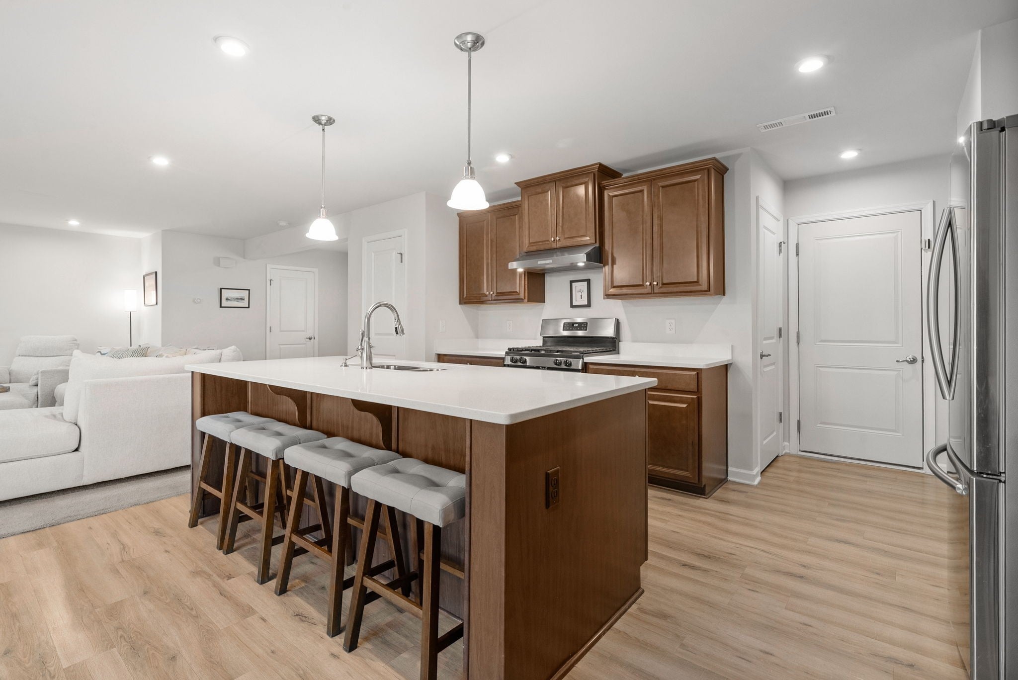 Better than new construction without the wait or potential delays, this stunning 3 bedroom home in Waltons Grove was built in 2020 and offers max curb appeal plus a fully fenced backyard already in place — the work has been done for you with no need to go through the ARC committee. Located on the Providence side of Mount Juliet, this home is convenient to shopping, dining, and everyday essentials. It is also approximately 14 miles to BNA Airport and 22 miles to Downtown Nashville, offering easy access for commuting, travel, and entertainment. Inside you’ll find an inviting open floorplan on the main level, including a spacious great room ideal for entertaining and a beautiful kitchen featuring a huge island, quartz countertops, gas range, generous counter and cabinet space, and TWO PANTRIES! A stylish half bath is also located downstairs for added convenience. Upstairs are three spacious bedrooms including the primary suite with a private en suite bathroom, along with an additional full bathroom to serve the guest bedrooms. This home has a TANKLESS WATER HEATER! The community includes a pool, playground, walking trail, and sidewalks on both sides of the street to create an enjoyable neighborhood setting. HOA includes trash pickup, making life just a little easier. This is your opportunity to live in one of Mount Juliet’s most desirable neighborhoods for under $500,000 while enjoying a lovely, move-in ready home with modern finishes throughout. Come experience the comfort, convenience, and lifestyle Waltons Grove has to offer — welcome home.