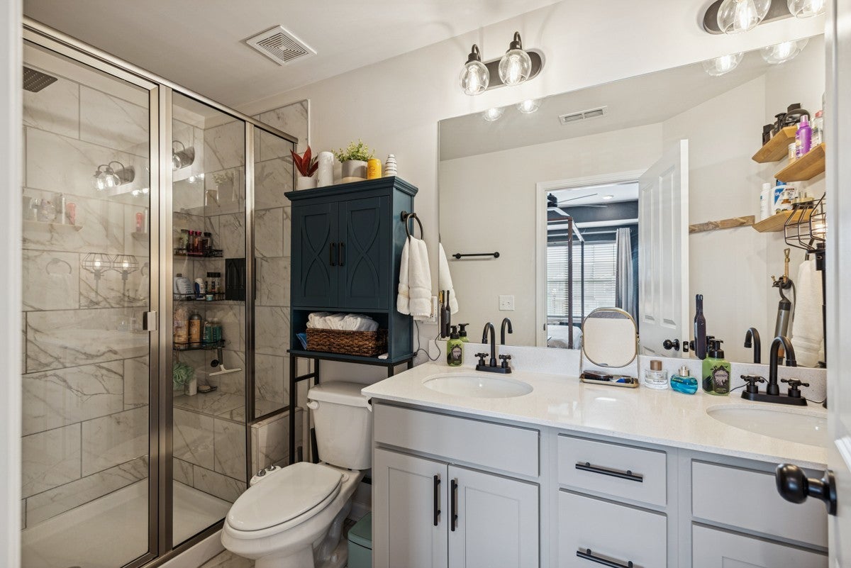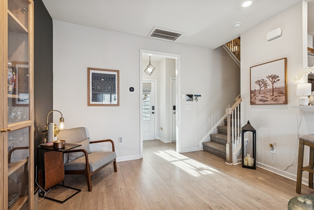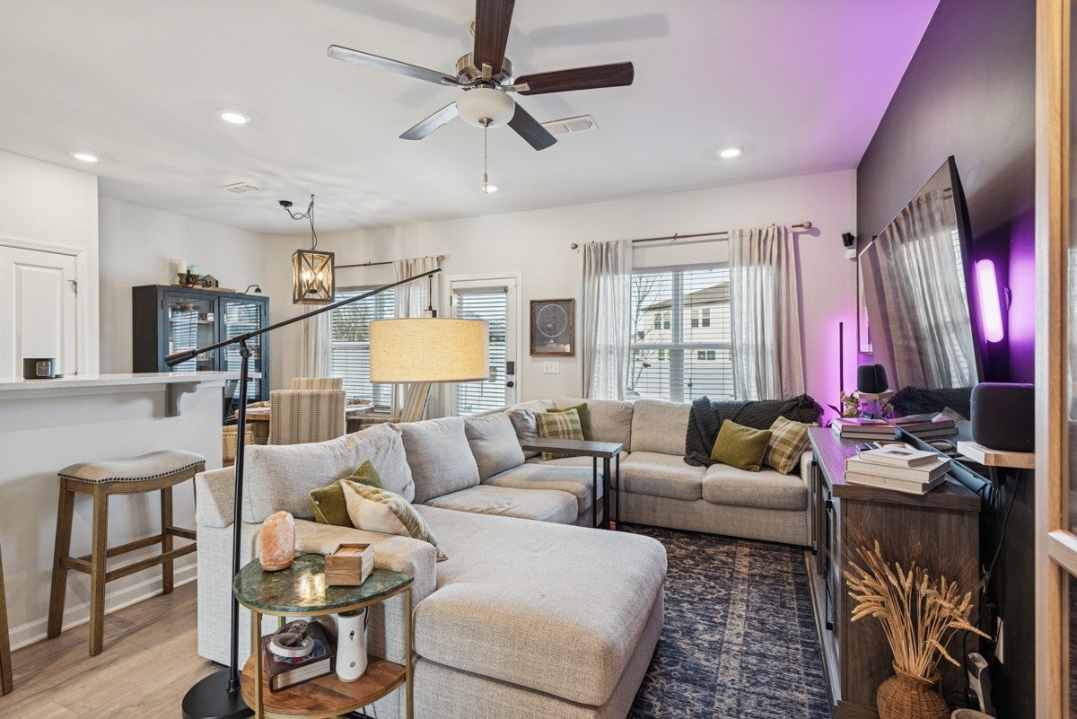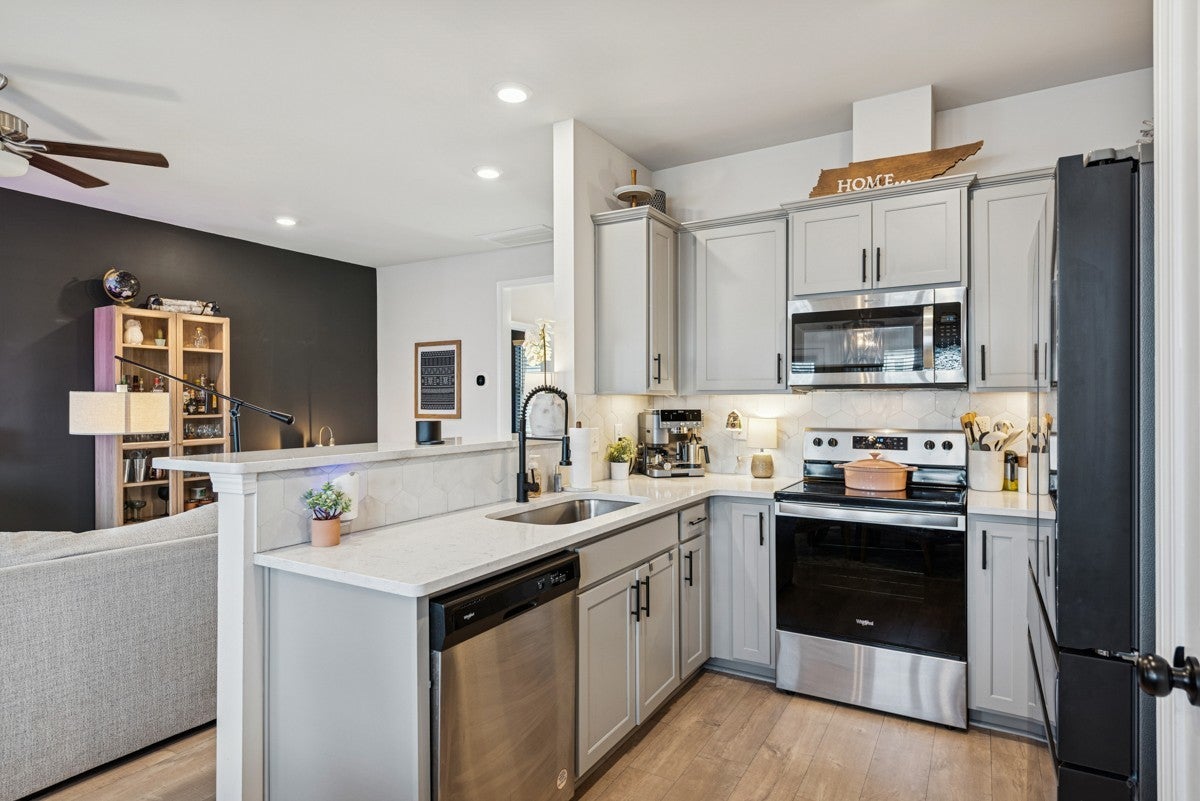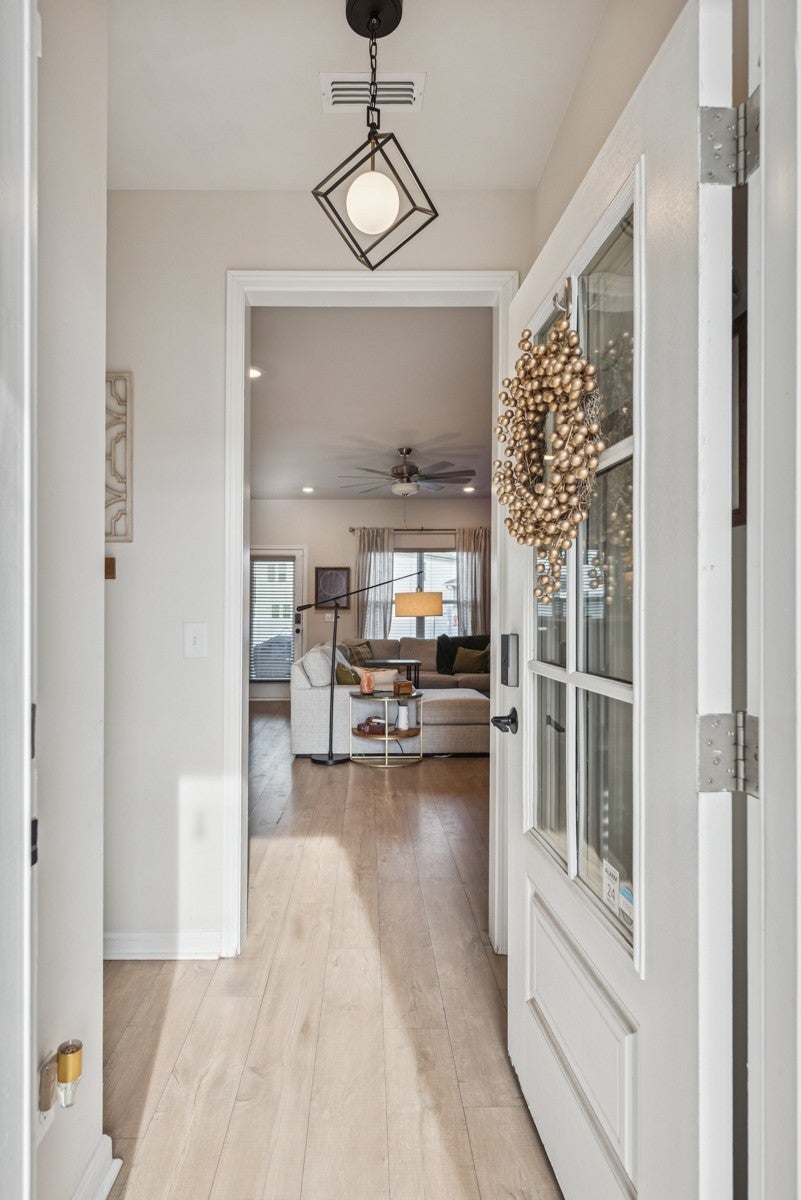 Come tour this beautifully maintained three bedroom, two and a half bathroom townhome centrally located between Nashville and Murfreesboro. Built in 2023 this is one of the only townhomes with a fully fenced in backroad. that features an above ground pool. With its unique and attractive dark gray exterior finish and interior accent walls, this home is the perfect starter home for any couple or new family! The main floor features an inviting open floor plan featuring a spacious living room with a dining area as well. Kitchen comes with all appliances and even has a pantry. With stainless steel appliances, ample cabinet space, and granite countertops, this home will be one you will love living in; especially with a Samsun Bespoke Refrigerator that is only two years old. Upstairs you will find all three bedrooms along with two bathrooms and a walk in laundry area. The primary bedroom features an en suite bathroom with walk in shower and double vanities. It also features a very spacious walk in closet that has a door leading directly to the laundry room. The upstairs also features a separate linen closet. Upgrades include black hardware throughout the home along with wiring for an electric car charging station. The HVAC system is a dual-zone with separate thermostats for upstairs and downstairs, featuring upgraded smart thermostats.