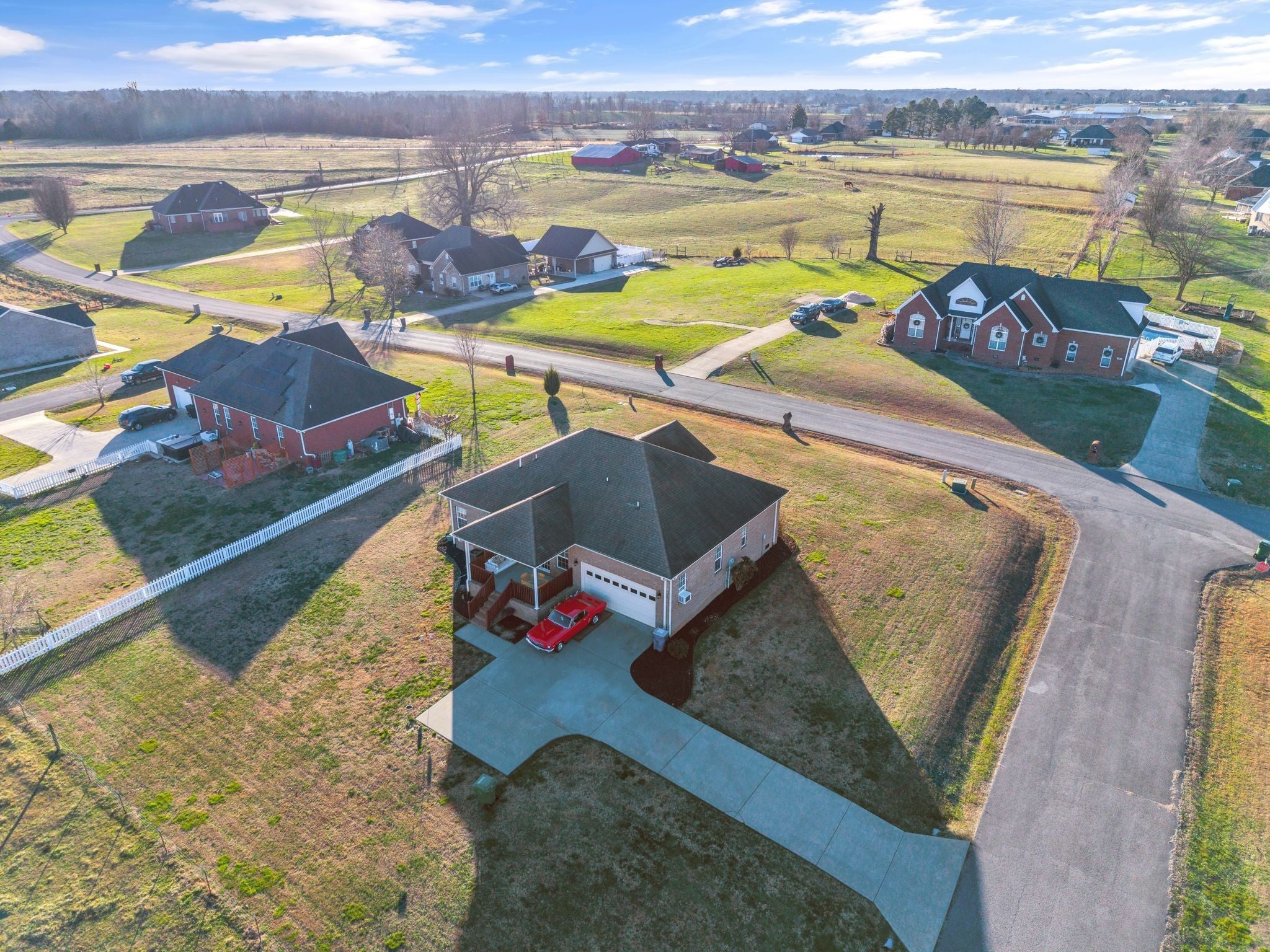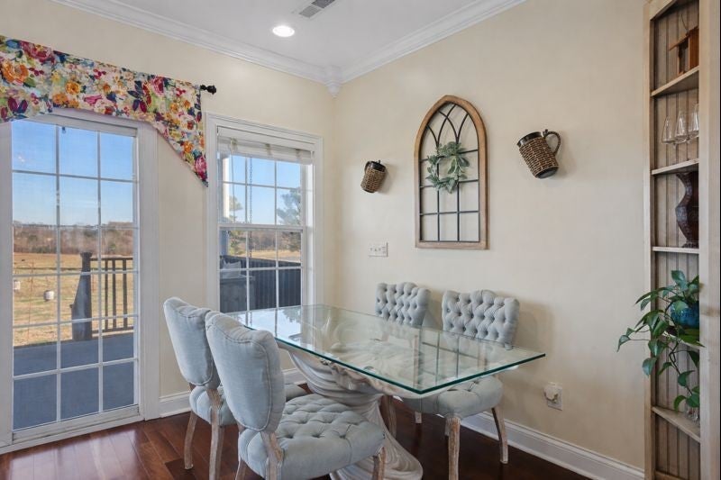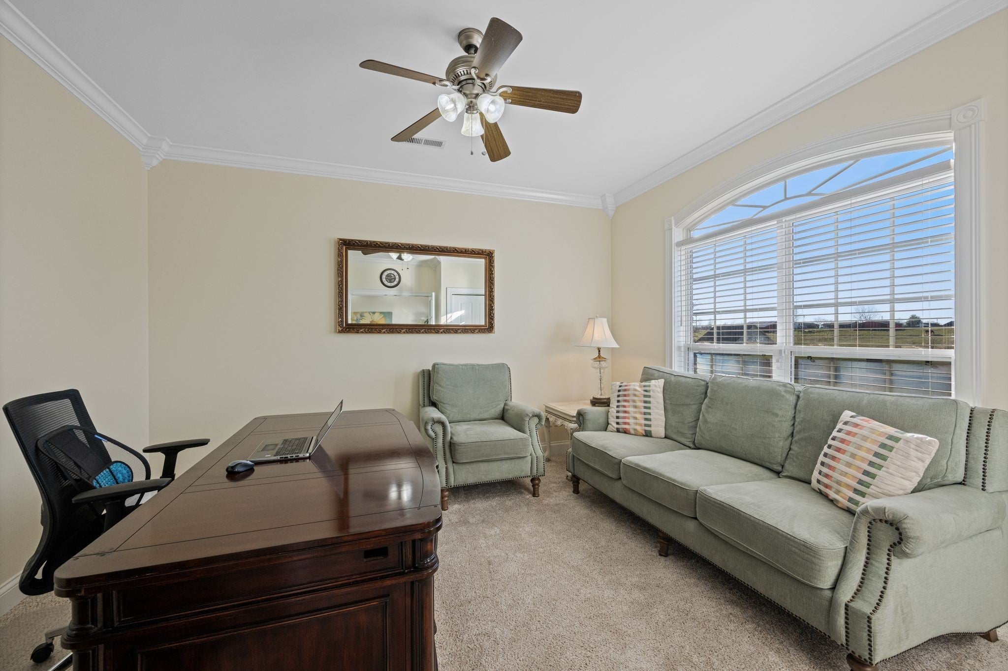 Pride of Ownership is apparent in this beautiful, open, light & bright 2BR/2BA plus office one-level home on a sprawling 0.46 acre lot that backs up to a private farm/field - no neighbors behind you! Custom finishes include double trey ceilings, extensive crown moulding & trim work, transom windows, built-in cabinetry and more. The home office with french doors has a closet and could potentially serve as an additional bedroom (however, home's septic is permitted for 2 BR). Enjoy peaceful outdoor living with the large covered front porch, and covered rear porch with relaxing porch swing. 2-car rear entry garage plus lots of extra parking for guests. Low-maintenance all brick exterior. Enjoy an easy 25 mile commute to Huntsville, and just 10 miles south of downtown Fayetteville - this home offers comfort, convenience, and privacy in one exceptional package. NO HOA FEES and NO CITY TAXES! Make this home yours today!