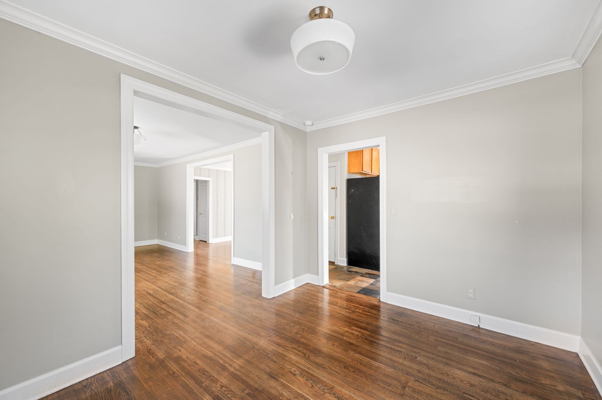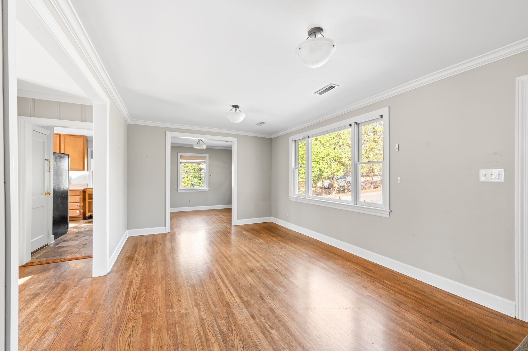 Situated on a spacious .57-acre lot, this cozy, 3-bedroom, 2-bath cottage offers a practical layout with significant flexibility. The main level features hardwood flooring throughout the living areas, with tile in the kitchen and baths. A finished lower level expands the usable square footage, providing versatile rooms suitable for a home office, recreation space, or guest accommodations. The floor plan connects the main living room to the kitchen and breakfast nook, adjacent to a separate formal dining area. Exterior French doors lead to a private backyard with a tranquil creek, creating a quiet setting for outdoor use. The property includes a firepit area and a brand-new deck, set against a mature tree line that offers privacy. Recent mechanical and structural updates include newer HVAC units, a radon mitigation system, a paved driveway, and a well-maintained roof. Located in West Nashville, the home is near Nashville West, Target, and Trader Joe’s, with downtown access typically 15 minutes or less.