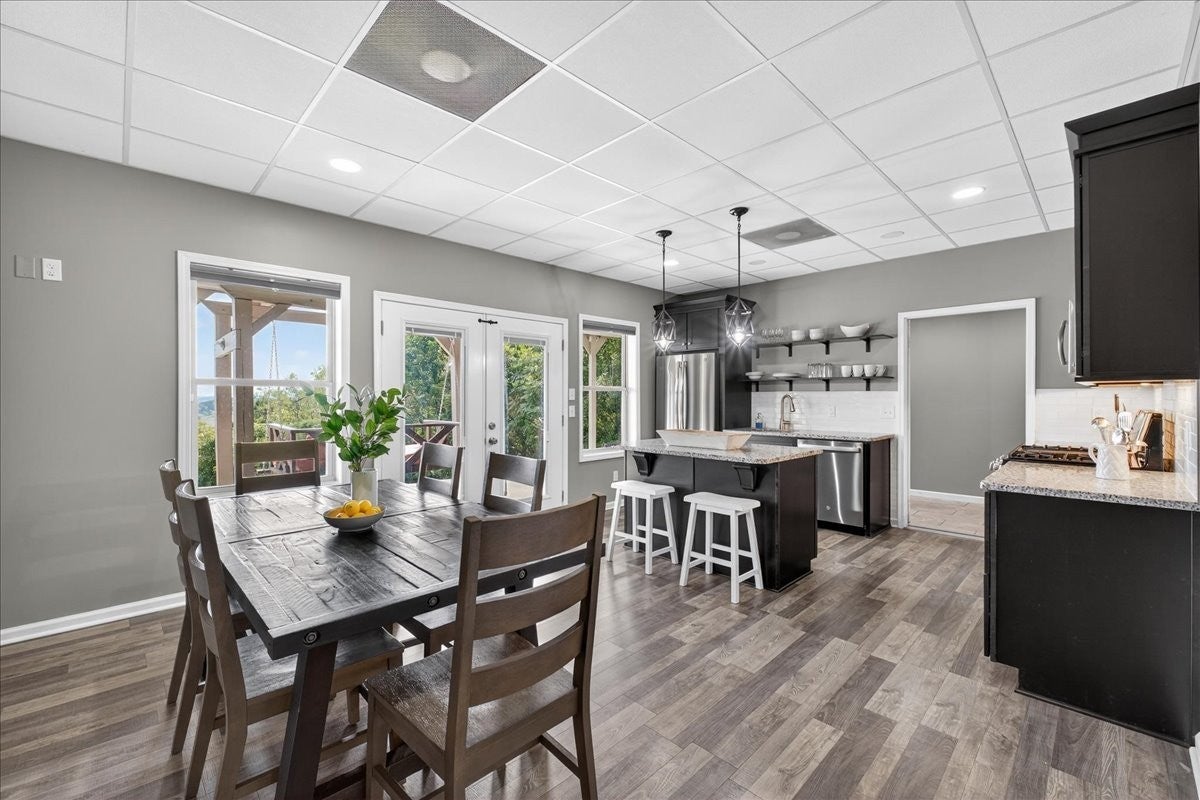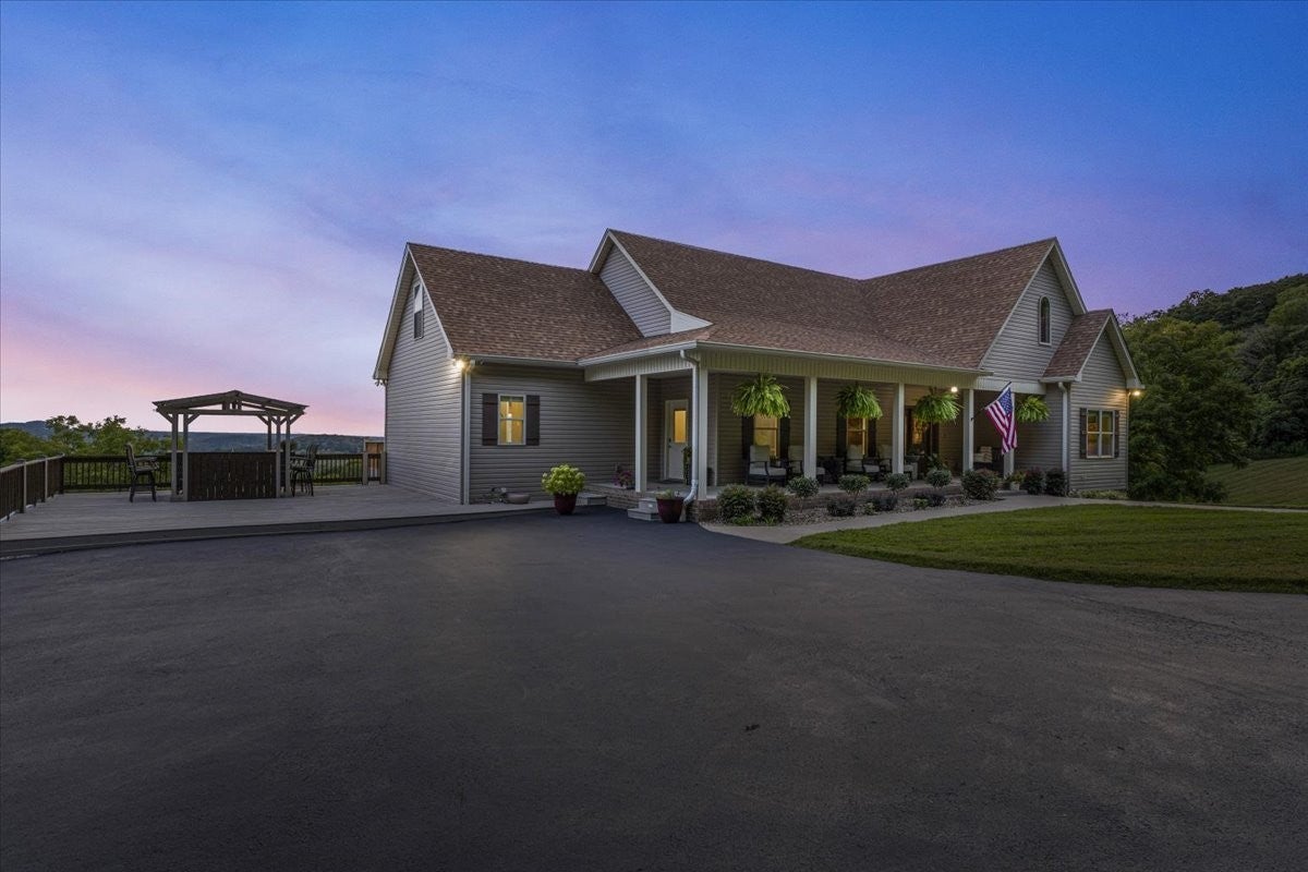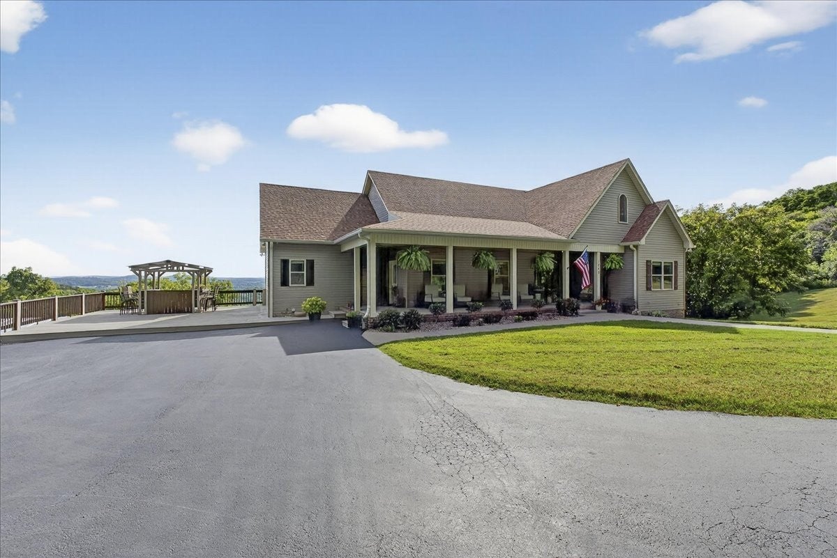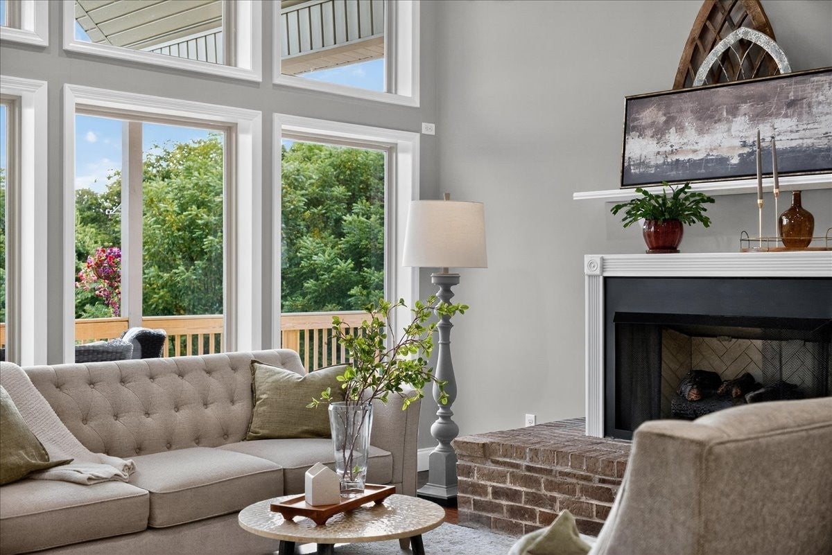 Southern Elegance with Rooftop Sunsets and River Valley Views. Open the front door to a dramatic two-story wall of glass, framing breathtaking vistas high above the Cumberland River Valley. Designed for seamless indoor-outdoor living, the home is surrounded by a charming Southern porch, an expansive deck, and a walk-out patio, giving nearly every room access to fresh air and sweeping views. The main level offers a beautifully flowing floor plan, with a kitchen open to the dining and living areas, three bedrooms and two baths, including a serene primary suite. Upstairs, an open railing allows natural light and views to fill the second level, which includes two bedrooms, a full bath, and a versatile loft perfect for office, exercise, or play. The lower level extends the living experience with a private apartment featuring a large bedroom, full kitchen with laundry, media/den all accessible from a private entry. The walk-out basement suite is set up to create a short term rental situation. It could be set up as a renal on the main floor and upstairs or as a lower level suite rental. Practicality and peace of mind are built in with a concrete safe room, generous storage, and thoughtful additions by the current owners: extended retaining walls, yard equipment storage, covered parking, and RV-ready connections with water, power, and septic. Set on two lots (Lot #12 and #13), this estate invites you to enjoy unforgettable sunsets, abundant wildlife, and the serene solitude of timberland — all with modern comforts at your fingertips.
