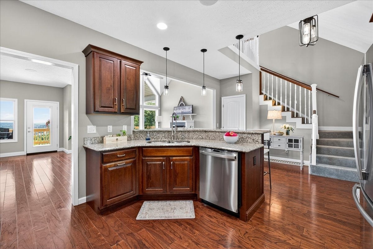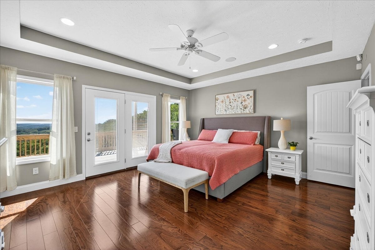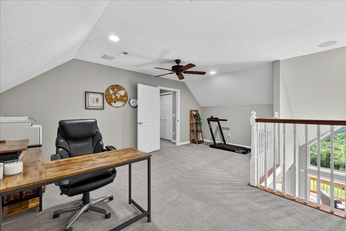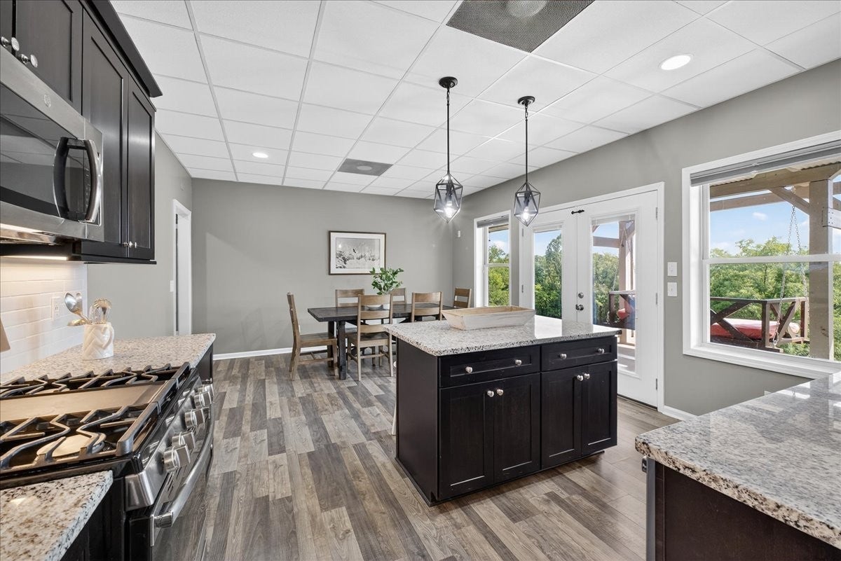 Southern Elegance with Rooftop Sunsets and River Valley Views. Open the front door to a dramatic two-story wall of glass, framing breathtaking vistas high above the Cumberland River Valley. Designed for seamless indoor-outdoor living, the home is surrounded by a charming Southern porch, an expansive deck, and a walk-out patio, giving nearly every room access to fresh air and sweeping views. The main level offers a beautifully flowing floor plan, with a kitchen open to the dining and living areas, three bedrooms and two baths, including a serene primary suite. Upstairs, an open railing allows natural light and views to fill the second level, which includes two bedrooms, a full bath, and a versatile loft perfect for office, exercise, or play. The lower level extends the living experience with a private apartment featuring a large bedroom, full kitchen with laundry, media/den all accessible from a private entry. The walk-out basement suite is set up to create a short term rental situation. It could be set up as a renal on the main floor and upstairs or as a lower level suite rental. Practicality and peace of mind are built in with a concrete safe room, generous storage, and thoughtful additions by the current owners: extended retaining walls, yard equipment storage, covered parking, and RV-ready connections with water, power, and septic. Set on two lots (Lot #12 and #13), this estate invites you to enjoy unforgettable sunsets, abundant wildlife, and the serene solitude of timberland — all with modern comforts at your fingertips.